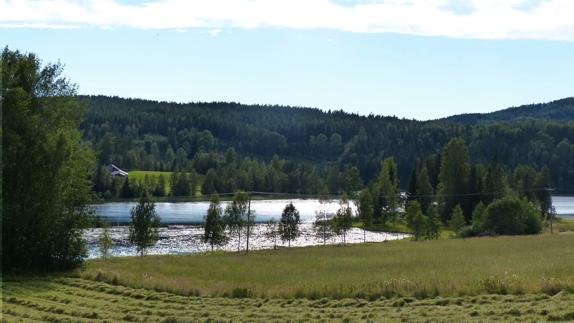 In den Städten sind Rad- und Fußwege miteinander kombiniert, das ist einerseits sehr tolerant, andererseits macht es die Verkehrsführung besonders an Kreisverkehren etwas unübersichtlich. Ach, jetzt geht es da drüben auf der linken Seite weiter, kann man das nicht vorher ankündigen??? Radfahrer dürfen auch die Fußgängerüberwege (Zebrastreifen) benutzen und brav bremsen alle Autos. Man fährt auch links gegen die Fahrtrichtung, Hauptsache die Radfahrer sind runter von der Straße … Von Süd nach Nord bis hoch oben nach Haparanda an der finnischen Grenze wird das Land von der E 4 durchpflügt, die meist auobahnmäßig ausgebaut ist und oft ist dann natürlich Radfahren dort verboten. Es wäre auch nicht sehr attaktiv angesichts der  Verkehrsflut. Dies führt nun aber  dazu, dass man mehr oder weniger große Umwege fahren muss. Über nette Sträßchen, die alte Reichsstraße oder aber auch ungepflasterte Waldwege (also fester Lehm mit etwas Schotter und zum Glück  wenigen Schlaglöchern). Dafür aber munter hoch und runter über die Berge. Die ragen zwar topografisch nicht sehr hoch, aber es fühlt sch für mich an wie in Ontario. Und es zerrt an meiner Kondition, wenn ich mal wieder schieben muss, weil ich unterhalb von 5,5 km/h den Lenker  nicht mehr gerade halten kann.