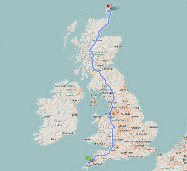 Den Schnipsel von Aberdeen bis Montrose habe ich weggelassen. Rechne ich ihn dazu, sind es 1623 km gewesen.