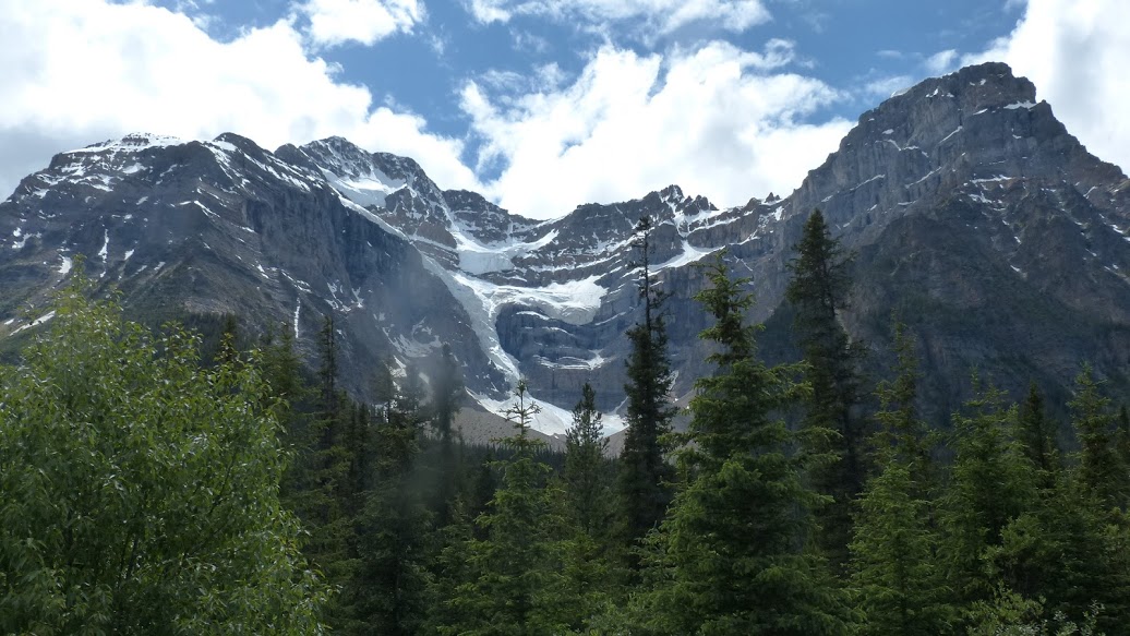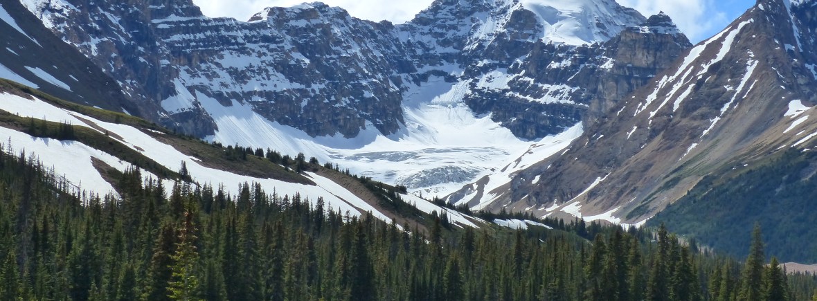 Ich bin bereits in Calgary und habe die Rocky Mountains hinter mir gelassen. Ich sitze am Notebook von Robert Bot, meinem warmshowers-Gastgeber, einem 70 jährigen Journalisten und Wissenschaftler, bei dem ich aus Platzgründen auf der Veranda schlafen darf. Bevor ich von Jasper aus den Icefields Parkway anging, war ich sehr im Zweifel, ob ich es mir nicht einfacher machen und einfach auf dem Highway 16 Richtung Edmonton bleiben sollte. Denn anstrengende Steigungen hatte ich genug hinter mir. Aber was hätte ich nicht alles verpasst? Seht selbst. Alles, was ich bisher schon an alpinen Gebirgsinseln längs der Straße sehen durfte, verblasst angesichts dieser Monstergalerie von Felsformationen an dieser Straße. Es ist wie der atemberaubende Unterschied zwischen Kino und Multiplex und lässt sich fotografisch in 2D gar nicht wirklich wiedergeben.
