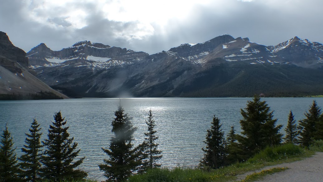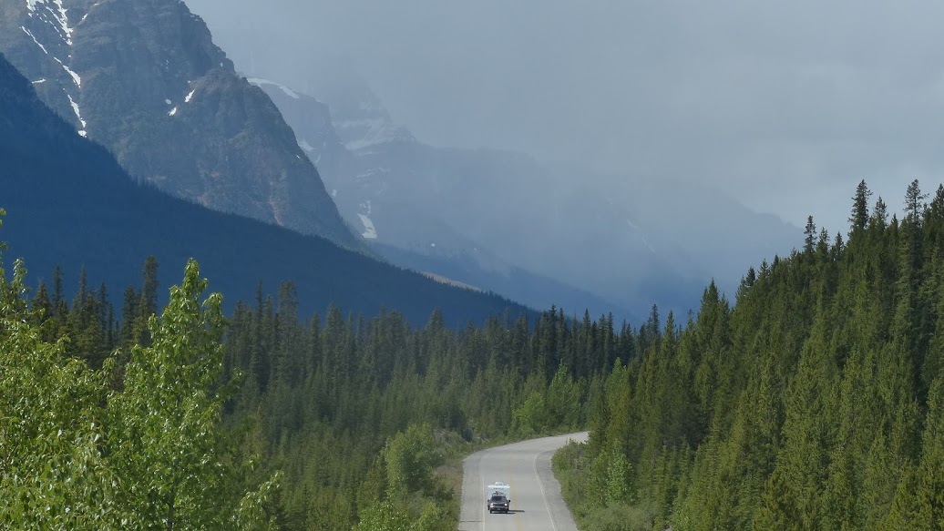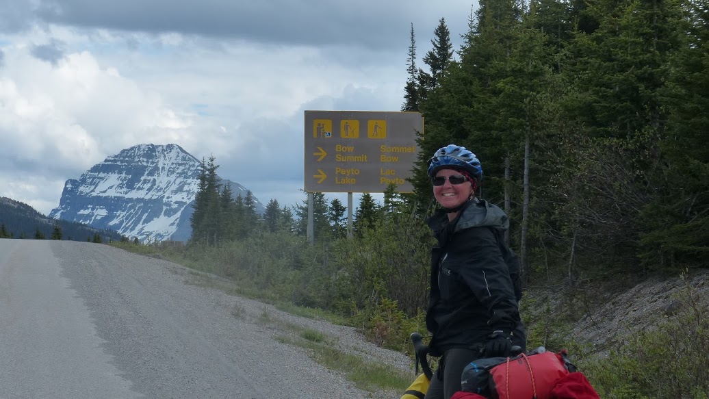 Eine Stunde nach mir trudelte plötzlich Valerie ein, die ja woanders übernachtet hatte. Ich war unklar, ob ich mir die Strapaze eines zweiten Passes (Bow Summit, noch einmal über 2000 m hoch) antun will oder nicht lieber die ganze Strecke verändere und an der Abzweigung Richtung Red Deer abfahre.