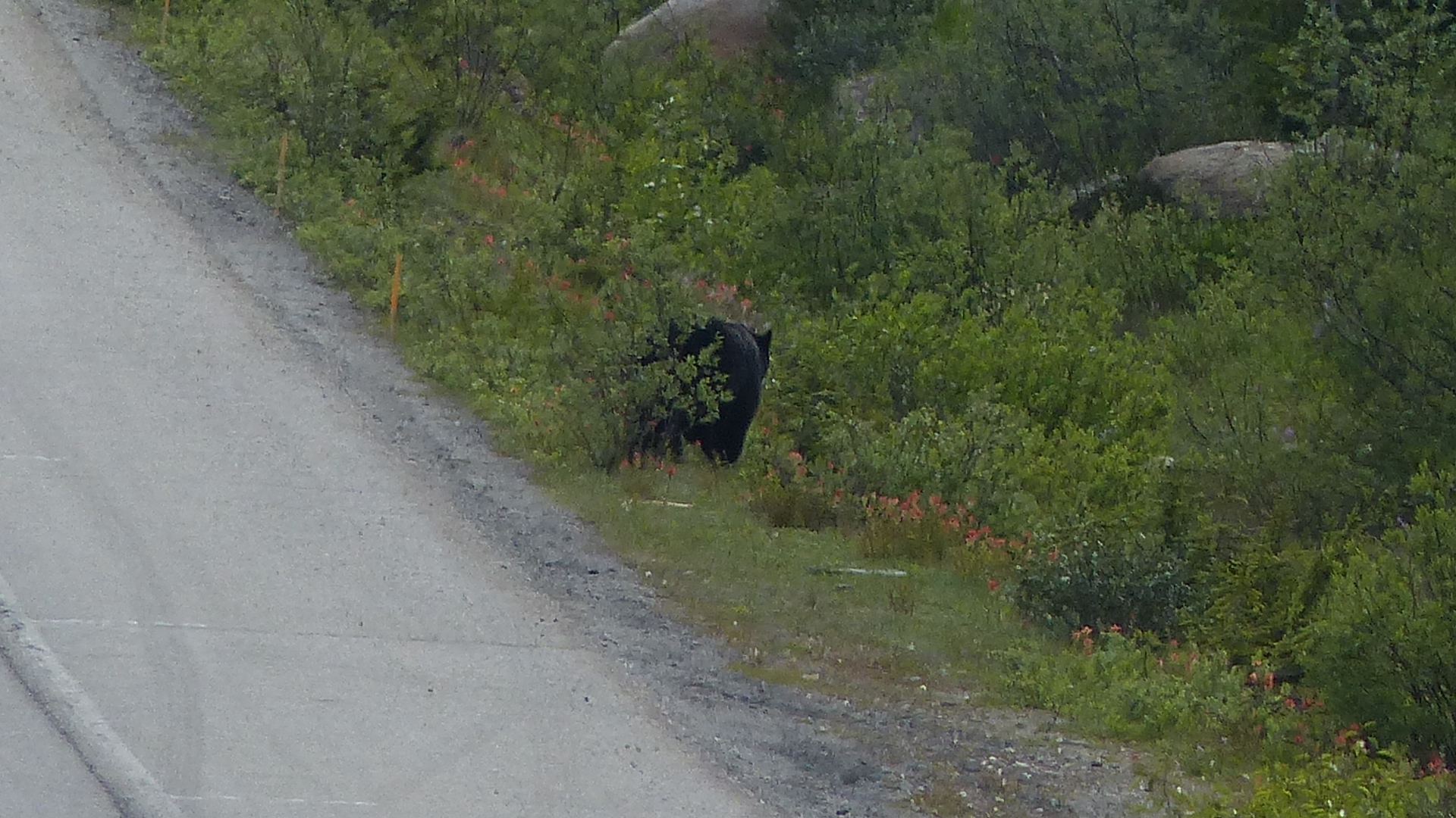 Hier kam uns ein Schweizer Bikepacker mit Ultraleichtgepäck auf dem Weg nach Alaska entgegen. Kurioserweise hielt im selben Moment auf dem Parkplatz ein RV mit deutschen Kennzeichen und einer mit einem französischem – sehr selten in Kanada. Wer schifft schon sein Auto ein?