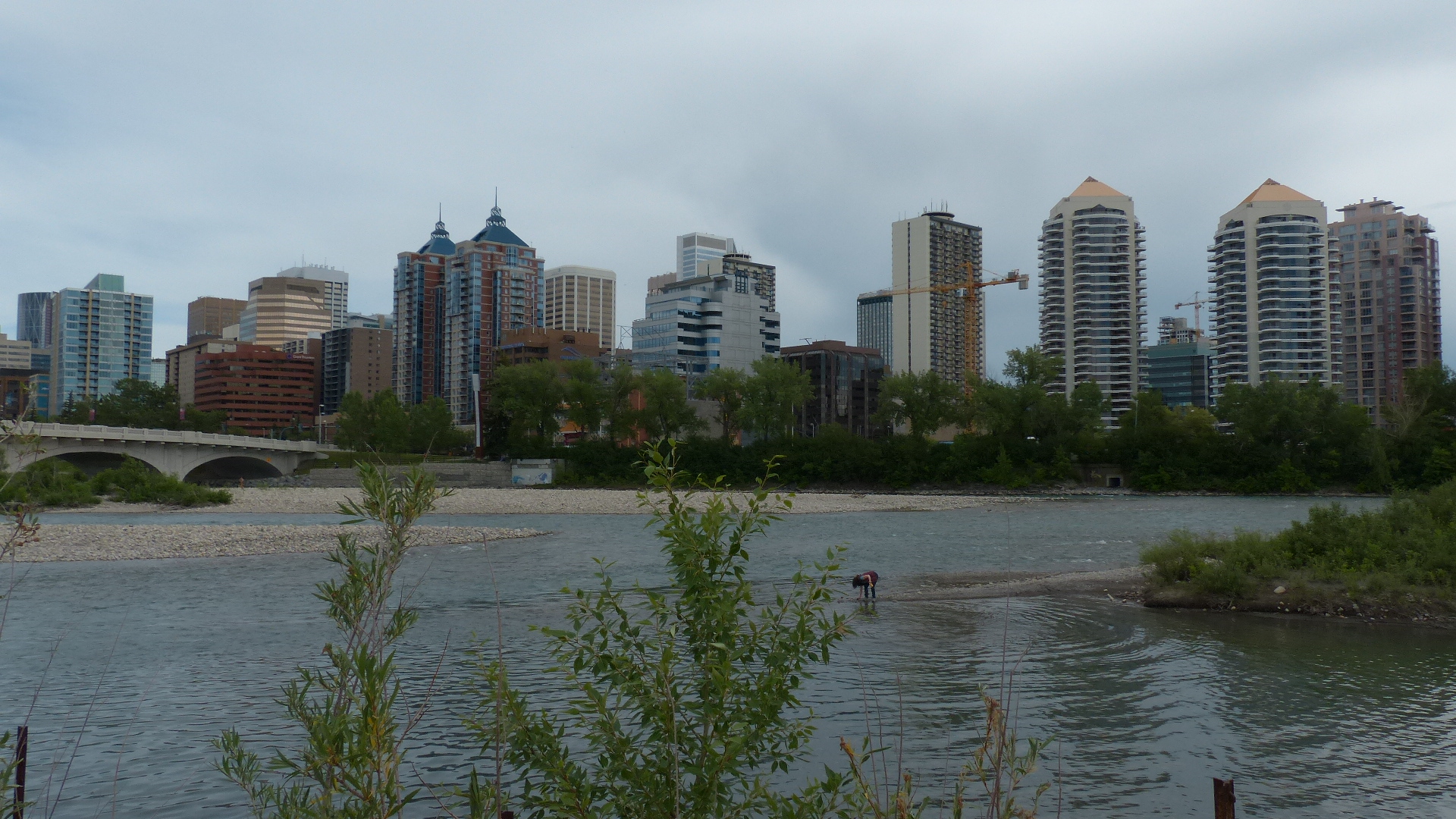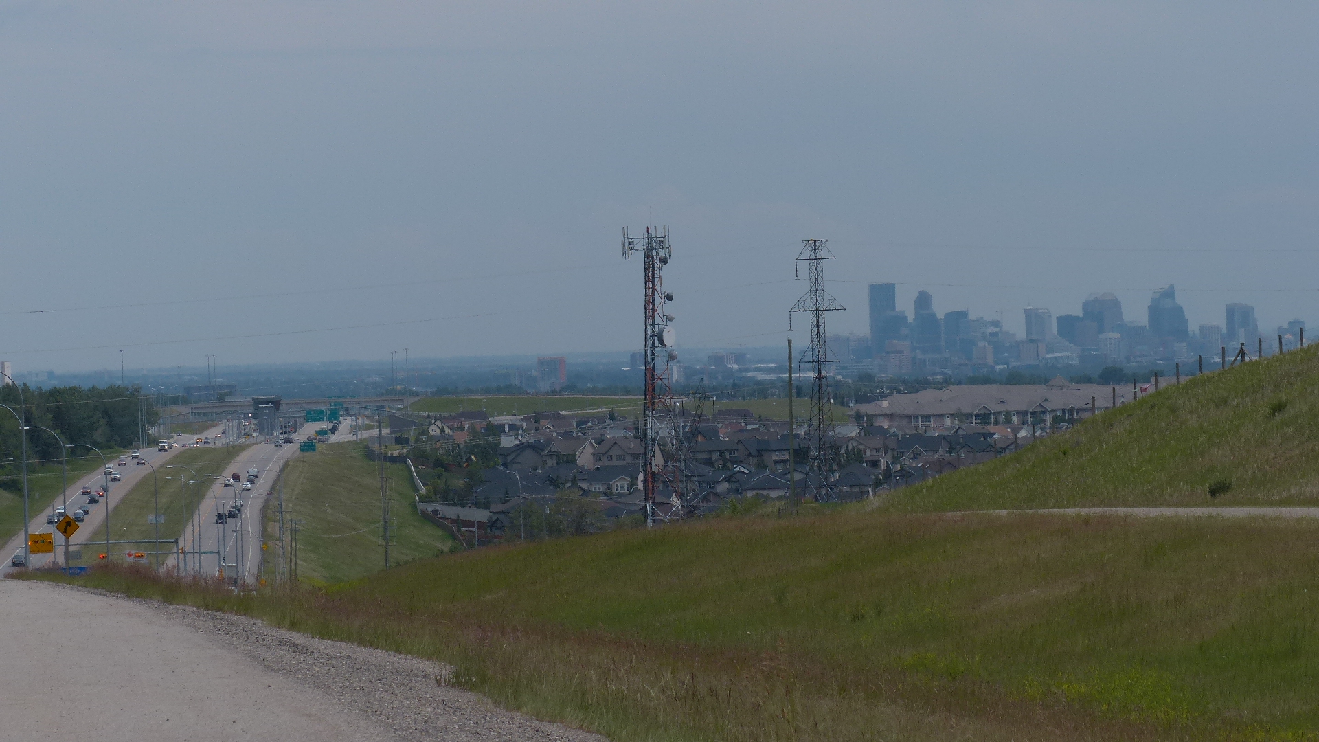 Weiter nach Calgary, verfolgt von Gewitterwolken landete ich mitten im Vekehrschaos, da der Zugang zur Radroute bautechnisch versperrt war… Und dann war ich auf einem Autobahnmonster gefangen, so dass ich nicht wenden konnte und erst Kilometer später dank einer Abfahrt entweichen konnte.