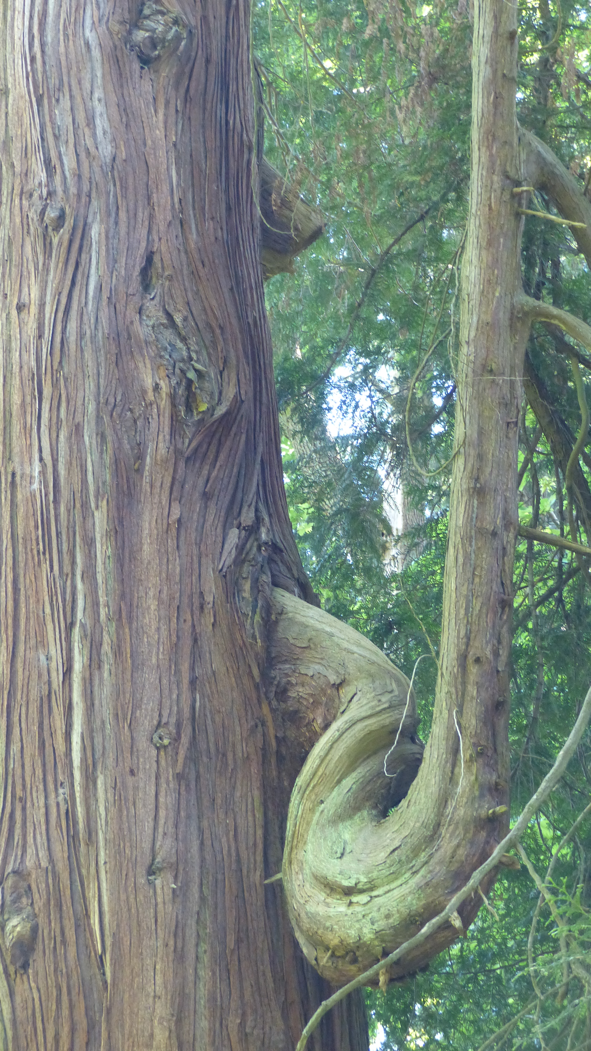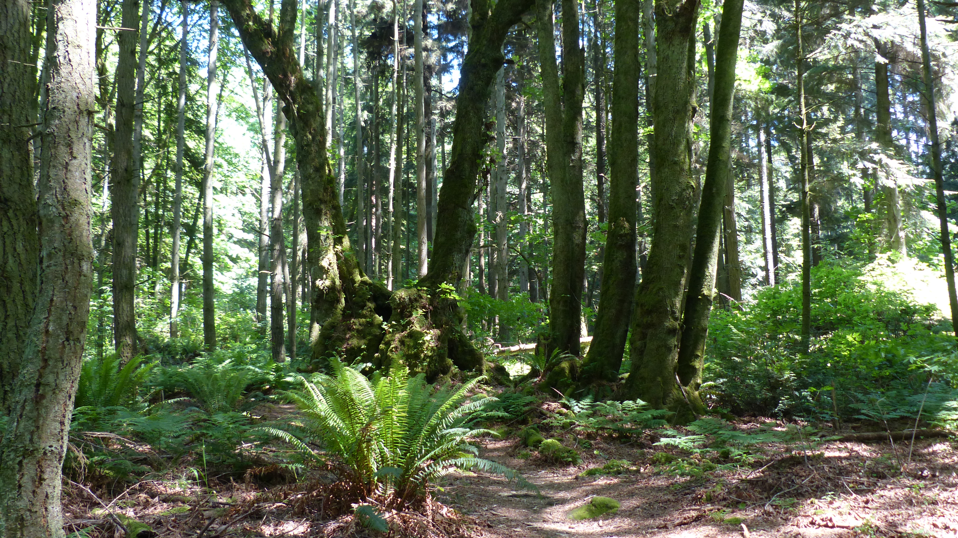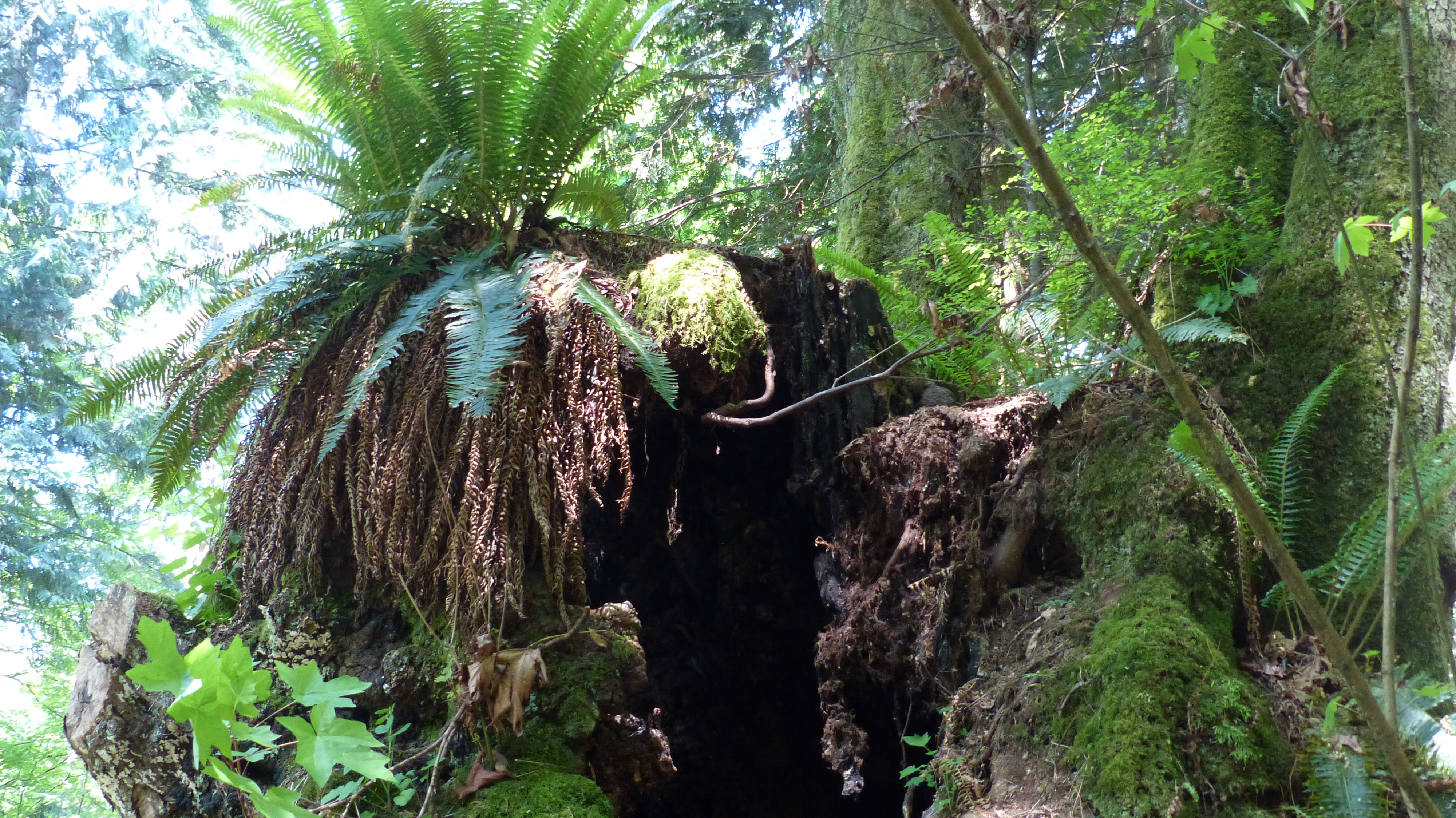 Ein Märchenwald – aber auch ein Stück weit Naturlehrpfad, durch eine verkehrsreiche Straße geteilt. Ich war jedenfalls beeindruckt. Dann wieder runter, das ging natürlich schneller. Und weiter mit Gepäck, noch 30 km bis Mud Bay, dem letzten Campingplatz vor Courtenay.