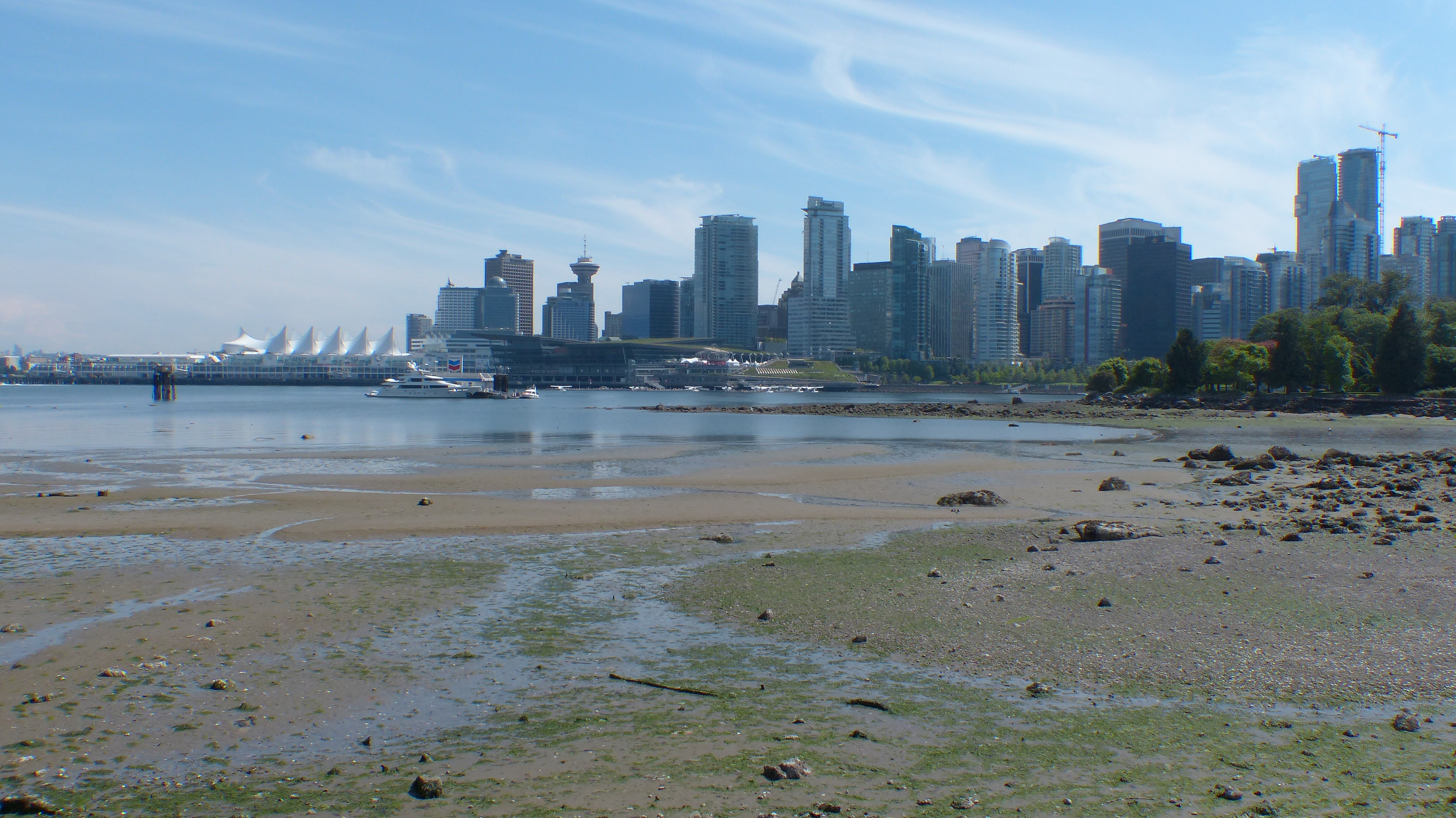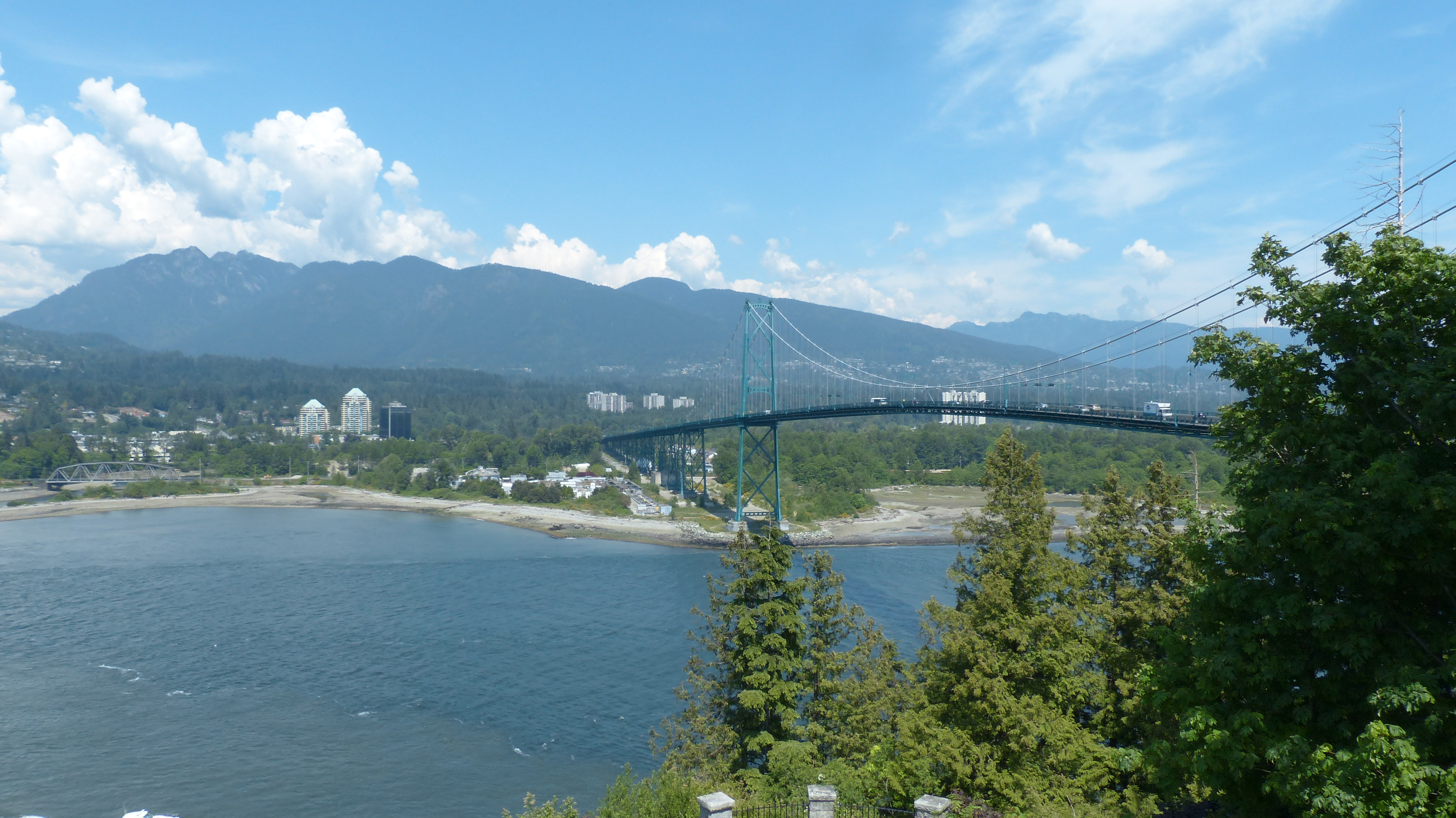Gestern dann bin ich 45 km kreuz und quer durch Vancouver gefahren. Es ist eine erstaunliche Stadt voller Kontraste: Üppige Parks mit Bäumen, die deutlich höher sind als in Deutschland, Wolkenkratzer, aber mit viel Grün dazwischen, alles wirkt geplant, durchdacht und nicht so wildwüchsig wie in den USA. Südlich des Zentrums Straßen über Straßen, ein Netz aus Alleen mit Einfamilienhäusern, wie über die wellige Landschaft geworfen, ein ständiges Auf und Ab. Man baut meistens mit Holz, auch heute noch.