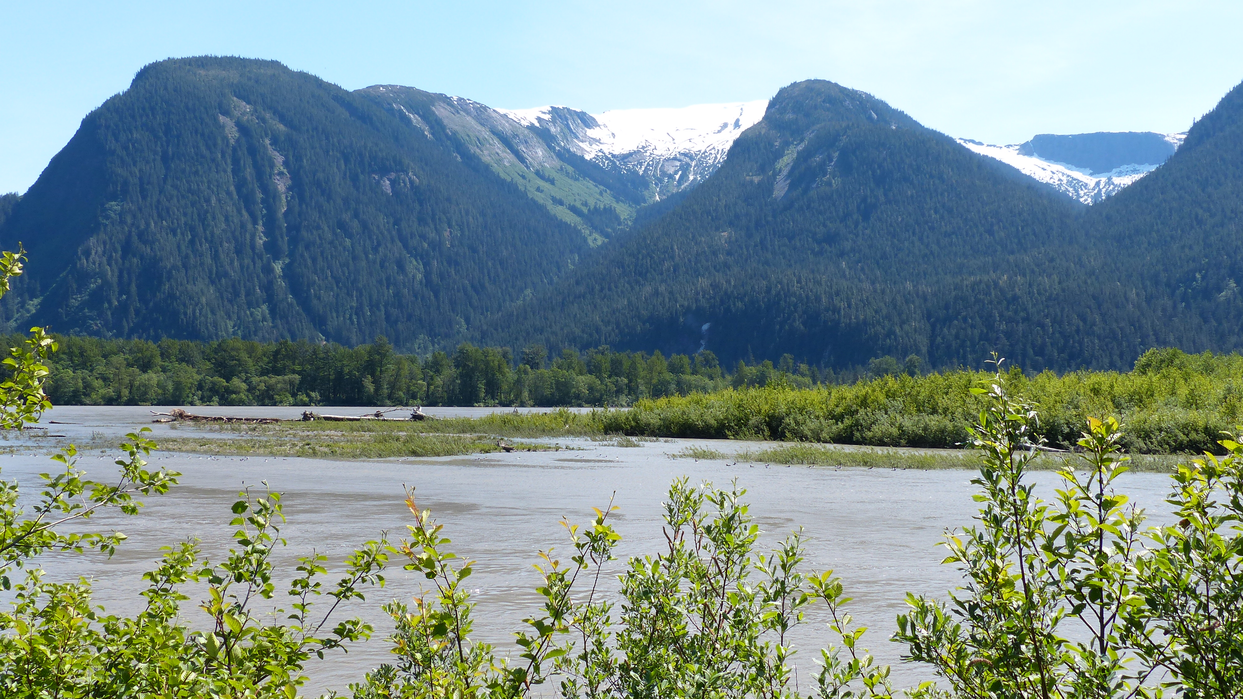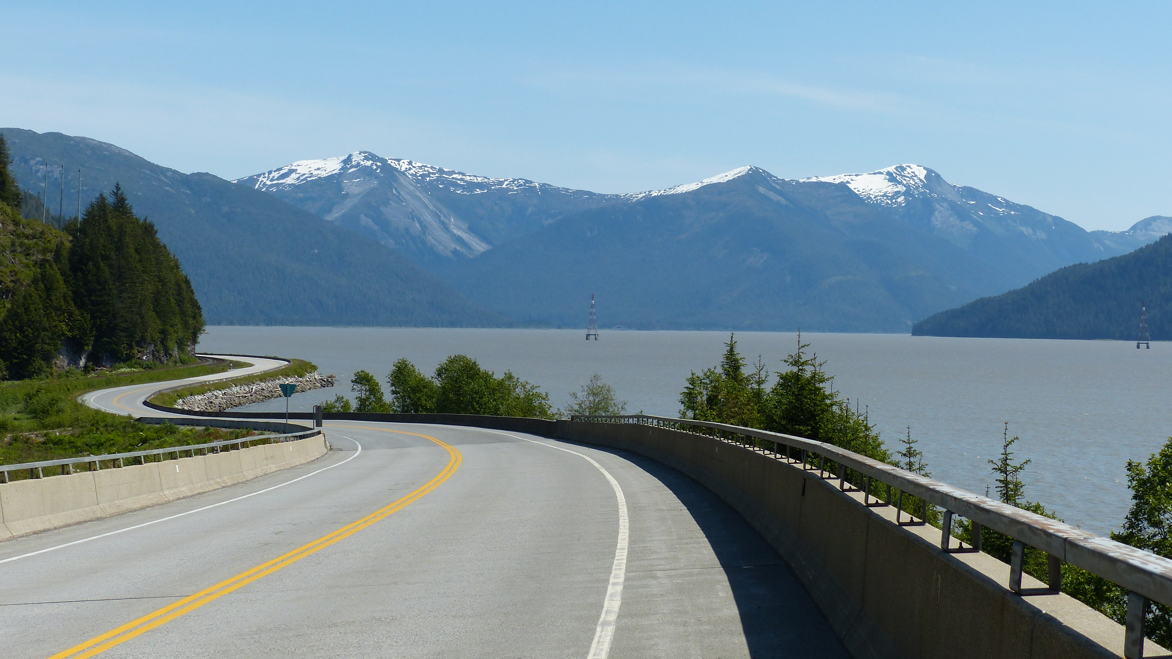Nach der Ankunft in Prince Rupert fuhr ich schon am nächsten Tag weiter, denn das Städtchen lohnt sich wirklich nicht. Bis Terrace! 151 km um das Übernachten in der Wildnis zu vermeiden, denn in Terrace hatte ich Quartier bei Dean und Joanna (facebook lässt grüßen). Ich war fix und alle, es war 28 Grad warm und ich bin noch nie soweit in einem Stück gefahren. Aber es war herrlich, ich fühlte mich wie in Norwegen, immer im Tal des Skeena Rivers entlang umrahmt von schneebedeckten Gipfeln. Seht selbst.