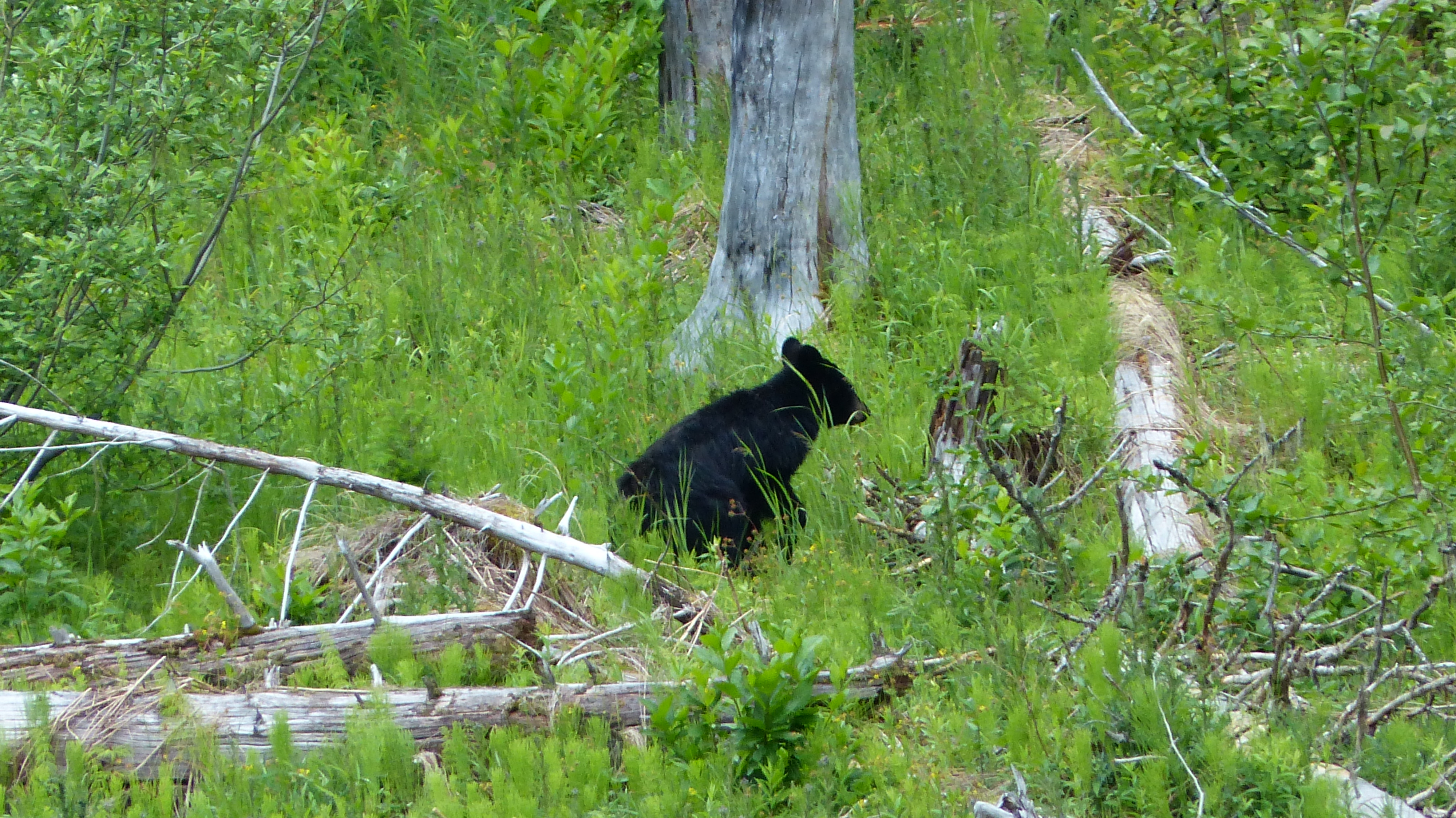 Weiter nach Port Hardy! Und dort am nächsten Morgen meine erste Schwarzbären-begegnung, als ich aus der Toilette des Campingplatzes kam. Da stand er! Keine 50 m entfernt starrte er mich an. Und ich ihn. Nach 5 Sekunden verschwand er dann, vermutlich war ich zu uninteressant. Und ich hatte eine Gänsehaut am ganzen Koerper…