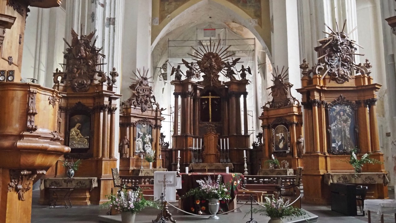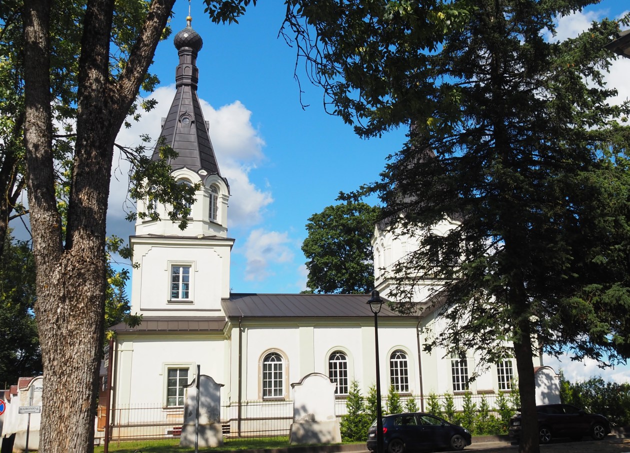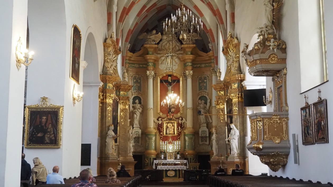 An diesem Tag ging es nach Kaunas. Zunächst wollte ich so schlau sein, eine kürzere Variante nördlich der Autobahn zu erkunden, aber das scheiterte wieder mal an fehlender Wüstenbereifung. Also Kehrtwendung und schön zurück zu einer besseren Route über kleinere gut geteerte Straßen. Ich besichtigte eine Kirche, die wegen Bauarbeiten geöffnet war, fuhr über Hügel und schaute noch einmal über den Ilges-See, an dem ich ja gezeltet hatte.