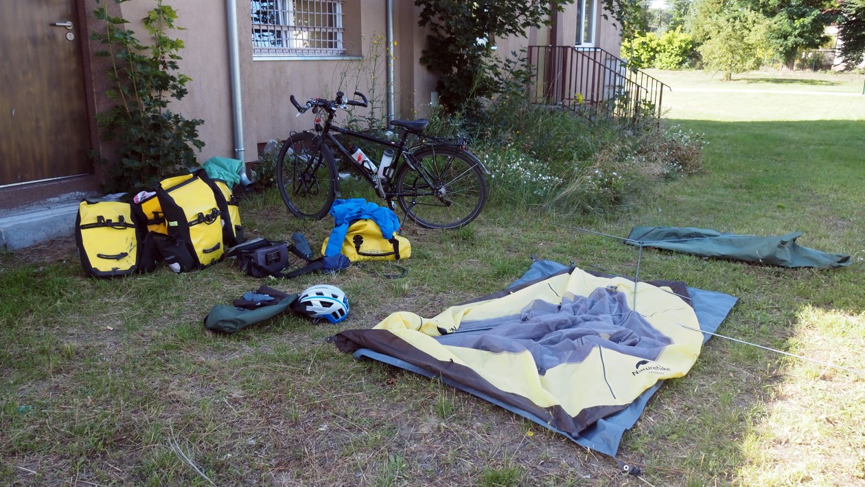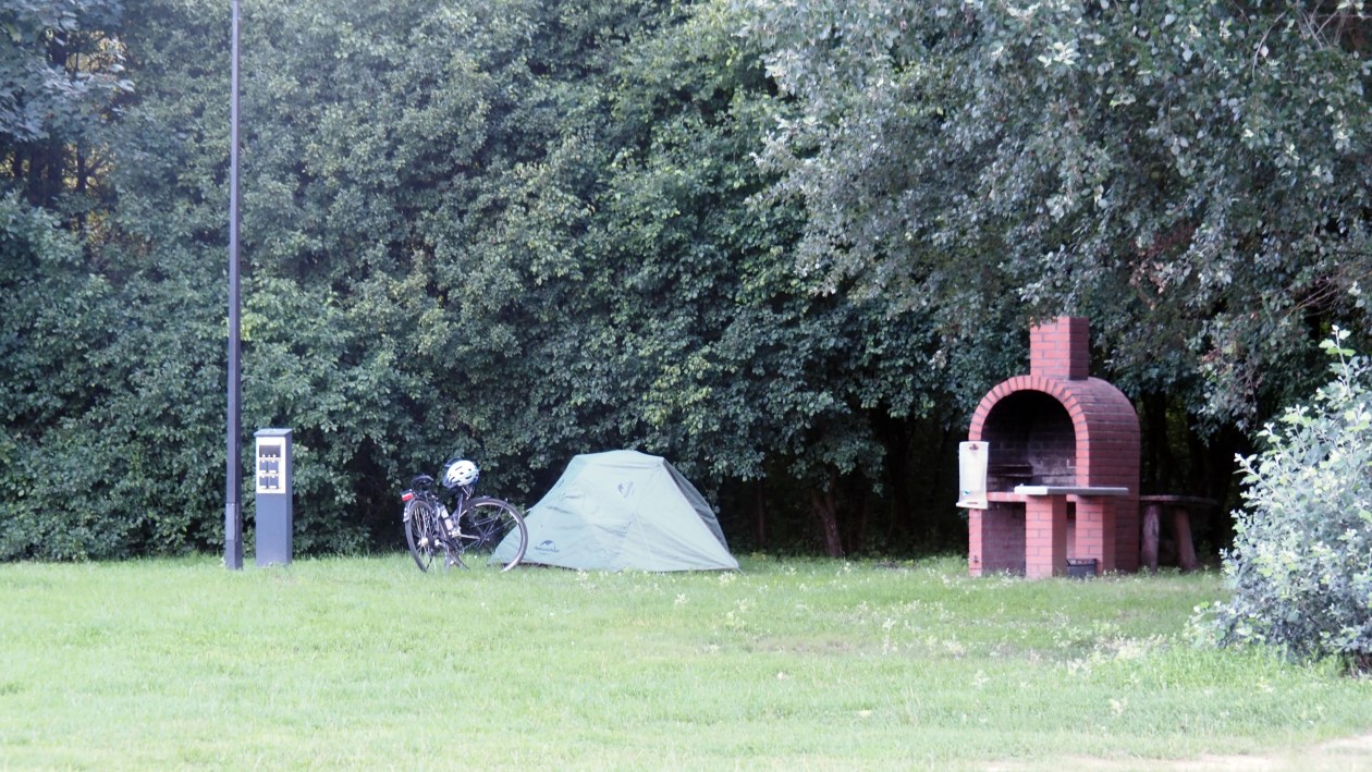 Vorbeigehende Nachbarn wunderten sich, erwiderten aber mein “Dobry wieczor!” (Guten Abend – ein bisschen Polnisch habe ich früher mal gelernt). Und so hatte ich eine ruhige Nacht mitten im Dorf umsonst zeltend.