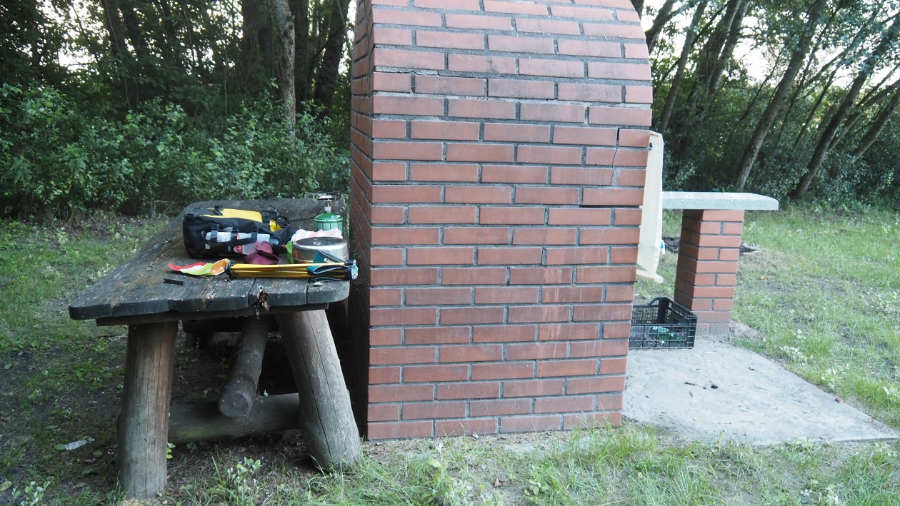 Meine 2. Etappe endete wie geplant auf einem Campingplatz am Goplosee. Ein riesiger Platz mit nur wenigen Campern, einer Anlegestelle für Bootstouristen und einer Bar, die gleichzeitig als Rezeption diente. 70 Złoty kostete mich die Nacht – circa 19 €. Das war dann allerdings der teuerste Platz in Polen für mich. Später waren es höchstens 40 Zł. Hinter einer gemauerten Kochstelle gab es eine Art Tisch, der mir als Lebensmittelablage diente.