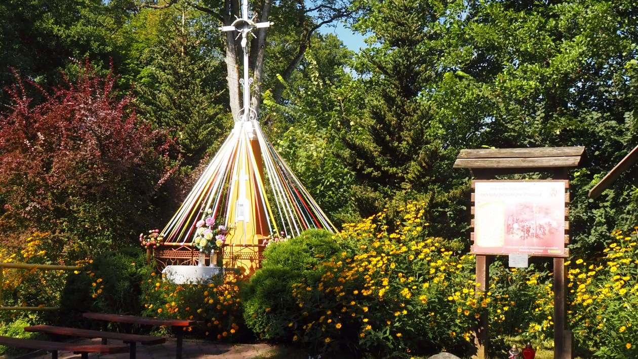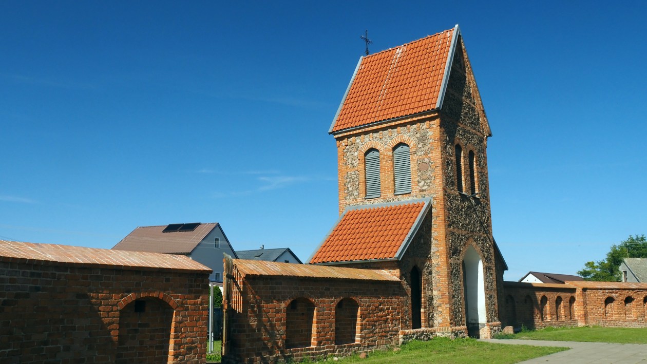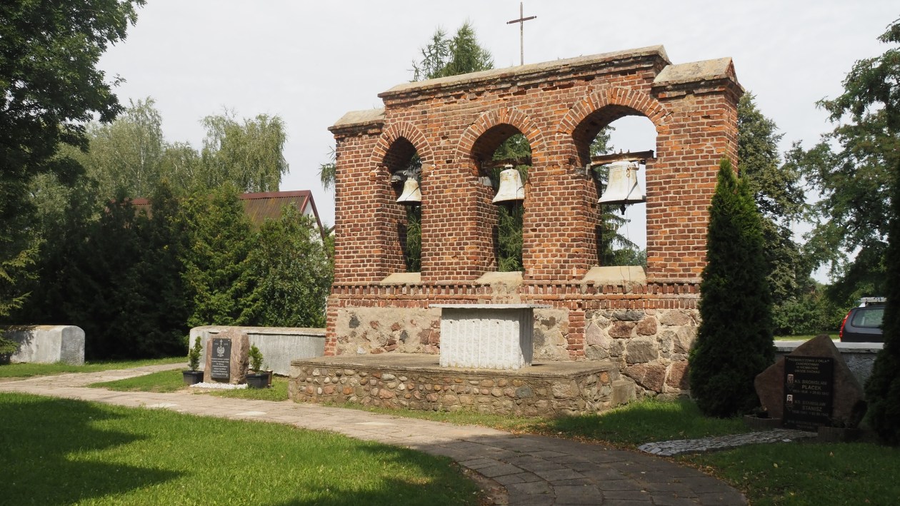 Nach einigen Kilometern tauchten für mich überraschend riesige Abraumhalden auf – der Braunkohlentagebau Tomislawice, der gerade, wie ich später recherchiert habe, gerade seine letzte Saison erlebte. Dass es hier sowas geben würde, war mir bislang unbekannt. Hinter dem Örtchen Orle fuhr ich an einer traditionellen Holzkirche vorbei. Leider war sie wie alle Dorfkirchen geschlossen, was mich in diesem sehr katholischen Land wunderte. Geöffnet werden sie nur zu Messen und anderen Veranstaltungen, aber nicht als Ort individueller Einkehr. Einen Glockenturm kann das hölzerne Bauwerk nicht tragen, deshalb gibt es ein gemauertes Gestell mit Läutewerk neben der Kirche.