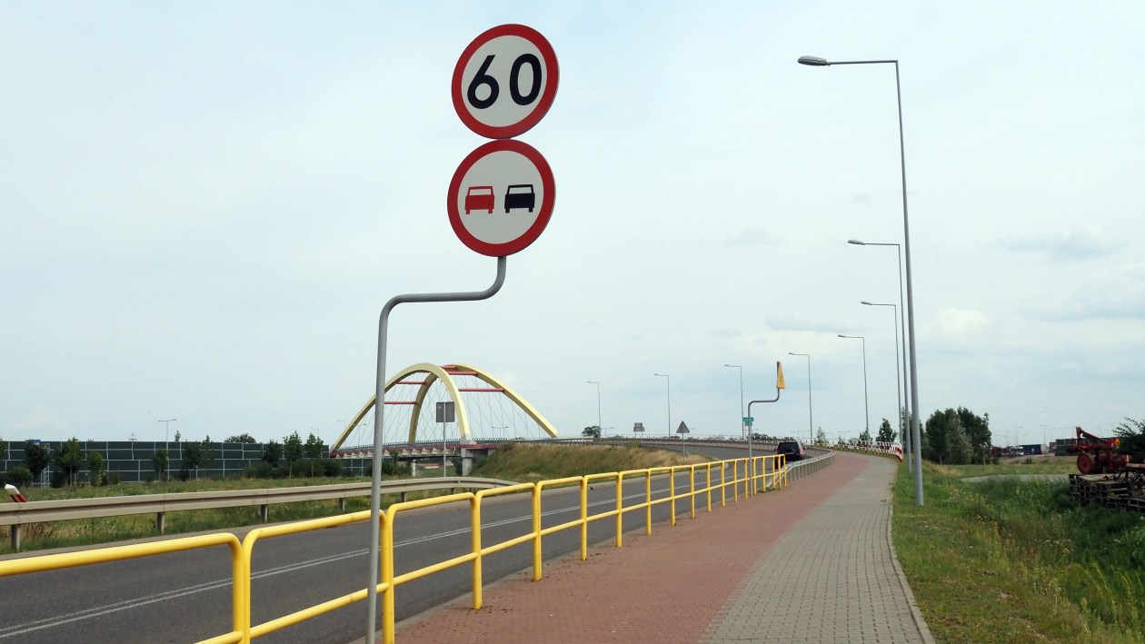 Übrigens hatte ich die ganze Zeit fabelhaften Rückenwind. Kurz vor Gniezno/Gnesen kreuzte die Fernstraße mit einem monumentalen Brückenbauwerk die Autobahn 5 und sofort war Radfahren verboten. Ich konnte aus meiner Perspektive nicht überschauen, wohin das Ganze führt und ob ich es ignoriere und einfach weiterfahre. Aber im Ausland halte ich mich lieber an Vorschriften Und schon nahm ich die falsche Umfahrung nach links, die ca. 2,5 km super geteert an der Autobahn entlang führte, um dann nicht an einer Unterführung unter der Autobahn, sondern im Nichts zu enden. Was für eine Bauplanung!