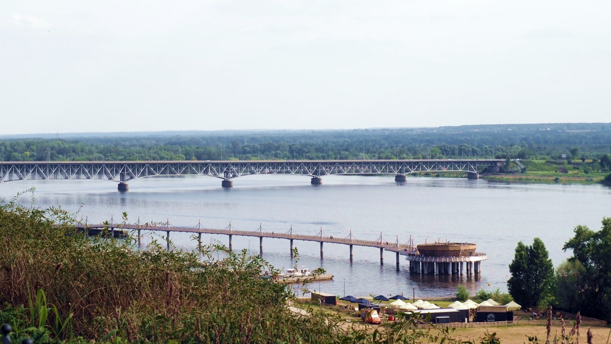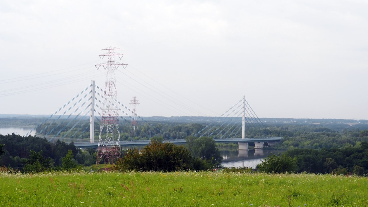 Selten habe ich mich so gründlich verfahren… Aber die paar Dörfer, die ich dadurch nicht gesehen habe, wären mir kaum im Gedächtnis geblieben. Also los, ein Fingertipp auf meinen Navi mit der geplanten Strecke – auf geht’s Richtung Südosten nach Serock. Denn hinter Serock gab es eine große Brücke über den Narew. Den Narew würde ich noch öfter zu überqueren haben. 1984 bin ich auf diesem Fluss mit meiner damaligen Freundin von der Einmündung der Biebrza bis kurz vor Warschau gepaddelt. Er wälzt sich träge mäandrierend durch das polnische Flachland und ist ein Paradies für Wasservögel. Die Überführung gehört zur Fernstraße 62, ein verkehrsreicher welliger Hauptverkehrsstrang, dem ich für 12 km folgen musste.