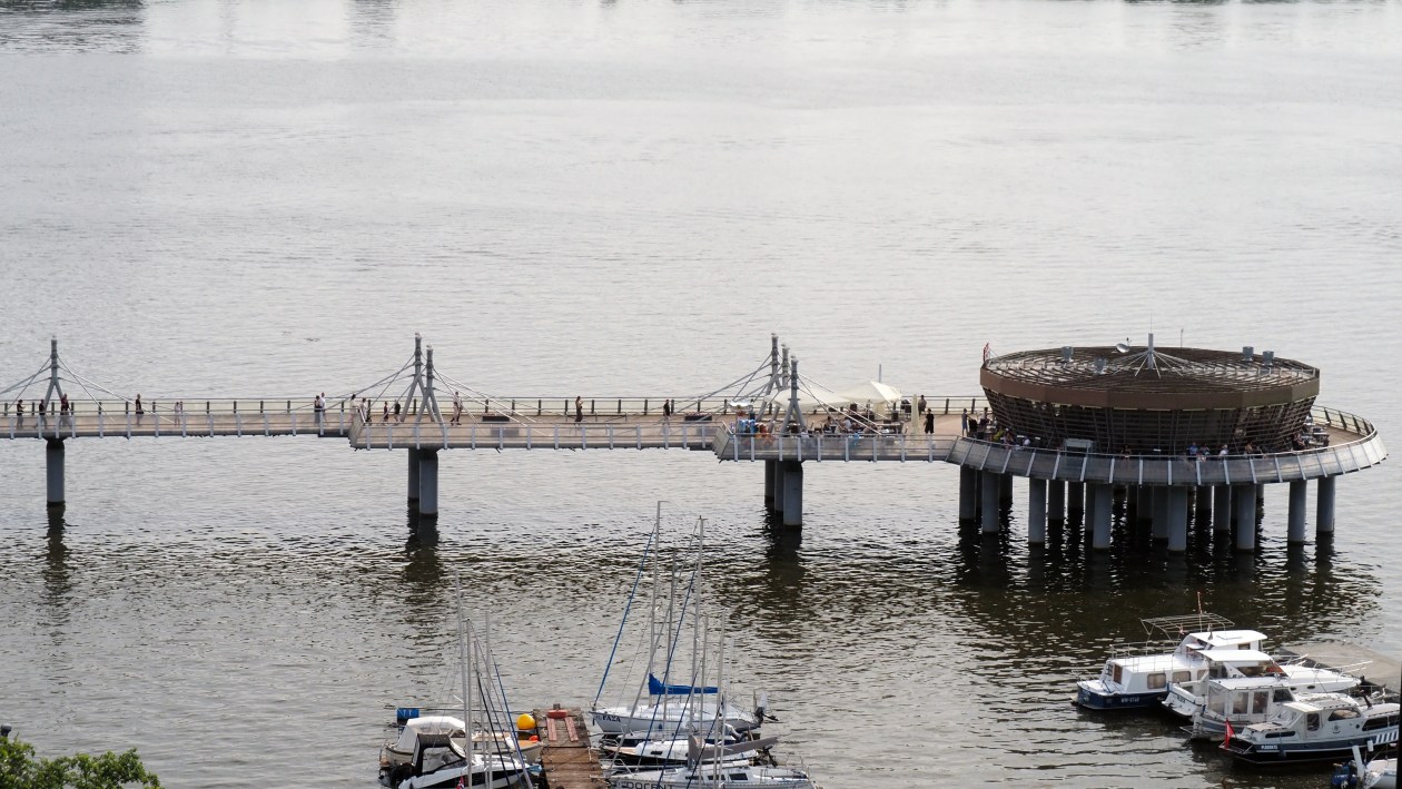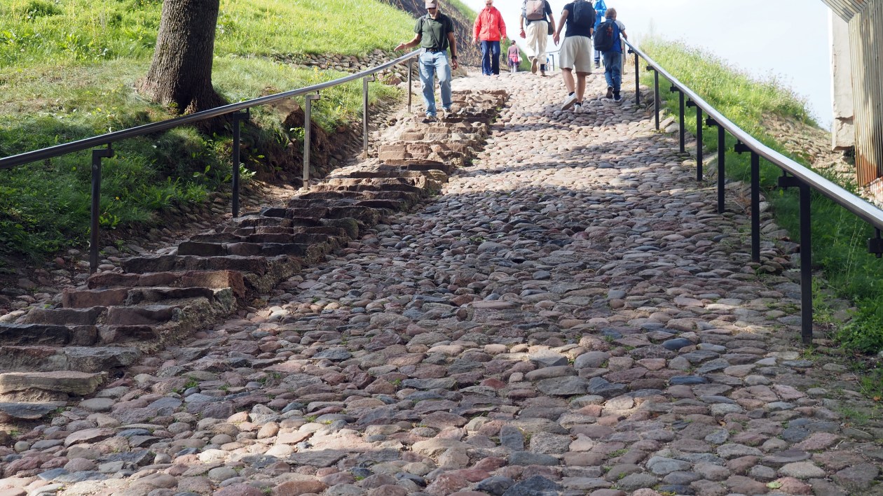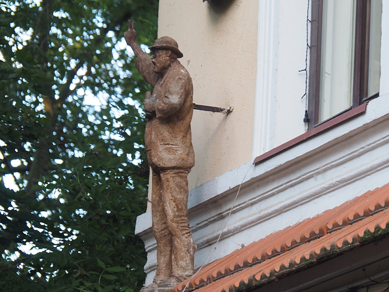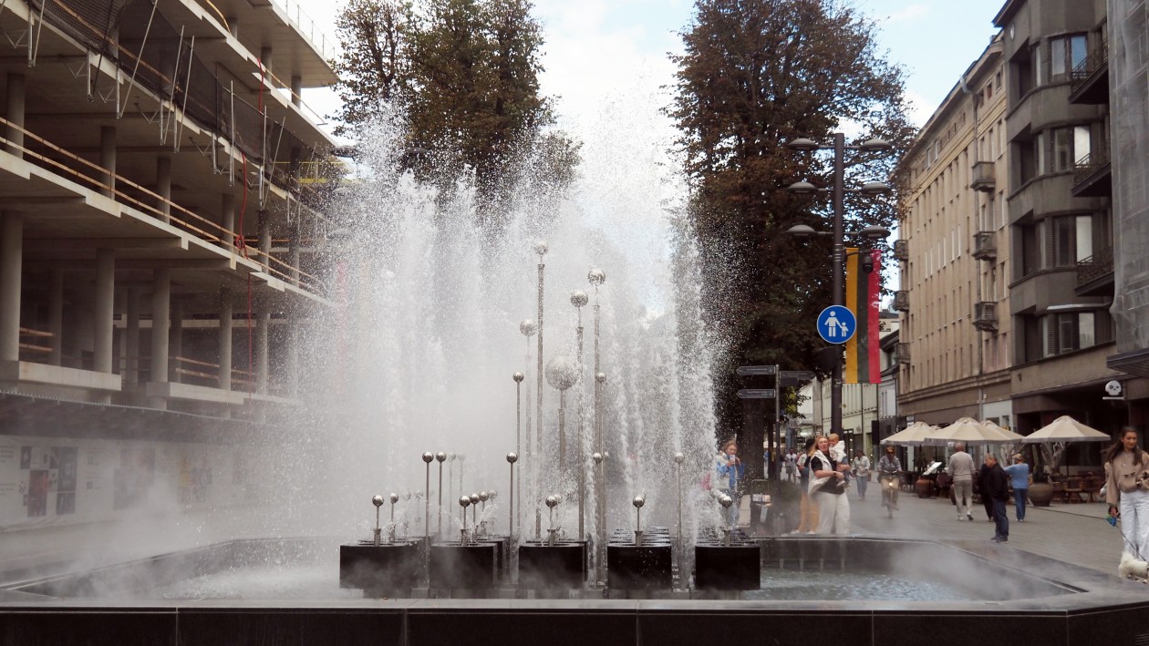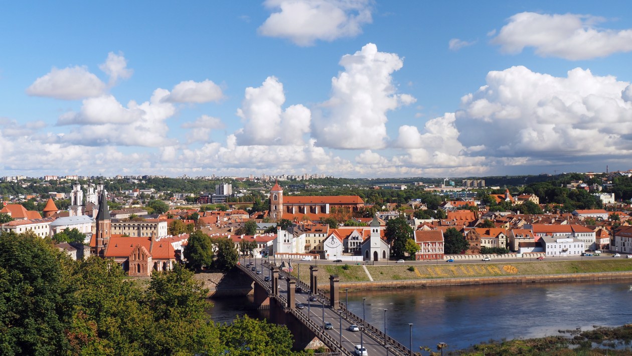 Heute blieb das Fahrrad stehen und ich machte zu Fuß eine Wanderung durch Kaunas. Kaunas war die erste Hauptstadt Litauens, von 1920 bis zur Eroberung durch die Wehrmacht 1941, nachdem es infolge des Versailler Vertrages seit Langem wieder eine eigene Staatlichkeit erlangt hatte. Vilnius und der westliche Teil des Landes gehörten zu dieser Zeit zu Polen. Als erstes lief ich durch ein parkähnliches Gelände an der Musikhochschule vorbei zur Aleksoto-Aussichtsplattform und einer Standseilbahn, die hinab zum Memel fuhr. Ein witziges, historisches Fahrzeug, mit dem man sich für ungefähr 1 € die Treppe abwärts ersparen konnte. Die Fahrt dauert dann keine 5 Minuten!