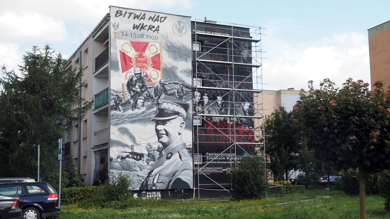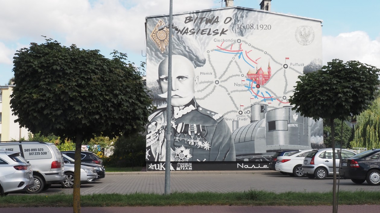 Dort gab es aber einen gut sortierten Supermarkt, in dem ich meine Lebensmittelvorräte auffrischen konnte. Ansonsten bot mir das Städtchen nichts Beeindruckendes, außer riesigen patriotischen Fassadenmalereien, die an die Schlacht bei Nasielsk im Rahmen des polnisch-sowjetischen Kriegs 1920 erinnerten, die die Polen gewannen. Jetzt erst wurde mir bewusst, dass ich mit Nasielsk ein falsches Navigationsziel gewählt und zu weit nach Norden geraten war.