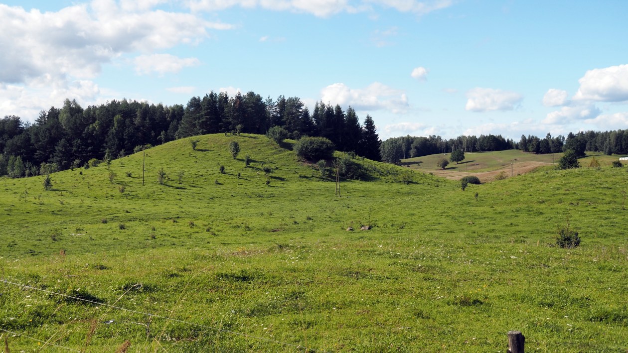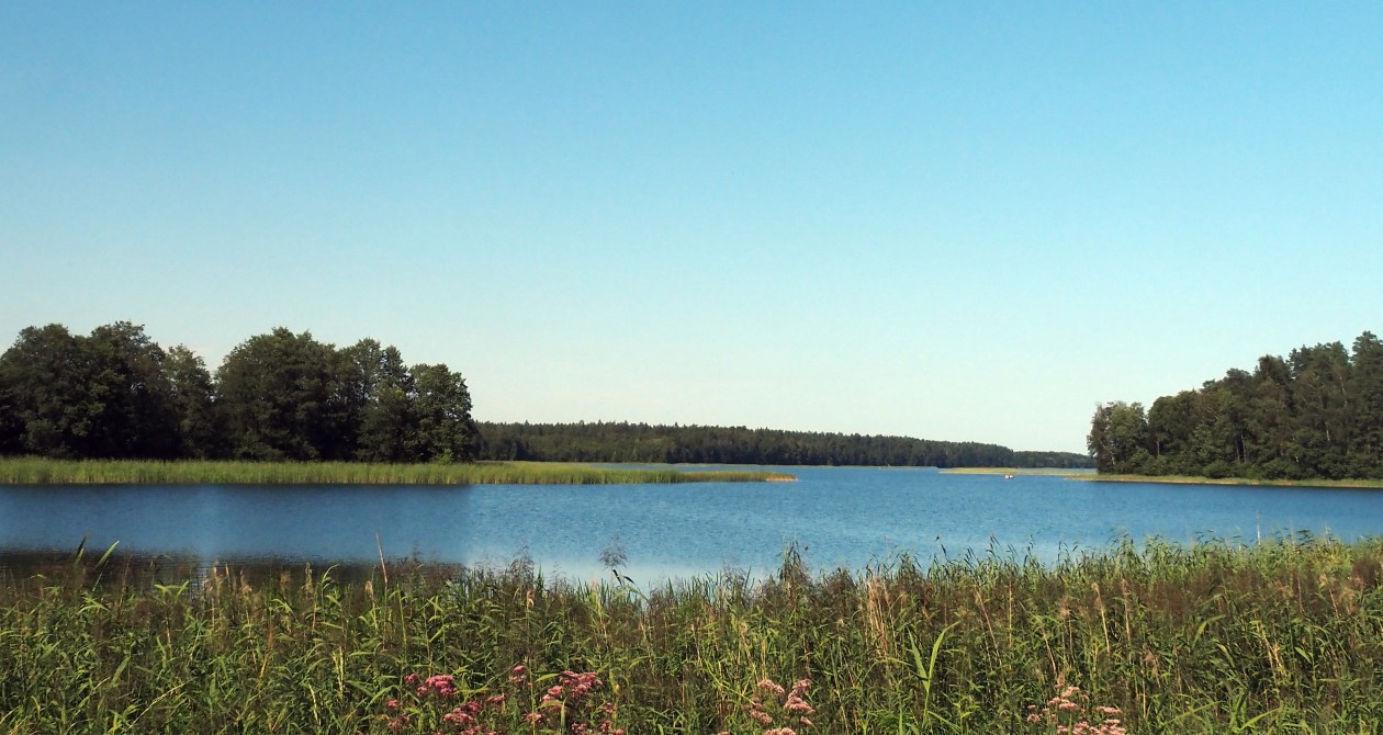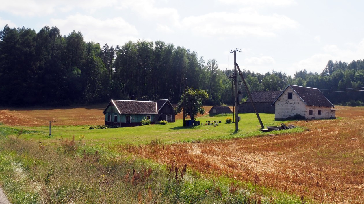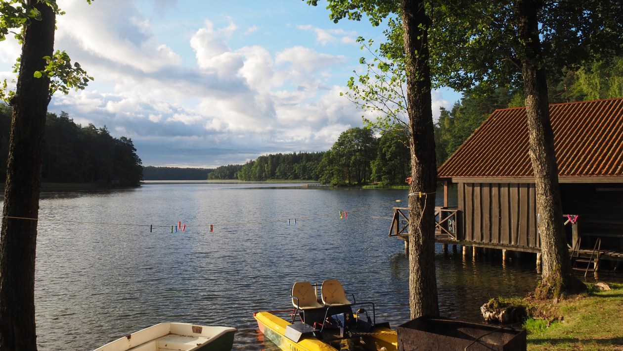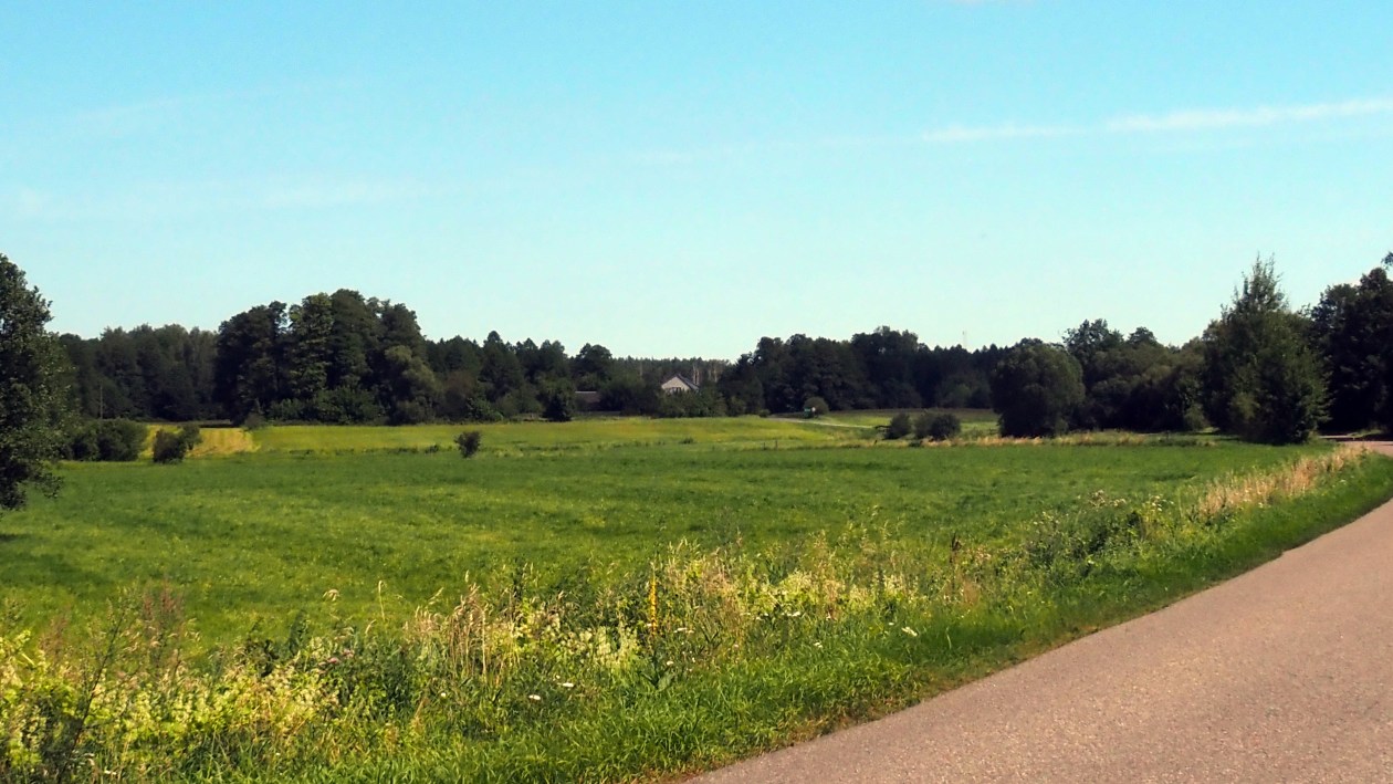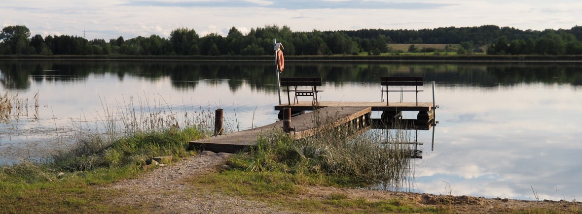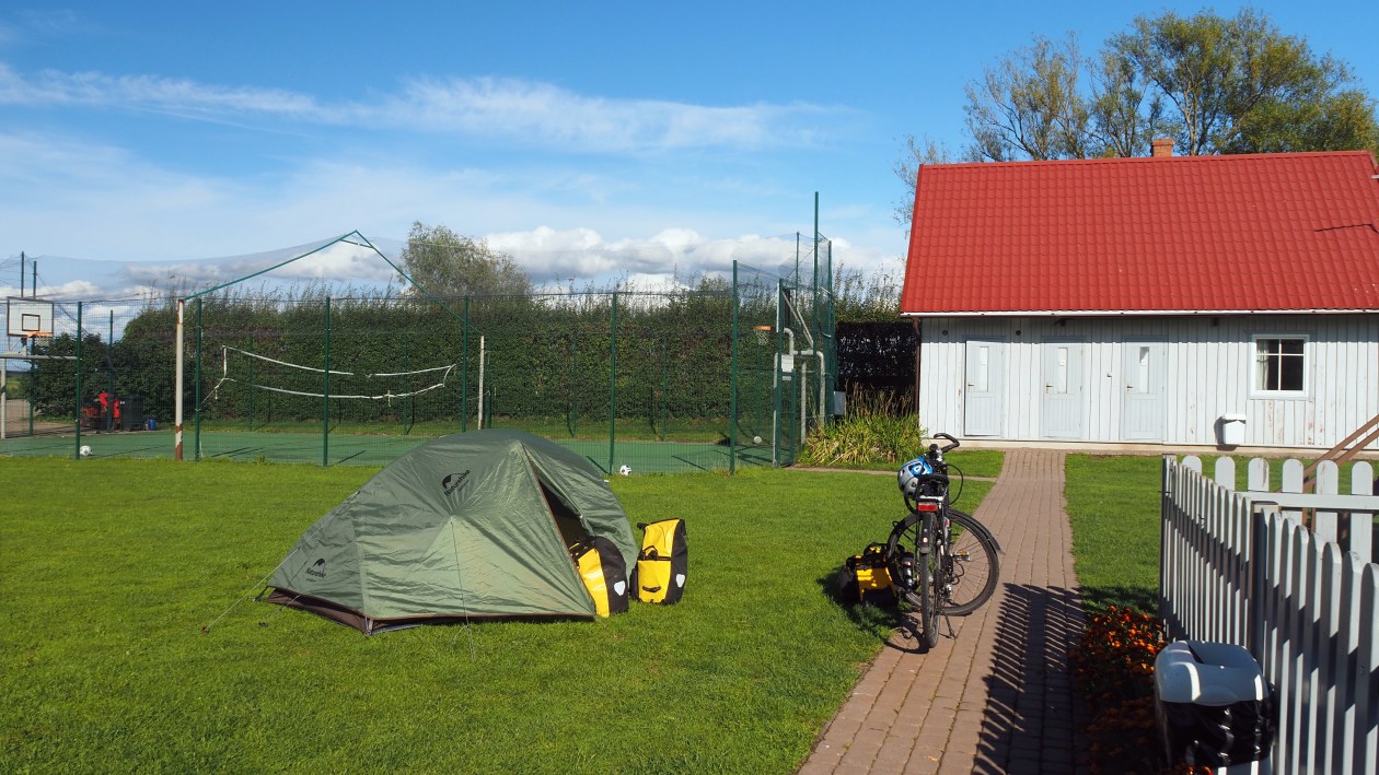 Die anschließende Landstraße führte durch eine malerische Landschaft, war aber auch anspruchsvoll hügelig und nicht gerade verkehrsarm. Mein Ziel war ein kleiner privater Campingplatz, der mir von der deutschen Familie in Vilnius empfohlen war und etwas abseits an einem See liegt. Fast wäre ich der Anziehungskraft einer anderen kostenlosen Wiese mit Toilette an einem See 11 km vor meinem Ziel erlegen, aber ich besann mich rechtzeitig genug, um dort noch lange vor Sonnenuntergang einzutreffen. Ein großer Schäferhund mit deutschem Namen (inzwischen vergessen) bewachte das Haus des Eigentümers. Ich begrüßte den Hund und dann kam auch der Besitzer und wies mir einen schönen Platz für 10 € zu.