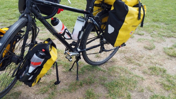Als ich im Hotelfoyer mein Fahrrad bepackte, schlug plötzlich der Lenker um, das Rad kam aus dem Gleichgewicht und fiel samt Gepäck über den hinteren Seitenständer. Knacks – das war zu viel. In zwei saubere Teile zerbrochen lag er unreparierbar da. Was jetzt? Ohne Ständer weiterfahren? Das macht Anhalten und Abstellen viel zu schwierig. Ich musste eine Lösung finden. Also suchte ich nach Fahrradwerkstätten. Die erste, am frühesten geöffnete, erwies sich als nicht mehr existierend. Die nächste hatte zwar Ständer zur Auswahl, nur eben nicht den gleichen. Stattdessen ein anderes Modell, das ich erst mal nahm, in der Hoffnung, dass es ein ausreichender Ersatz sein könnte.