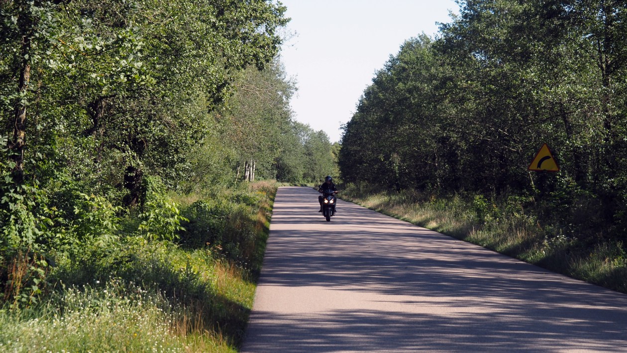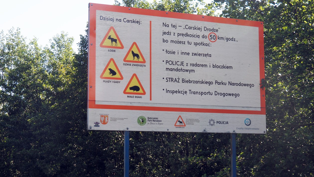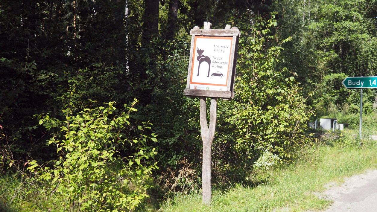 14.08.25 Jetzt ging es auf dem schnurgeraden, wenig befahrenen Zarenweg weiter, den mal der Zar durch den Sumpf hat bauen lassen, um vermutlich die okkupierten polnischen Gebiete besser sichern zu können. Er führt wie schon erwähnt durch den Nationalpark Biebrzanski Park Narodowy [Bilder], ist eine auch für Autos geschwindigkeitsbegrenzt freigegebene Radroute mit ausgezeichnetem Belag und wenig Verkehr. Dichter sumpfiger Wald auf beiden Seite, dann mal eine größere Lücke mit freier Sicht über eine offene Sumpflandschaft. Und immer wieder dramatische Warnungen vor Elchen, von denen ich keinen einzigen sah…