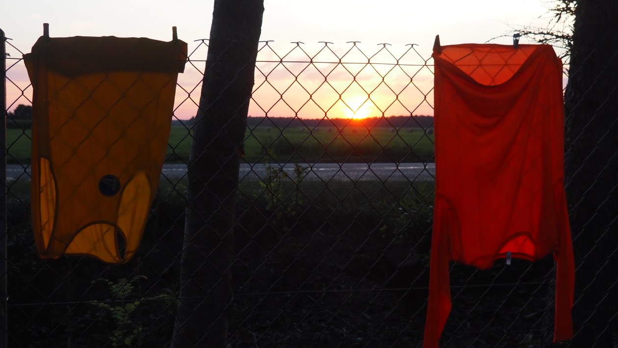 Als ich dann nach 82 km nach Sieczychi kam – ein sehr langes Straßendorf-, erinnerten ich mich daran, dass ich mir Trinkwasser für die Nacht im “Sklep” (dem Dorfladen, viele polnischen Dörfer haben so etwas) kaufen wollte und kam mit dem Ladenbesitzer etwas ins Gespräch. Ich fragte ihn, wo man hier einfach so zelten kann und er verwies erst auf den Wald, der auf einem steilen Hügel südlich vom Ort liegt. Das gefiel mir gar nicht. Stattdessen frage ich ihn, ob ich nicht auf dem Rasen hinter seinem Laden zelten könnte (hatte ich vorsorglich erkundet). Er zögerte einen Moment, aber dann sagte er zu. Am nächsten Morgen würde seine Tochter ab 6 Uhr den Laden öffnen. Dann könnte ich auch die Toilette benutzen und mich notdürftig waschen. Das reichte mir. Essen kochte ich mir auf der Stufe hinter dem Laden sitzend. Dabei hätte ich fast eine meiner Trinkflaschen verschmort, die dem Kocher etwas zu nahe stand…