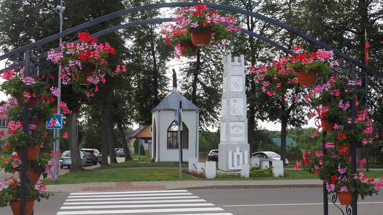 Heute sollte es ins ehemalige “Memelland” gehen, einst der nordöstlichste Zipfel des Deutschen Reiches. Google Maps zeigt einige Orte auf Deutsch an, genau wie in Polen, was ja historisch informativ ist, aber einem für die aktuelle Orientierung wenig nützt. Ich werde im Folgenden wie im Kapitel Polen beide Varianten nennen. Ziel für mich war heute in Panemuné/Übermemel ein Motel mit nur 4 km Umweg, denn in der Stadt Pagegiai/Pogegen gab es keinen Campingplatz und alle Hotels waren ausgebucht. In Jurbarkas /Georgenburg hielt ich mich nicht weiter auf. Ich verließ die 141, als an einer alten Brücke mit der Aufschrift “Mažoji Lietuva” (Klein Litauen, ein historischer Begriff), links die 300 Jahre alte Allee nach Smalininkai/Schmallinicken abbog. Eine echte preußische Allee. So etwas hatte ich bisher in Litauen nicht gesehen. Ich fuhr zum ehemaligen Hafen, dem letzten des Deutschen Reiches an der Memel, von dem nicht viel übriggeblieben ist. Ab hier ist das andere Flussufer russisch (Oblast Kaliningrad). Im Dorf gibt es einen Glockenturm und einen Gedenkstein in einer Parkanlage, die an die deutsche Zeit erinnern, errichtet von ehemals vertriebenen Deutschen. [Bilder] Ich war erstaunt und lernte, dass Litauen ohne Groll auf die gemeinsame Vergangenheit als eine litauisch/deutsche Mischkultur zurückblickt, die endete als mit dem Nahen der Roten Armee Hitler 1944 alle Deutschen aus dem Memelland zwangsevakuieren ließ. Weiter fuhr ich und immer auf Spurensuche, denn ich bin ganz allgemein historisch interessiert. Klein Litauen wiederum ist die historisch-ethnische Region im Nordwesten des heutigen Litauen, bewohnt von preußischen Litauern („Lietuvininkai“). Sie umfasst Teile des ehemaligen Ostpreußens, darunter auch das Memelland. Dagegen ist Memelland der preußisch-administrative Bezirk, der nach dem Versailler Vertrag von Frankreich verwaltet, aber 1923 handstreichartig von Litauen okkupiert wurde, was die Franzosen widerspruchslos hinnahmen, denn sie hatten eh keinen Nutzen davon.