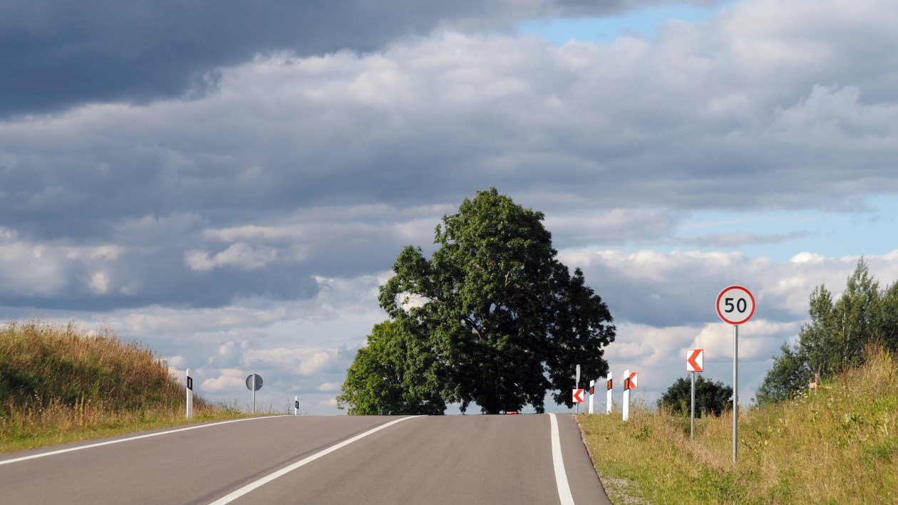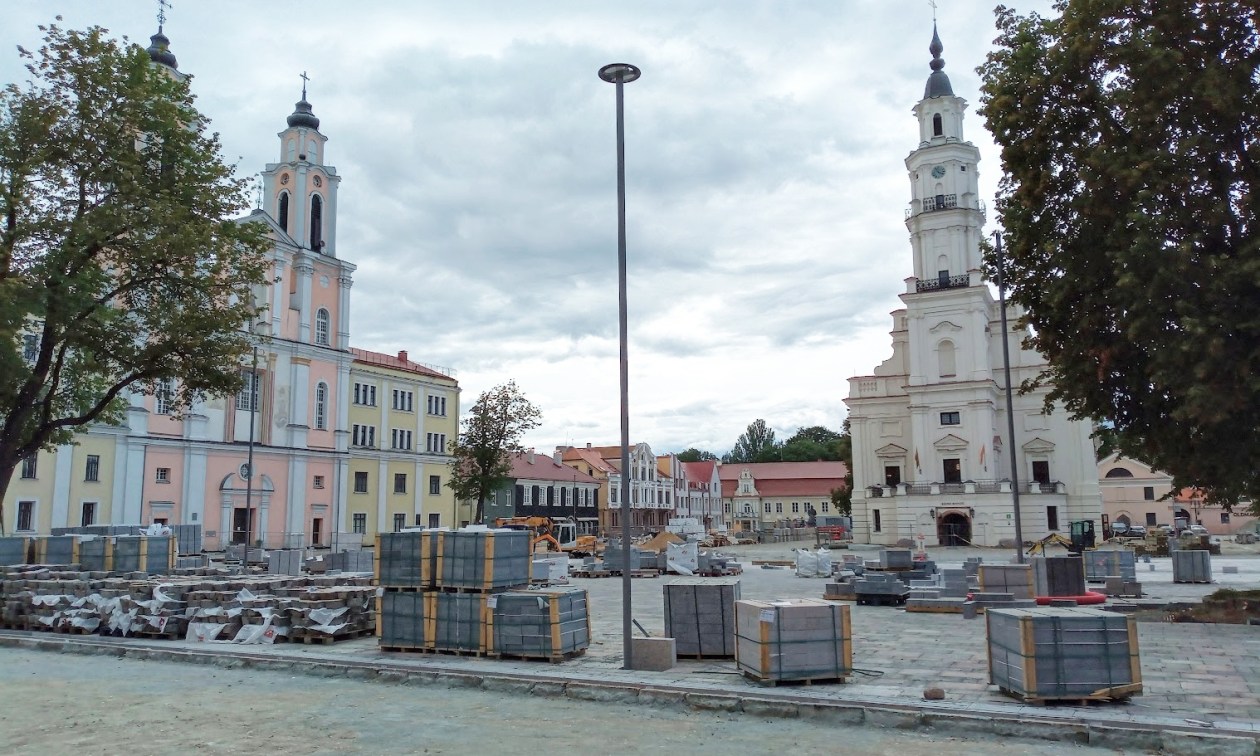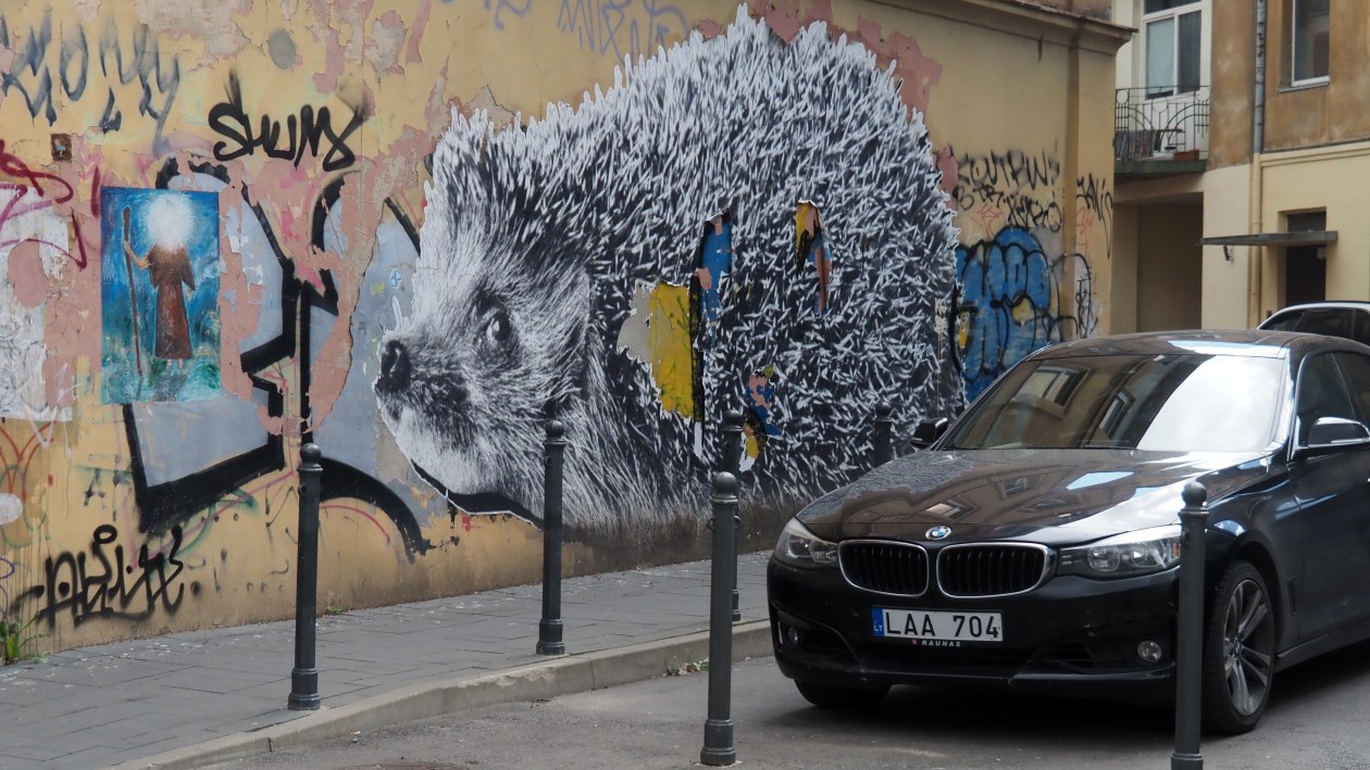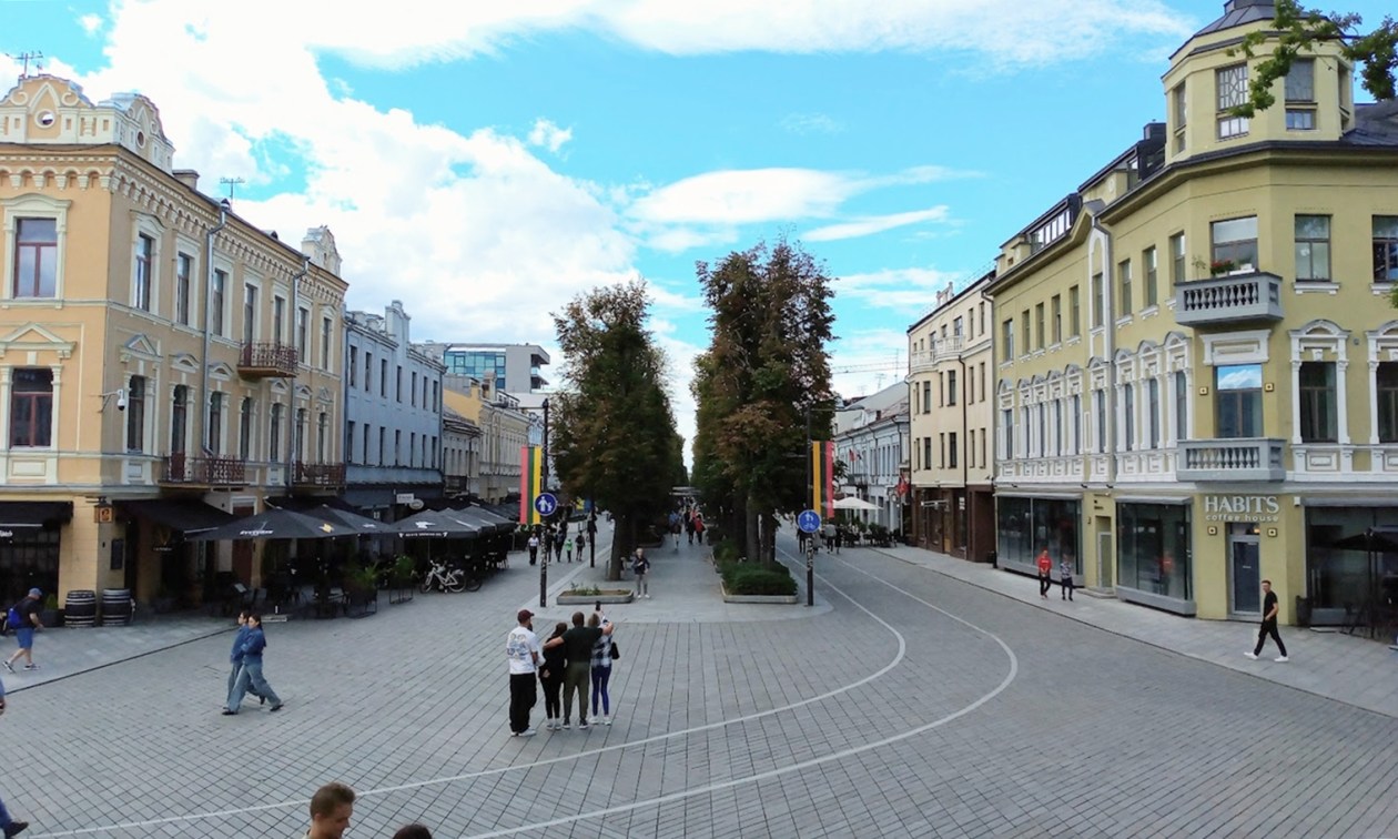 Zum Glück ging es ab dem nächsten Dorf einigermaßen normal weiter, immer in einigem Abstand zur Autobahn. Nach deren Unterquerung bei Rumšiškės hatte ich nur die Wahl zwischen einem Waldweg für eine nicht klar erkennbare Länge – immerhin halbfest – zu fahren oder einen langen Umweg in Kauf zu nehmen. Ich entschied mich für den Waldweg und zum Glück hatte ich nach 4 km wieder festen Boden unter den Reifen und erreichte so auch die ersten Häuser der Außenbezirke von Kaunas, der zweitgrößten litauischen Stadt. Bis zu meinem Ziel, ein AirBnB-Zimmer, sollten es noch 25 km sein. Die Strecke entpuppte sich als eine echte großstädtische Herausforderung, teils ohne Radweg, dafür umso mehr Verkehr. Und fast wäre ich überfahren worden! Als ich ungeduldiger Mensch, um einen Ampelstau abzukürzen, von der zu schmalen Fahrbahn auf den zu schmalen Fußweg wechselte, musste ich einem tief hängenden Ast ausweichen, rutschte mit dem Vorderrad wieder auf die Fahrbahn und kippte dann komplett um. Zu meinem Glück stoppte der Verkehr sofort und ich räppelte mich unter meinem Rad hervor, hievte alles wieder auf den Fußweg und stellte fest, dass das dies Halterung meines Navis beschädigt hatte und ich ihn erst einmal lose in die Lenkertasche legen musste, wo er mir nicht viel nützte. Bei näherer Betrachtung erkannte ich, dass sich das gut mit Sekundenkleber kleben lassen müsste. Nur leider – die Tube, die ich dabeihatte, bestand nur noch aus aufgeblähter Luft.