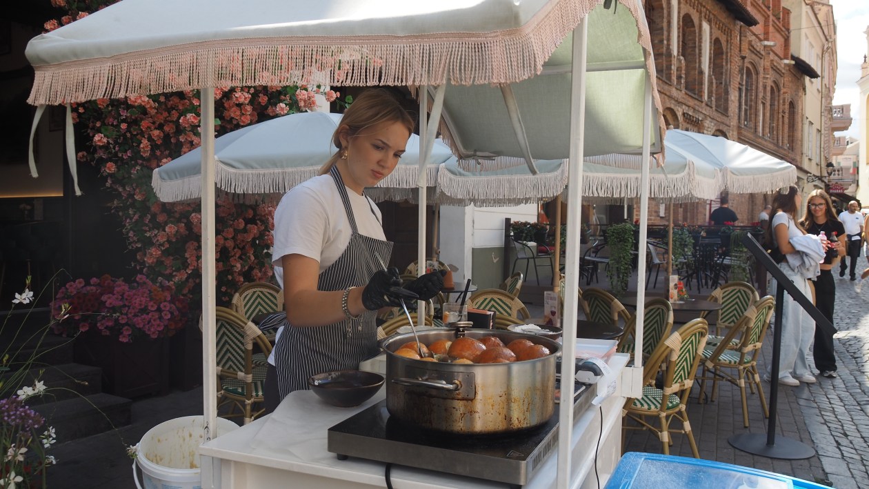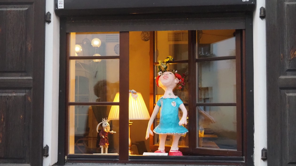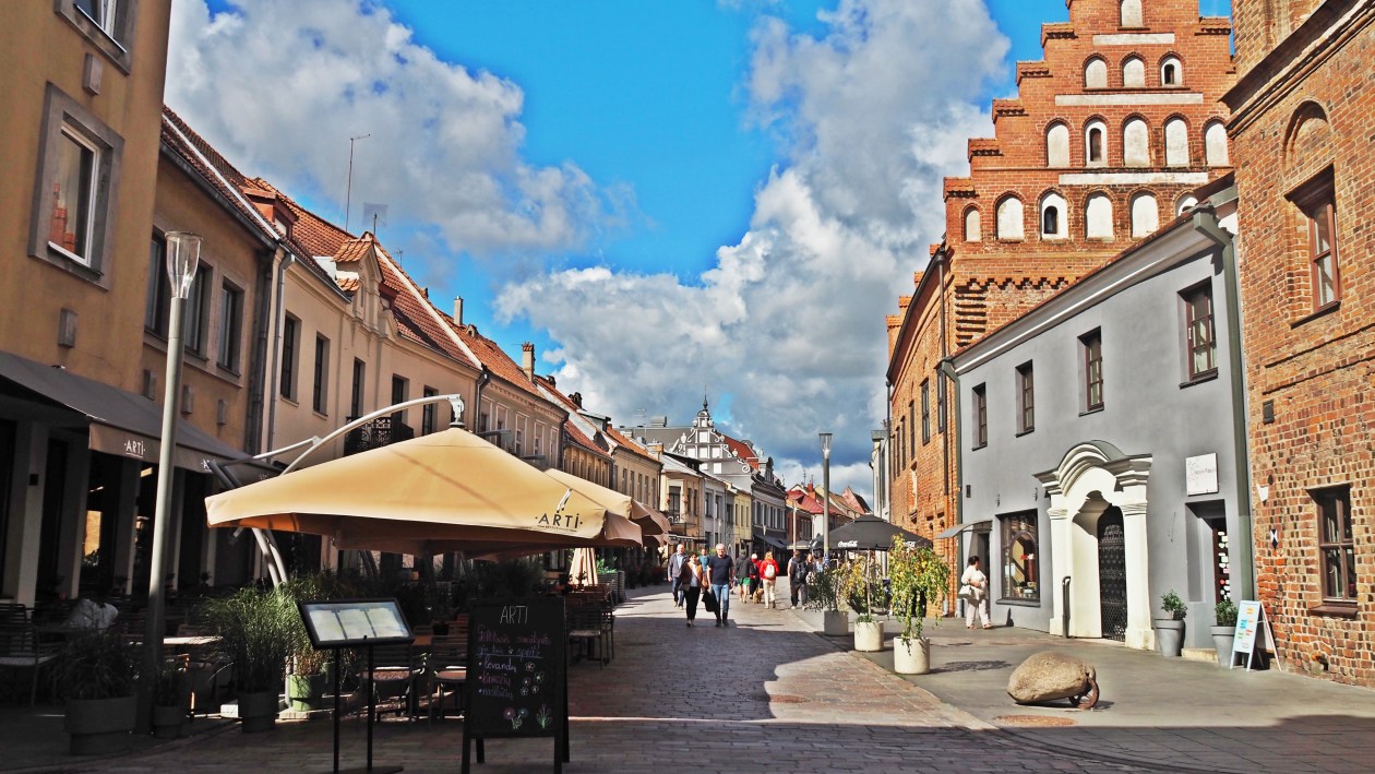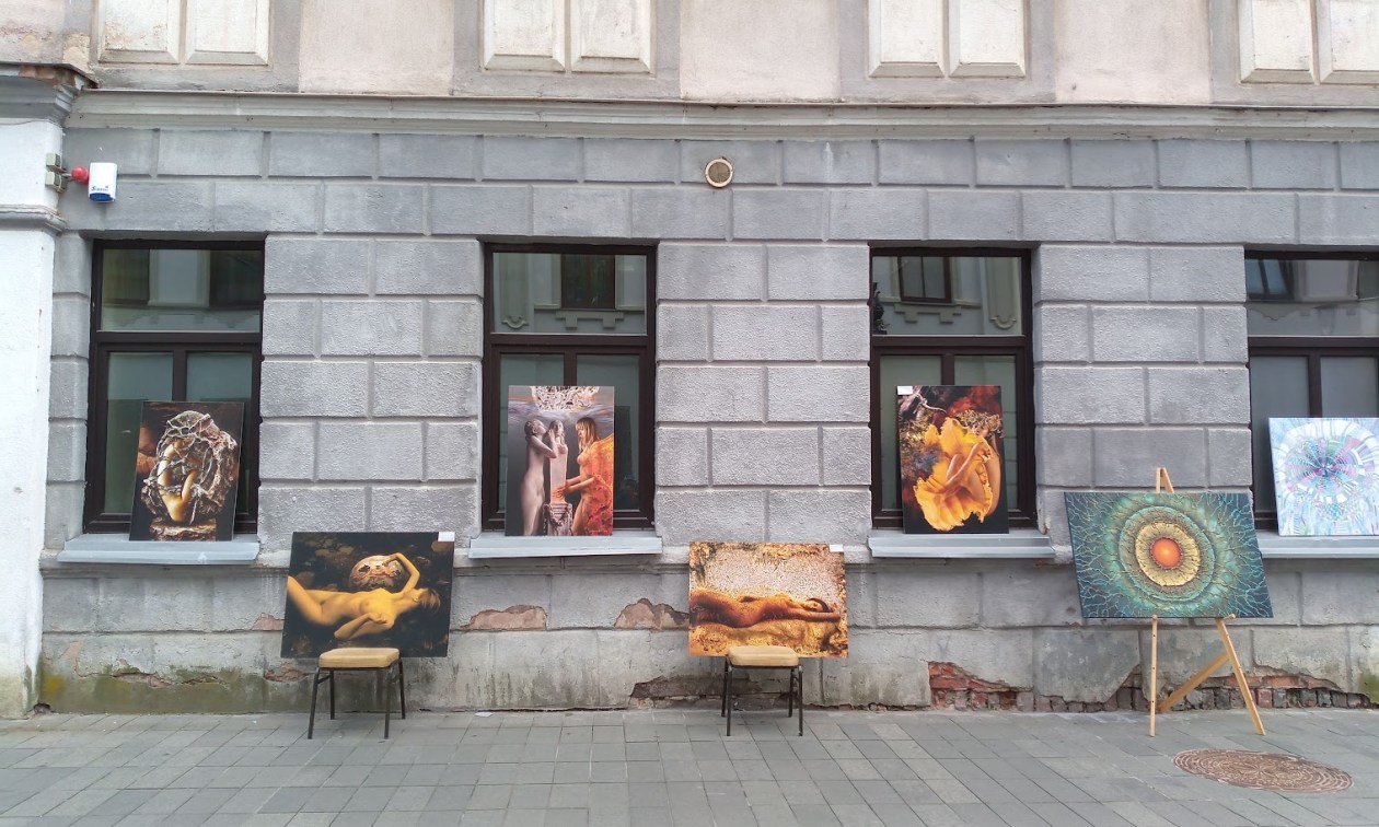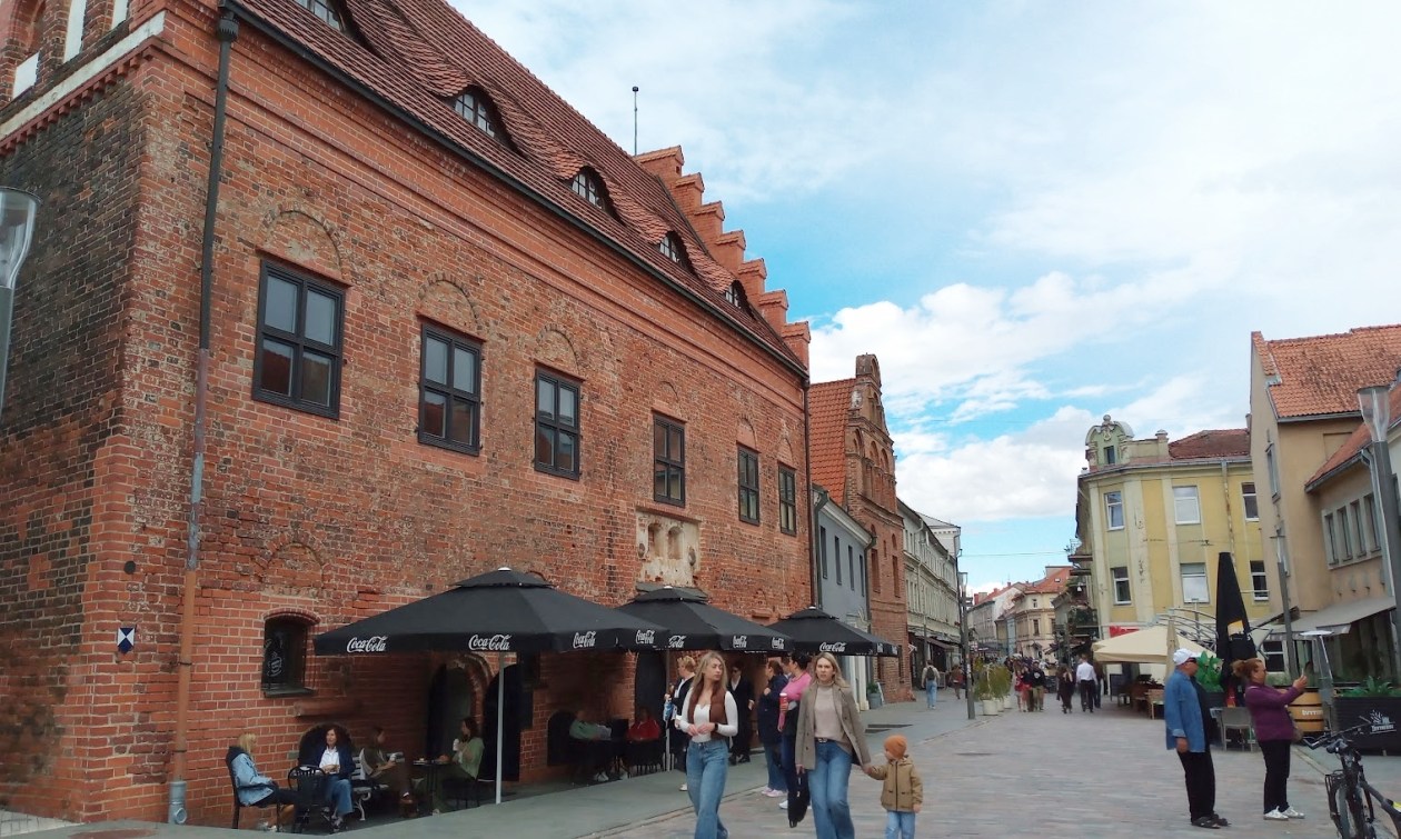 Ich überquerte wieder den Memel und lief mehr intuitiv durch die Altstadt die Vilniaus gatve, eine Fußgängerzone, entlang, aß ein Eis und schaute mir im Hof des ehemaligen Präsidentenpalastes eine Fotoausstellung über die litauische Frauenbewegung in den 1920er Jahren an.