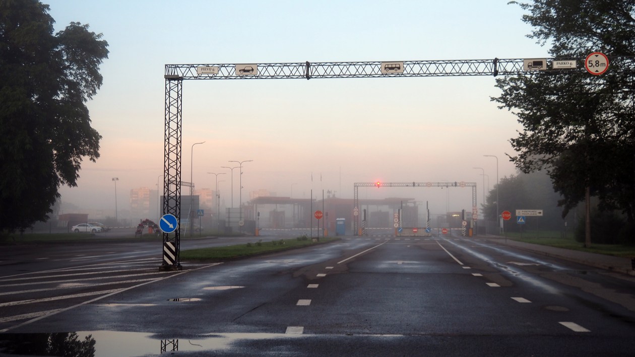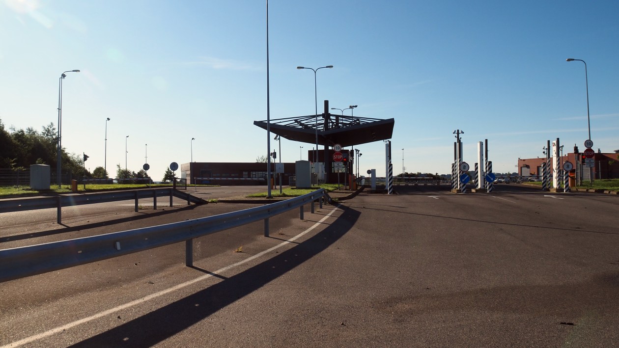 Am Grenzübergang leuchtete eine rote Ampel still vor sich hin.