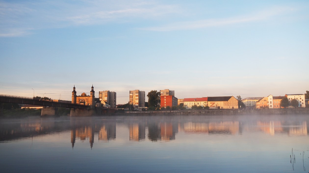 Man darf ja die Brücke nicht zu Fuß überqueren. Aus dem Fenster eines anderen Hauses beobachtete mich ein Mann neugierig. Ich glaube, ich habe während dieser Zeit in Panemuné, der kleinsten Stadt Litauens, mit knapp über 200 Einwohnern weniger als 10 Menschen gesehen. Was für eine bizarre Erfahrung, die ich am anderen Morgen noch vertiefte, als ich mir das alles noch einmal im Frühnebel ansah…