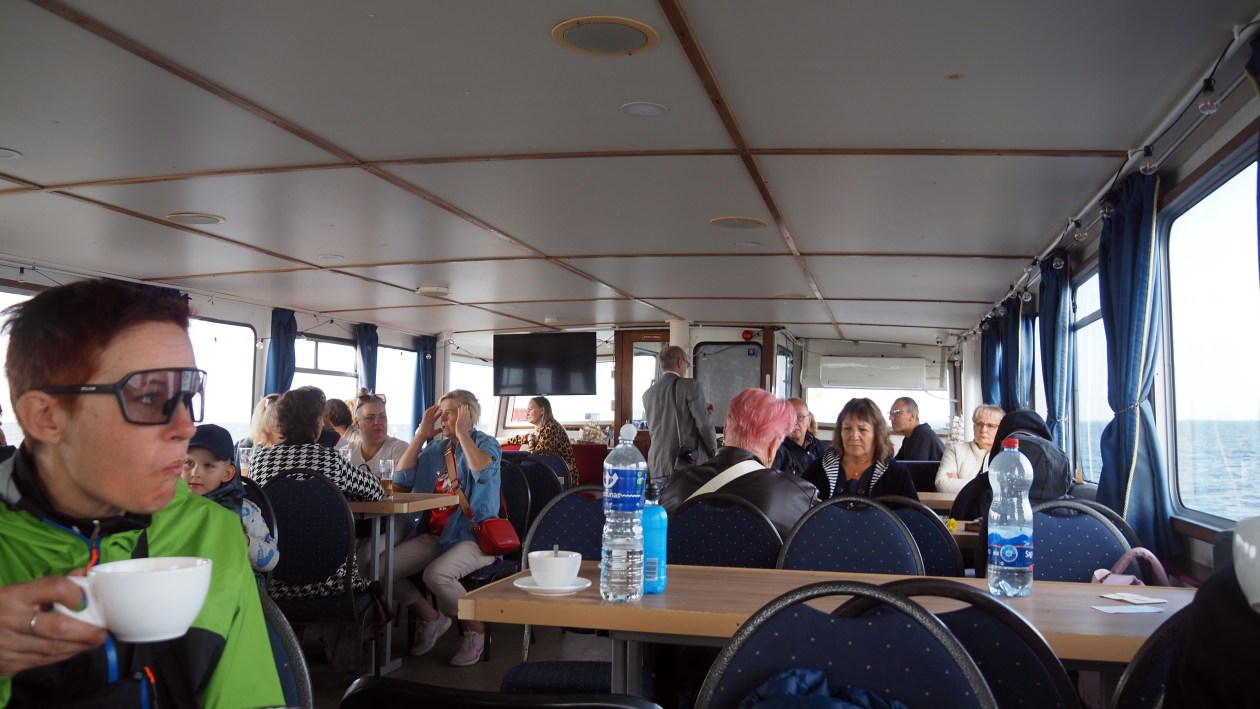 Die Abfahrt der Fähre war auf 08.30 Uhr festgesetzt, und ich schaffte es rechtzeitig mit Packen und Frühstücken fertig zu sein. Ein anderes Radfahrerpaar aus Deutschland gesellte sich hinzu, so dass ich Gesellschaft bei der zweistündigen Überfahrt hatte.