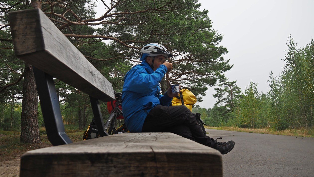 Morgens nutzte ich die Gelegenheit zum Schwimmen und kaum kam ich aus dem Wasser, tröpfelte ein Regenschauer auf mich herab, sodass mein trocken gebliebenes Zelt erst mal wieder nass wurde. Ich war sauer, aber zum Glück kam schnell die Sonne wieder hervor. Heute sollte es eine lange Etappe über 90 km werden, aber ich hatte mein Einstiegstraining ja schon hinter mich gebracht,