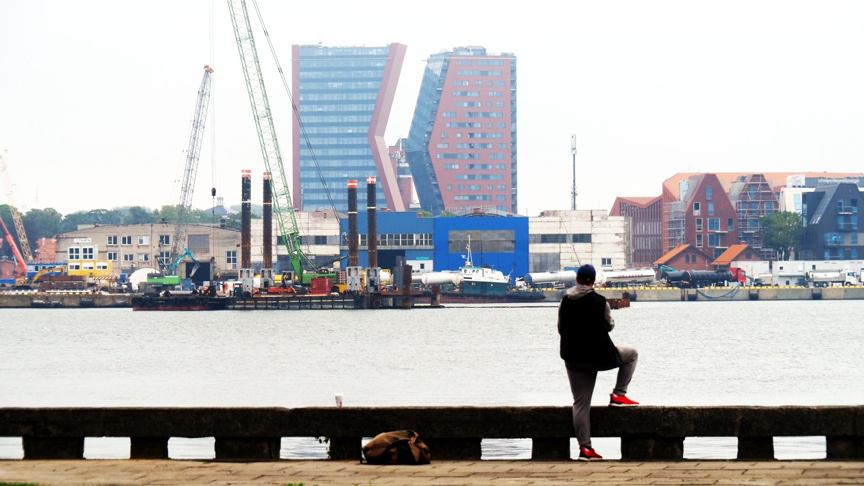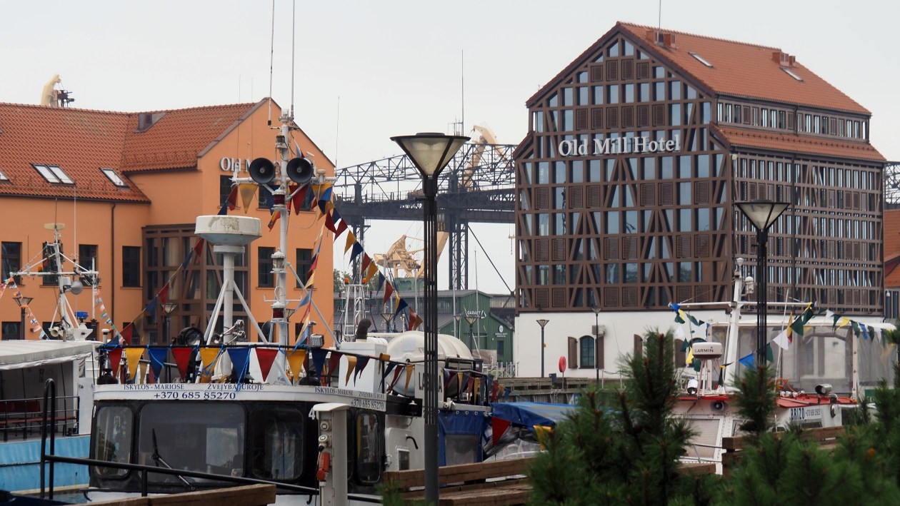 Mein Knie schmerzte immer noch, aber zum Glück nahmen die Schmerzen beim Radfahren nicht weiter zu, als ich am Vormittag nach Klaipėda/Memel startete. Der erstklassige Radweg führt fast die gesamte litauische Länge der Kurischen Nehrung entlang, vorbei an den Dünen, für die man jetzt 5 € Eintritt bezahlen musste und die ich meinem Knie ersparte. Ich beließ es bei einem Kaffee am Eingang und freute mich über die Bewunderung meiner Leistung durch eine junge Radsportlerin aus Vilnius. Ich war ja schon auf vielen Dünen der Welt, einschließlich dieser, gewesen. Obwohl ich noch gut Zeit hatte, spürte ich einen gewissen inneren Druck, weil man ja 2 Stunden vor dem Ablegen zum Check-in an der Fährstation im Hafengelände sein sollte. Aber erst einmal weiter, denn der Radweg kam mir endlos vor.
