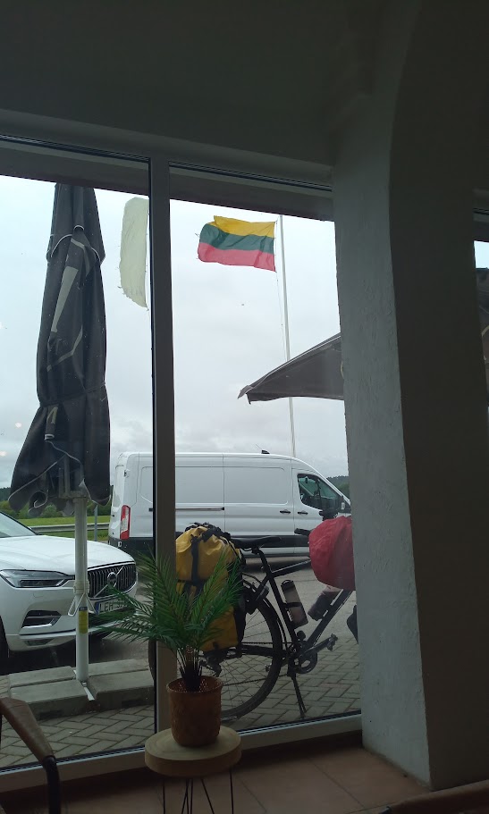 Um 10.30 Uhr erreichte ich über einen halbwegs gut befahrbaren Waldweg die litauische Grenze nach 689 Kilometern in Polen. Es gab einen mobilen Grenzposten, an dem 2 weibliche Polizistinnen gerade einen PKW kontrollierten, aber die winkten mich einfach durch.