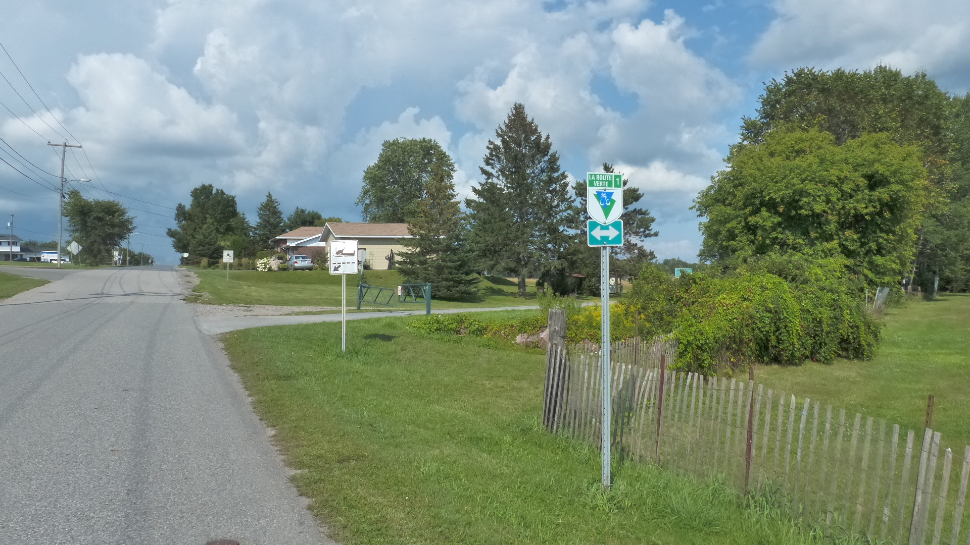 Neineinein, ich bin ja noch in Ontario… Aber ein bisschen war ich schon in Quebec, vorgestern, als mir google maps die Route durch Quebec nach Constance Bay empfohlen hat. Aber Modellstehen an der Grenze gibt es nur bei ersten Mal. Und die Straßen sind besser. Und es gibt La Route Verte, ein Radwanderwege – Netz, das ich gleich mal 30 km lang ausprobiert habe.