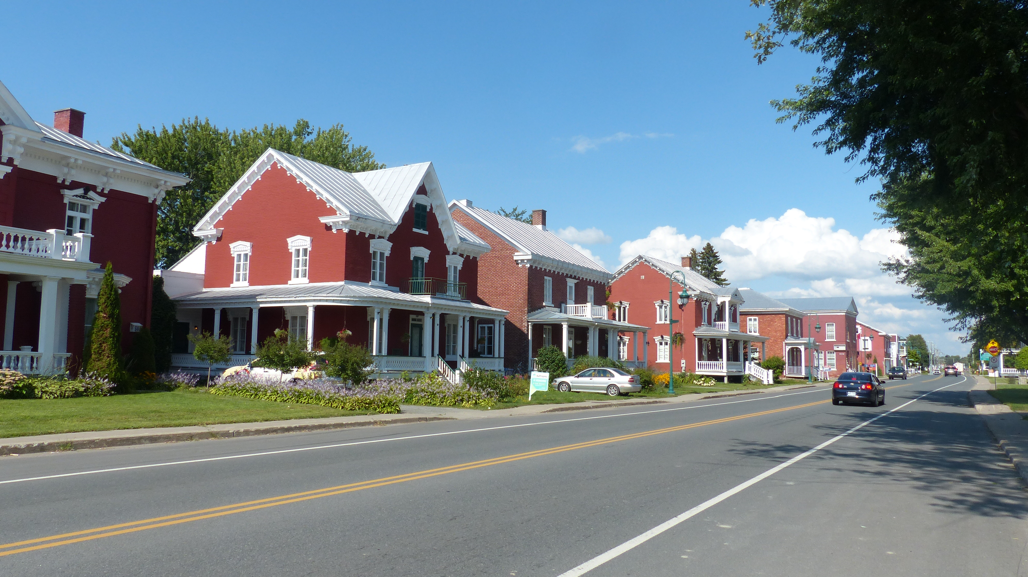 Ich fahre am Sankt-Lorenz-Strom entlang. Die Ufer sind zu 99% in Privatbesitz. Einige wenige Stellen sind öffentlich zuugänglich und ermöglichen einen unverbauten Blick auf den Strom. Mal eben reinspringen und eine Runde im sommerllich erwärmten Wasser schwimmen gelang mir erst 130 km hinter Montreal, wo es dann sogar ein wenig Sandstrand gab. Überall Villen und andere mehr oder weniger teure Häuser. Der Stil oft von den anderen Provinzen Neuenglands geprägt vornehm antiquiert und wie aus der Zeit gefallen.