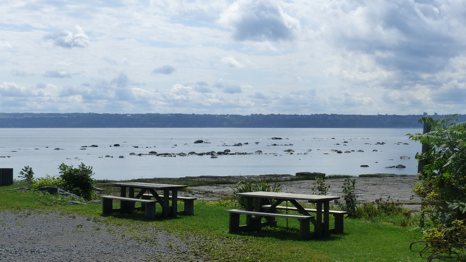 Der Sankt-Lorenz-Strom wird jetzt immer breiter und bekommt Meeresformat mit Gezeiten und kaum noch sichtbarem anderen Ufer. Die Wassertemperatur auch. 17°C…