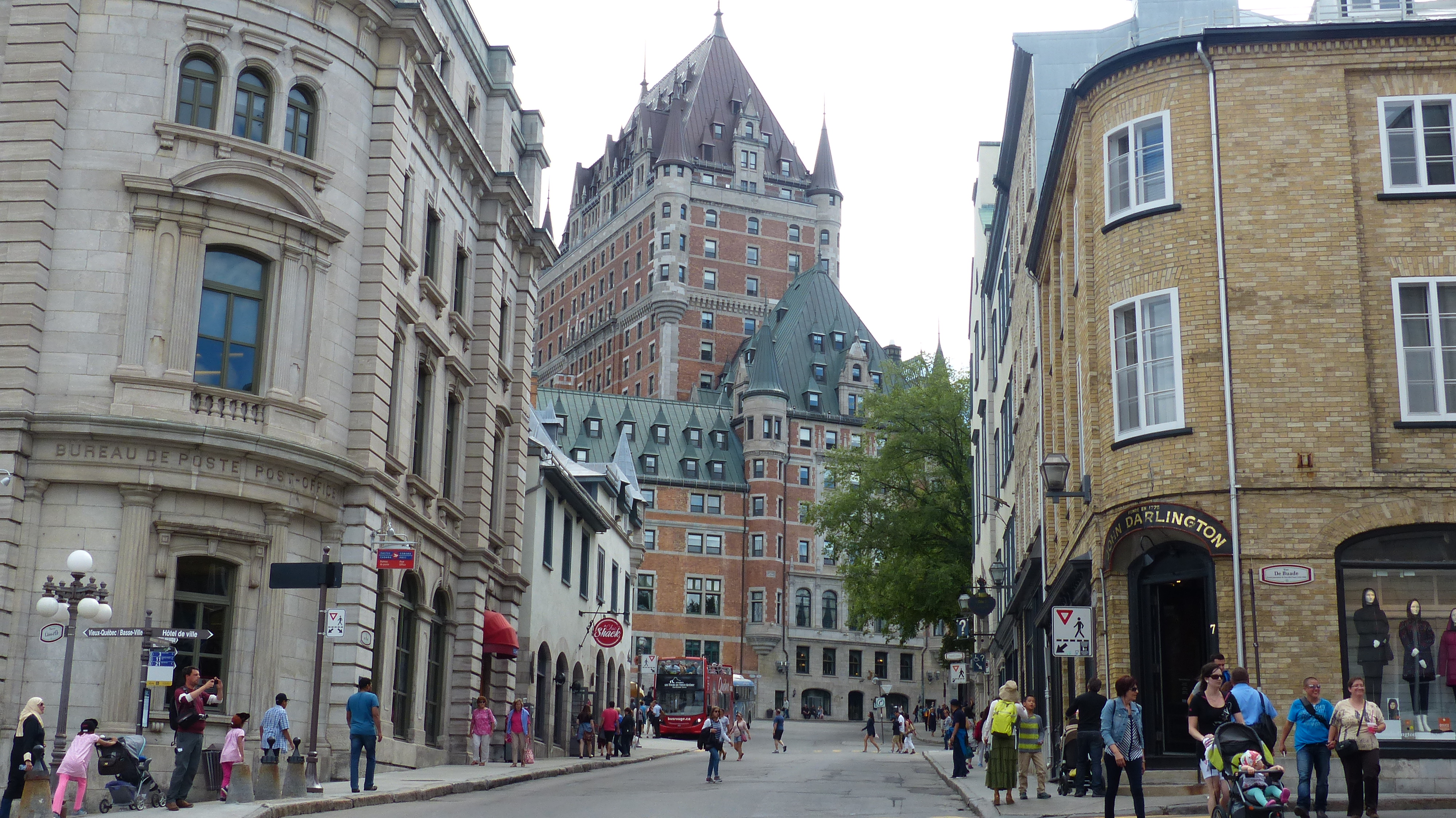 Neuer Versuch am Morgen. Ja, hier gibt es eine „echte“ Altstadt, durch die Touristenmassen strömen. Also wem Europa zu weit ist, der kann hier etwas quasi europäische Altstadtatmosphäre schnuppern, ohne auf amerikanische Architekturzitate ganz verzichten zu müssen. Quebec City wirkt auf mich französischer als andere Städte hier. Bei einer Straße dachte ich sogar „könnte Potsdam sein“.