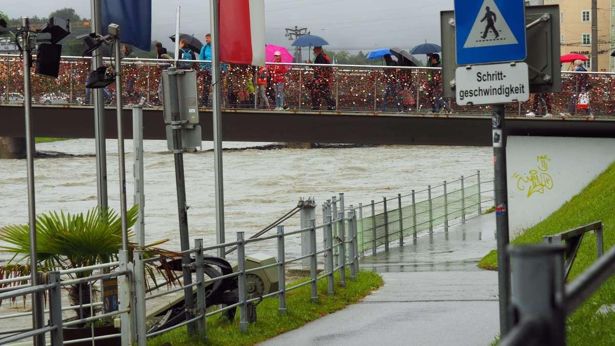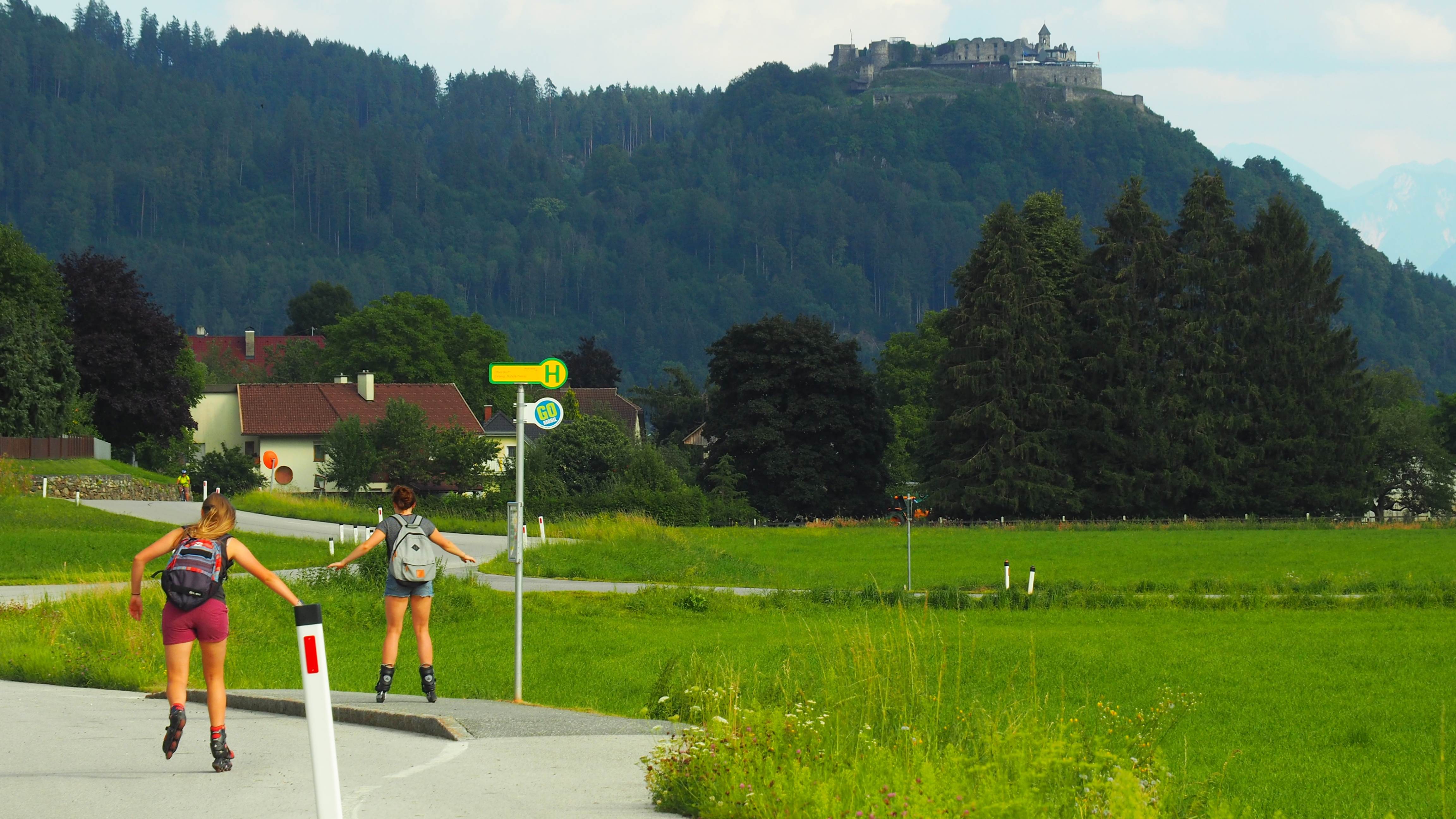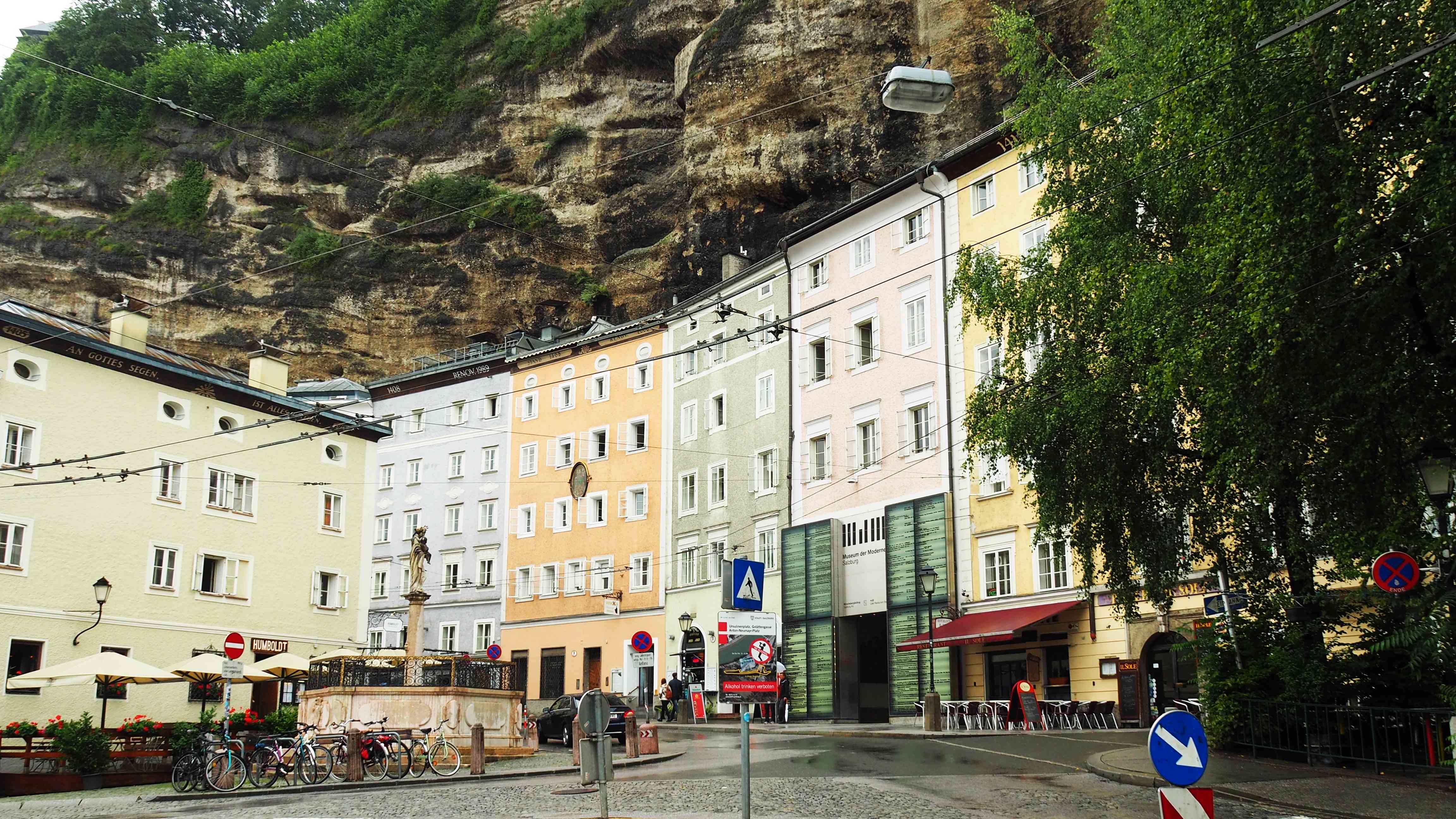 Tag 1: Ich sitze in der Küche meines Gastgebers Benedikt in Salzburg. Eine Ersatzlösung von einem „warmshowers“-Gastgeber vermittelt, der mich selbst nicht unterbringen konnte und in seiner Radfahrergruppe gefragt hatte, ob jemand einspringen kann. Gestern Abend bin ich nach einer 12-stündigen stressigen Zugfahrt mit viermal Umsteigen aus Berlin hier angekommen. Der vorhergesagte Regen begann wenige Minuten nach meiner Ankunft in der Gstettengasse. Es pladderte die ganze Nacht auf ein Blechdach und während ich auf meinem Bett in einem fast lichtlosen, stickigen Durchgangszimmer lag, begleitete mich dieses Geräusch. Ich konnte es nicht abstellen, weil ich sonst die Tür zur Veranda hätte schließen müssen und womöglich erstickt wäre …