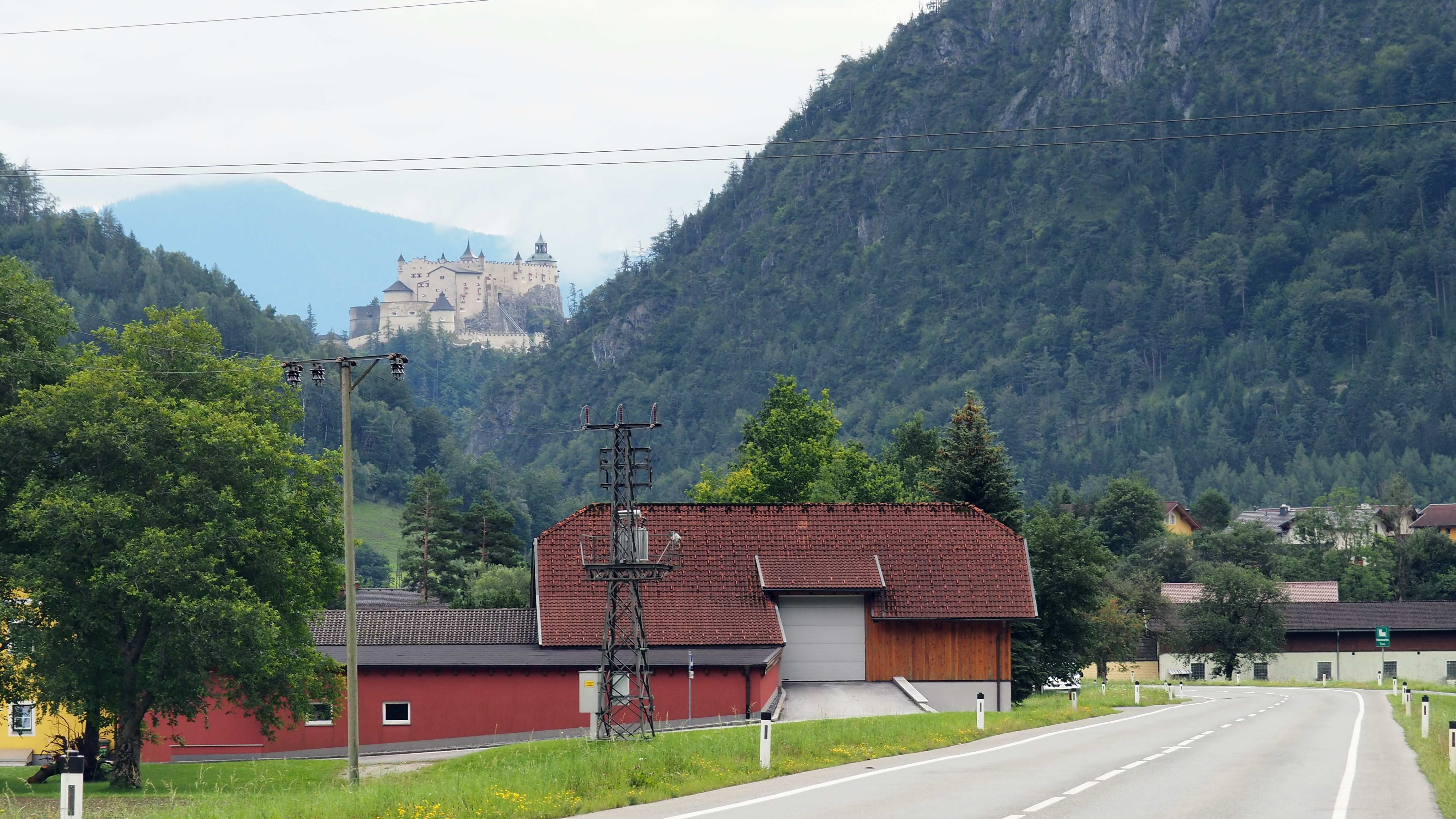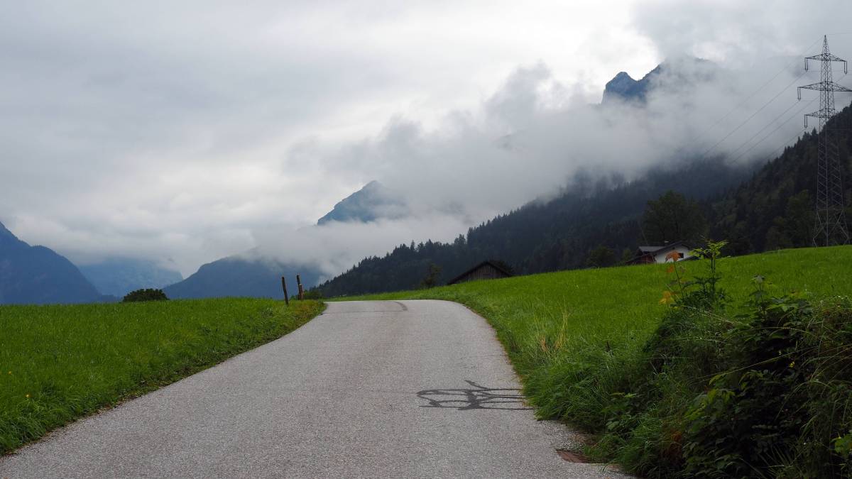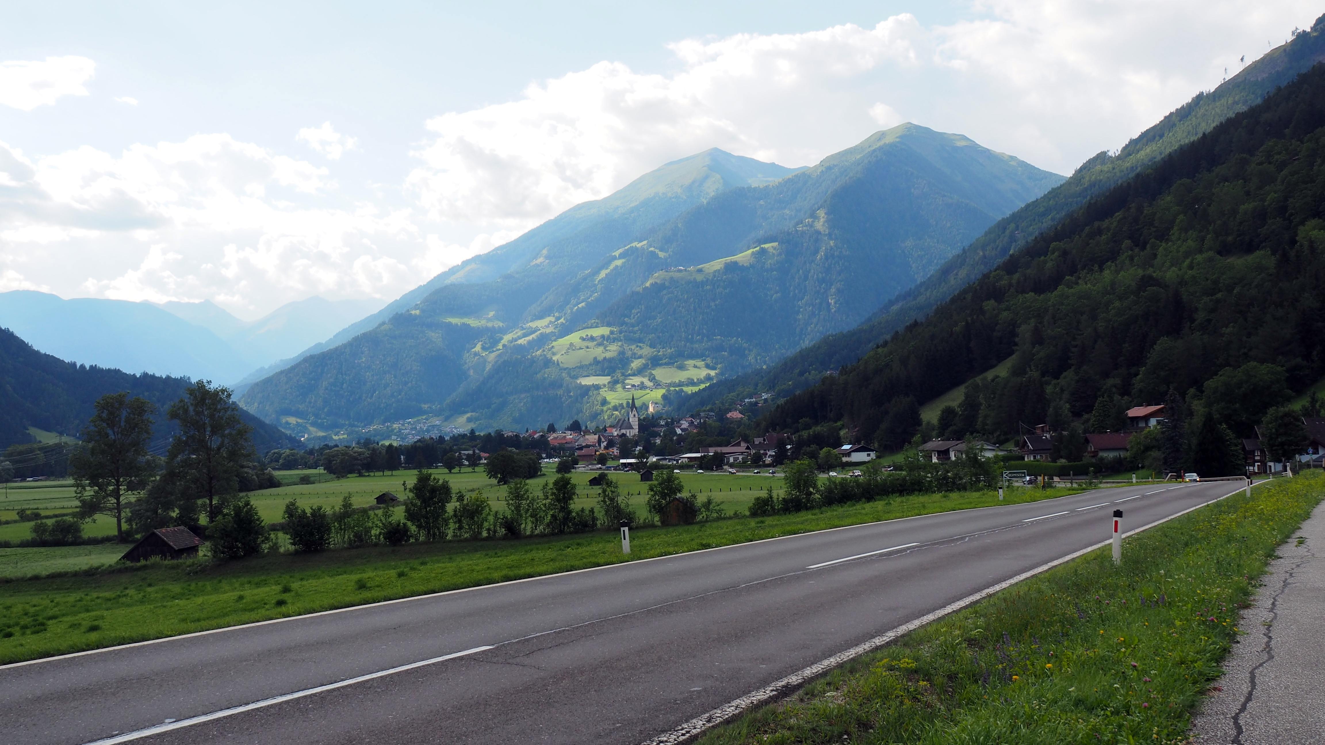 Tag 3 (Etappe 1). Endlich konnte ich nach 40 Stunden Regen (190 mm) meine erste Etappe beginnen. Ich nahm nun wegen der Verzögerung lieber eine kürzere Strecke zum Alpenhauptkamm und fuhr an der Salzach entlang, anstatt über Zell am See. 67 km mehr oder weniger bergauf waren es. Der Tag begann mit erfrischenden 10 ° C, bewölkt und die Temperatur stieg später auf 19 ° C. Gut zum Radfahren, aber ich weiß nie, ob ich eine Jacke anziehen soll oder lieber nicht, denn entweder ist es zu kalt (bergab) oder zu warm (bergauf). Die Gipfel der Berge versteckten sich die ganze Zeit hinter Wolken, so dass ich mir wie in einem feuchten Mittelgebirge vorkam, statt wie in den Alpen. Vielleicht kann ich sie morgen sehen?