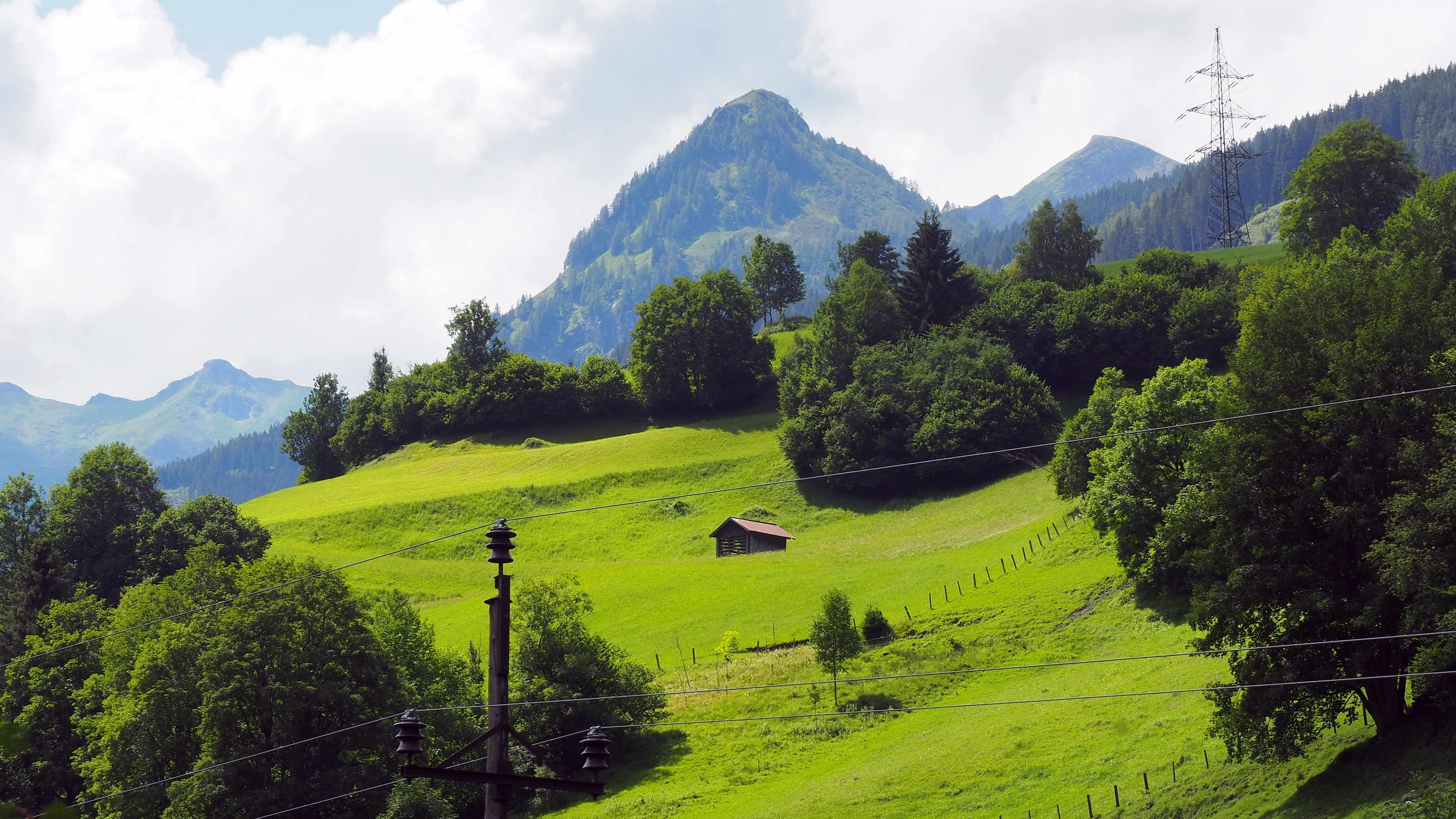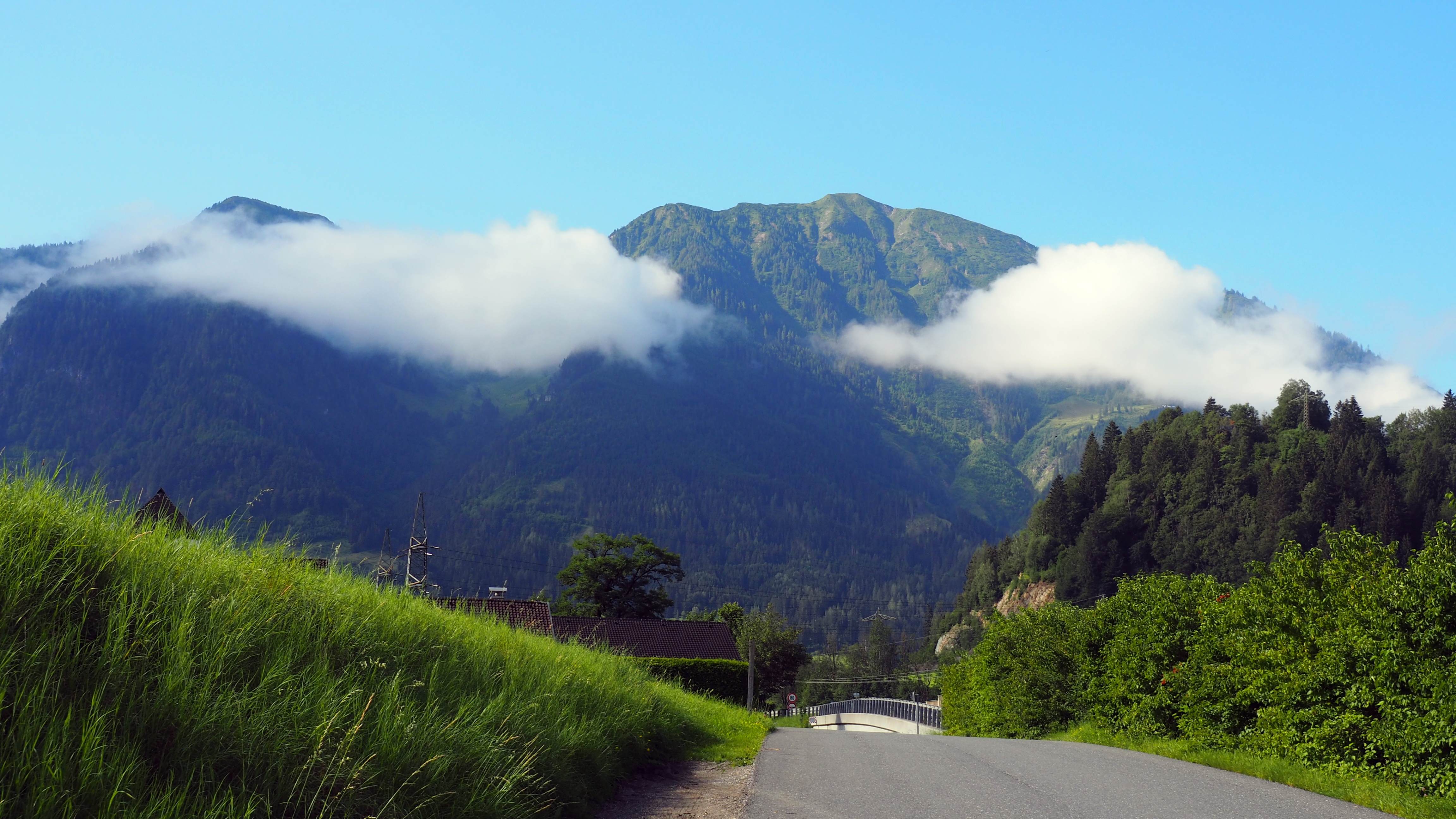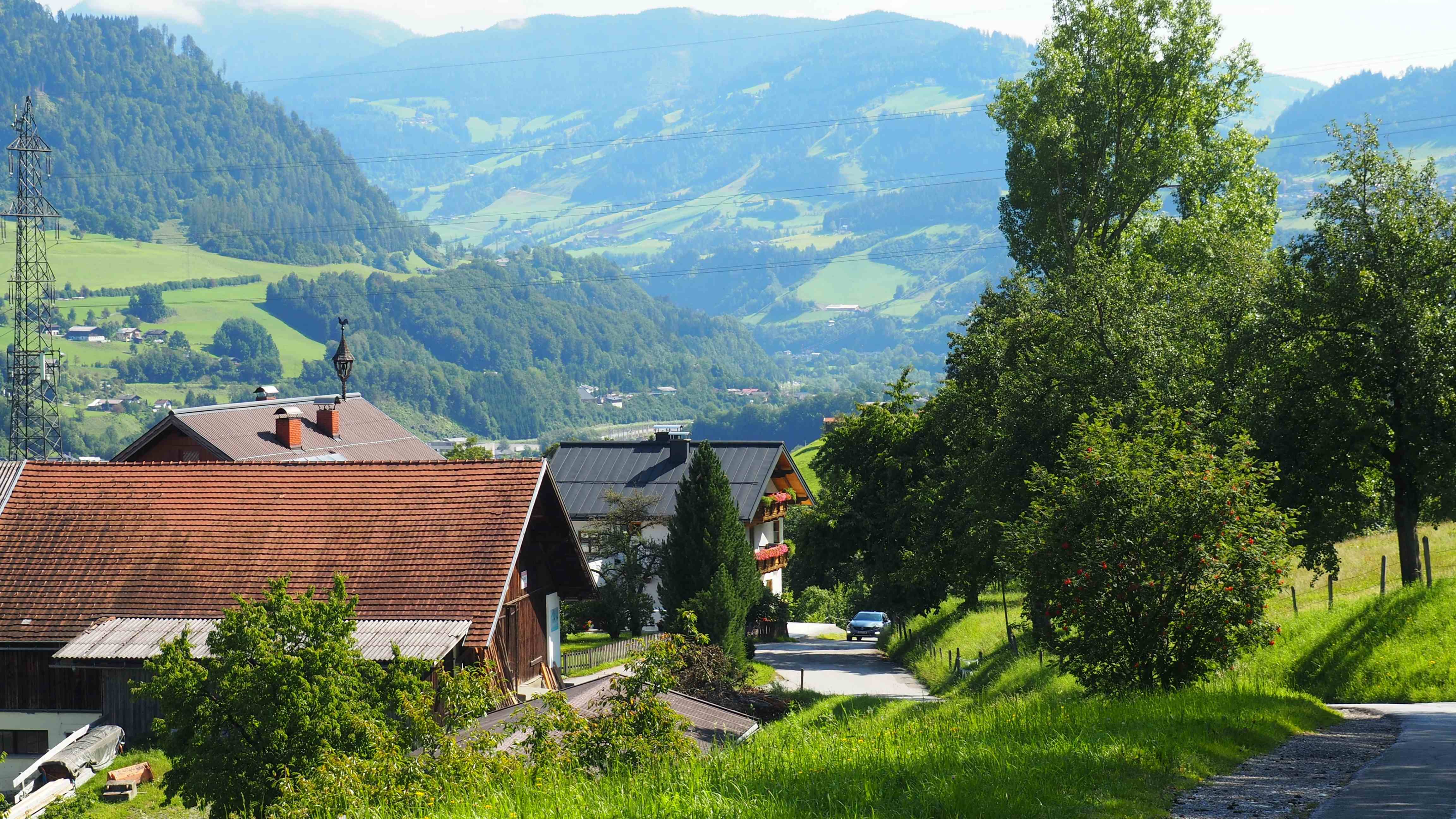 Tag 3 (Etappe 1). Endlich konnte ich nach 40 Stunden Regen (190 mm) meine erste Etappe beginnen. Ich nahm nun wegen der Verzögerung lieber eine kürzere Strecke zum Alpenhauptkamm und fuhr an der Salzach entlang, anstatt über Zell am See. 67 km mehr oder weniger bergauf waren es. Der Tag begann mit erfrischenden 10 ° C, bewölkt und die Temperatur stieg später auf 19 ° C. Gut zum Radfahren, aber ich weiß nie, ob ich eine Jacke anziehen soll oder lieber nicht, denn entweder ist es zu kalt (bergab) oder zu warm (bergauf). Die Gipfel der Berge versteckten sich die ganze Zeit hinter Wolken, so dass ich mir wie in einem feuchten Mittelgebirge vorkam, statt wie in den Alpen. Vielleicht kann ich sie morgen sehen?
