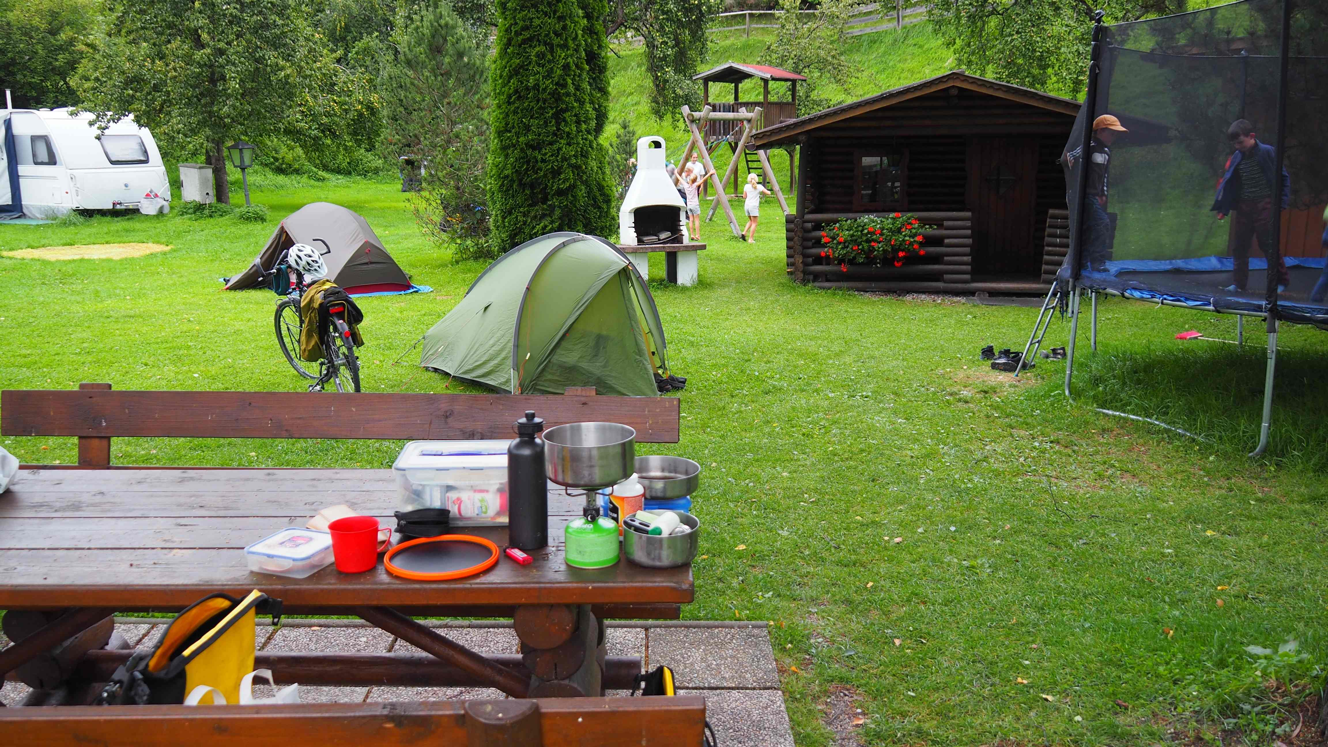 Der Kollege Radfahrer dem das andere Rad gehörte, half mir beim Aussteigen und reichte mir meine Taschen zu. Dann ging es in rasanter Fahrt über Serpentinen bergab, weiter Richtung Süden, bis ich ein Schild „Camping“ sah. Ein Rafting-Platz im Mölltal, völlig in tschechischer Hand. Mehrere Sportlergruppen zelteten dort. Es gab kein Problem dort unterzukommen. Und jetzt sitze ich hier bei einem tschechischen Bier, lade die Bilder von der Kamera auf mein Tablet und schreibe…