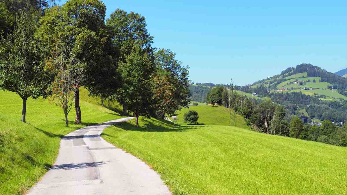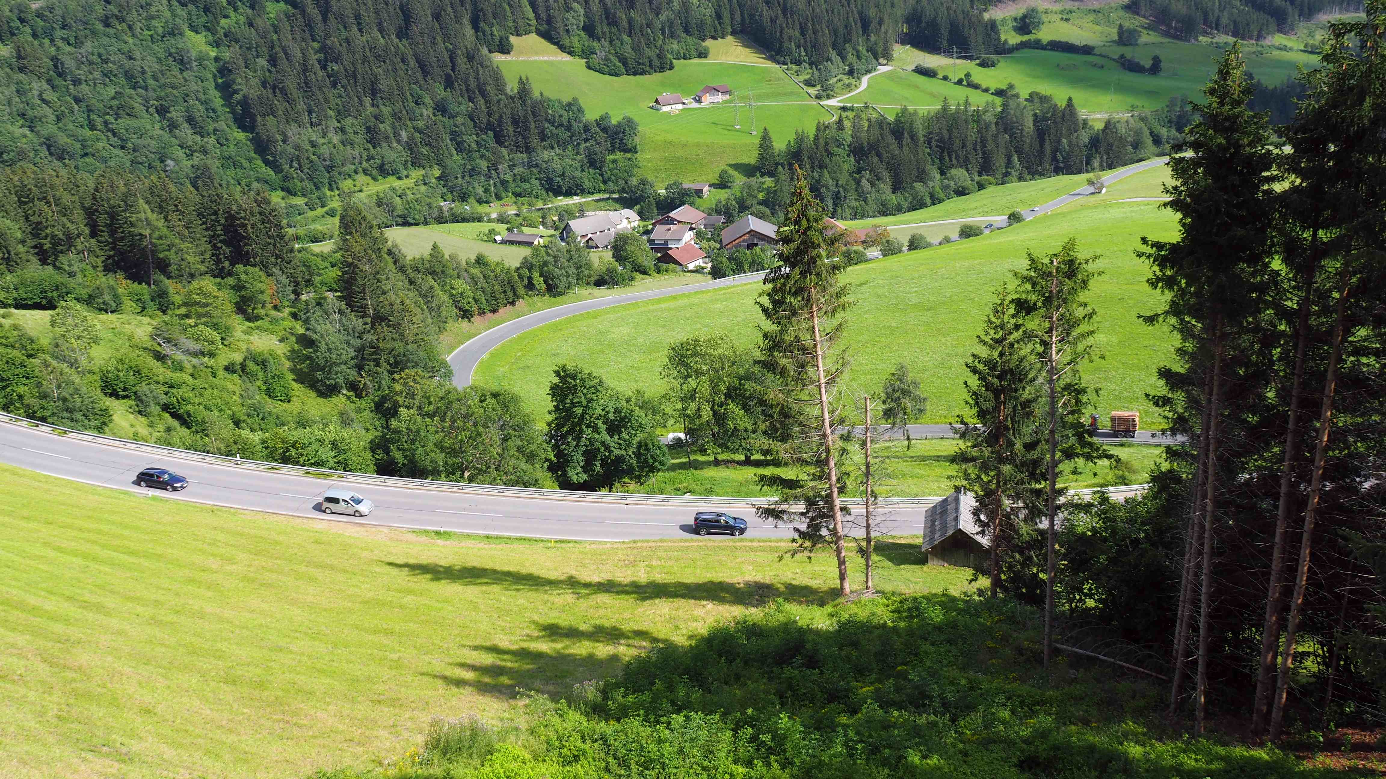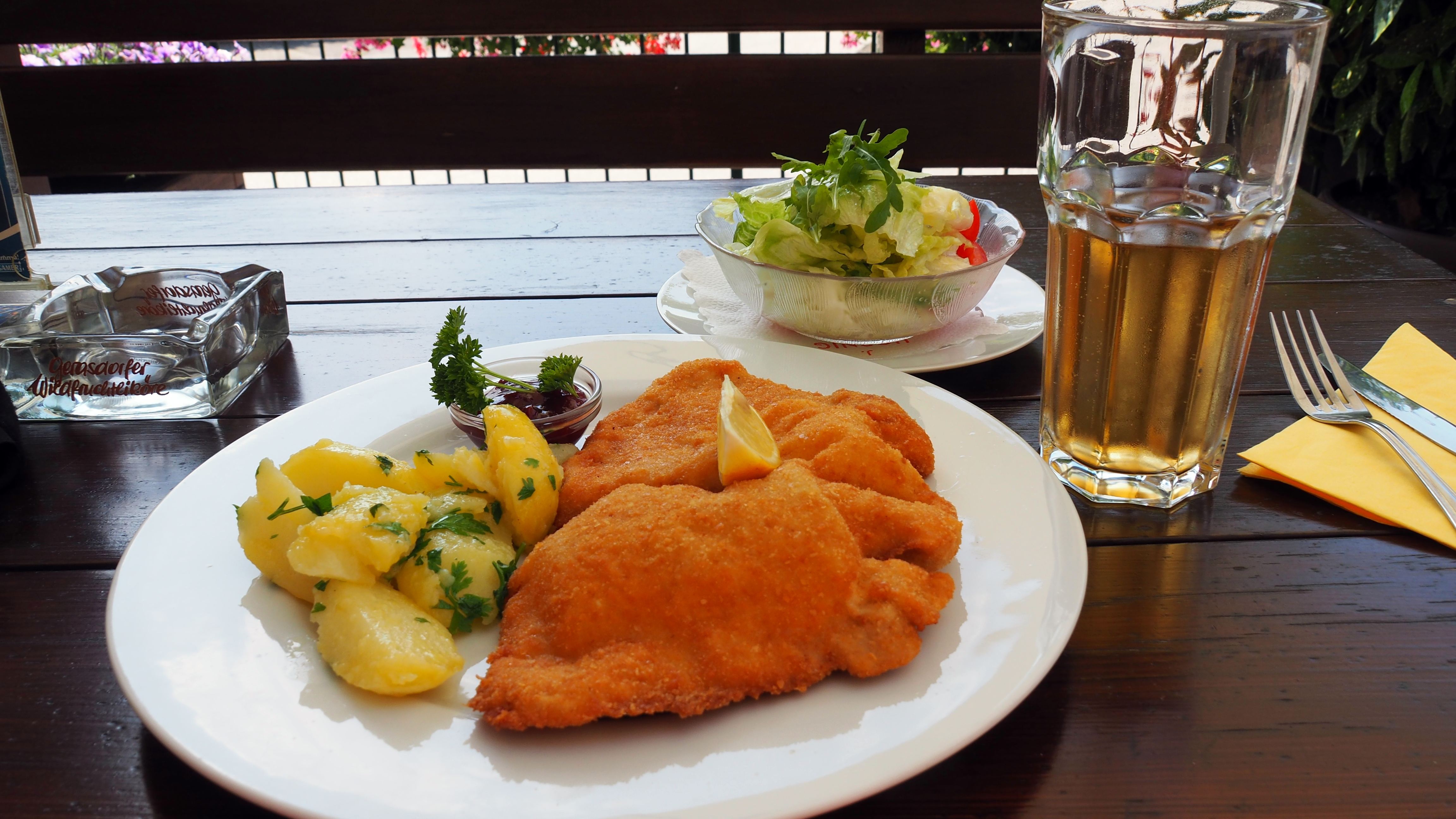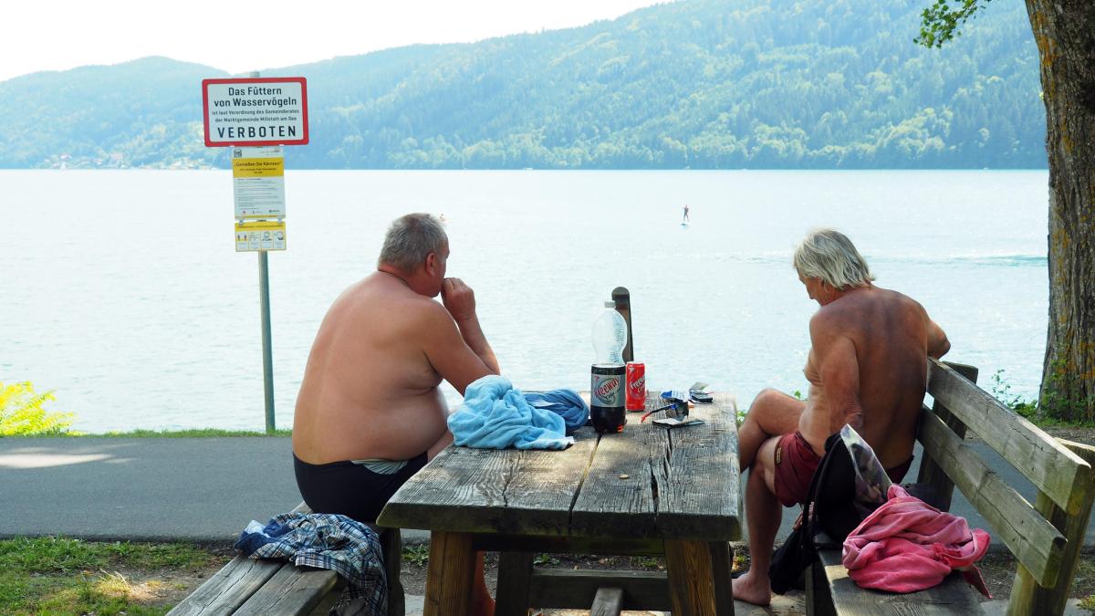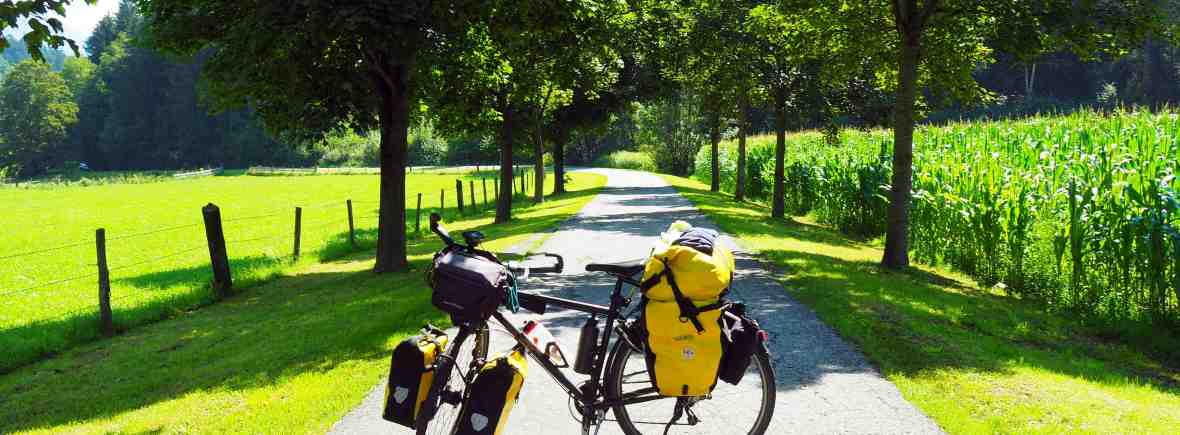 Tag 6 (Etappe 4). Morgens ausgiebiges Schwimmen im Ossiacher See, kurz nach Sonnenaufgang. Die Hitze nahm zu, es war aber nicht so schlimm wie laut Nachrichten gerade in Frankreich und Deutschland. Wie auch immer, die 30 ° C hier fühlten sich für mich wie 35°C an. Die Hitze machte mich schneller müde als ich es mir lieb war. Nach einem doppelten Espresso in Klagenfurt fühlte ich mich auf den letzten 25 km wieder etwas fitter. Mein auf einer Bank liegen gelassenes Handy lag, oh Wunder, immer noch da … 15 Minuten Schreck waren vorbei. (Richtig verloren habe ich es dann erstmalig nach meiner Rückkehr in Brandenburg, zum Glück kein teures Smartphon). Der Weg führte ein gutes Stück schnurgerade an einer Bahnstrecke entlang, bis es später kurz und steil bergan ging. Ich lernte durch eine Informationstafel, dass dieses Gebiet nur dank einer gewonnenen Volksabstimmung 1919 nicht Slowenien zugeschlagen wurde. Dann hielt ich bei einem plötzlich am Wegesrand auftauchenden Bed & Breakfast an und bekam ein freies Zimmer, änderte also spontan meinen Plan, diese Nacht irgendwo zu campen. Denn 35 €, die es kosten würde, waren heute für mich okay. Mit Frühstück! Ein altes Ehepaar, weit über 80 vermietete einen Teil des Hauses. Später grummelte die alte Dame, dass 35 € viel zu wenig wären… naja, da hat sie leider Pech gehabt, ich hätte ja auch weiterfahren können.