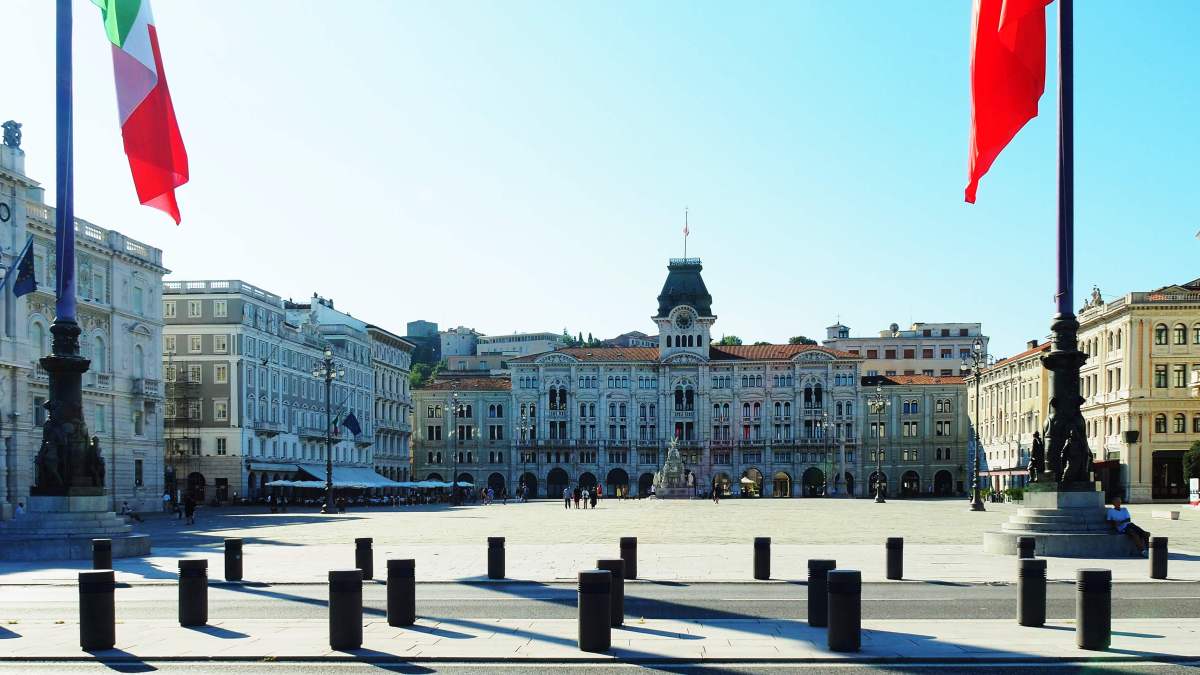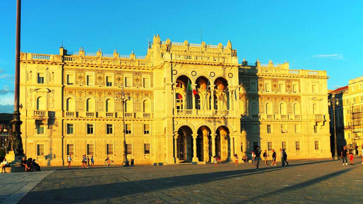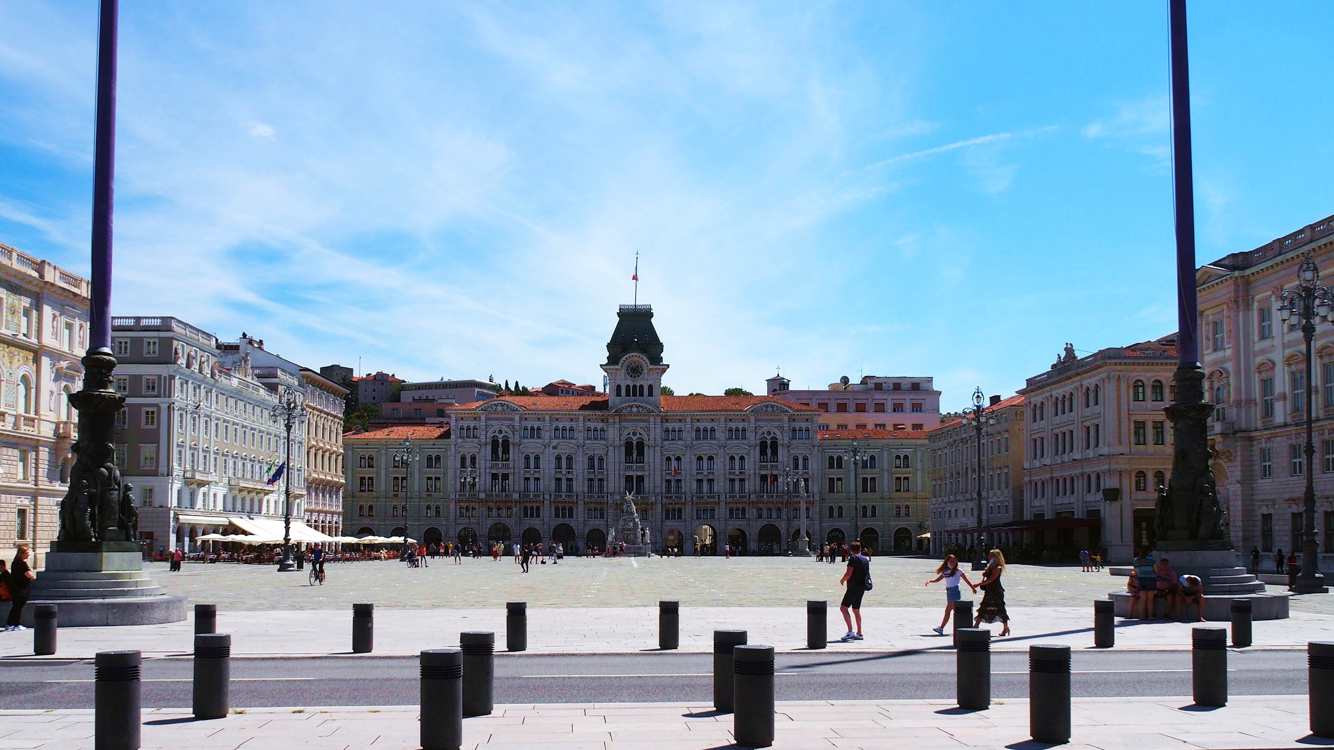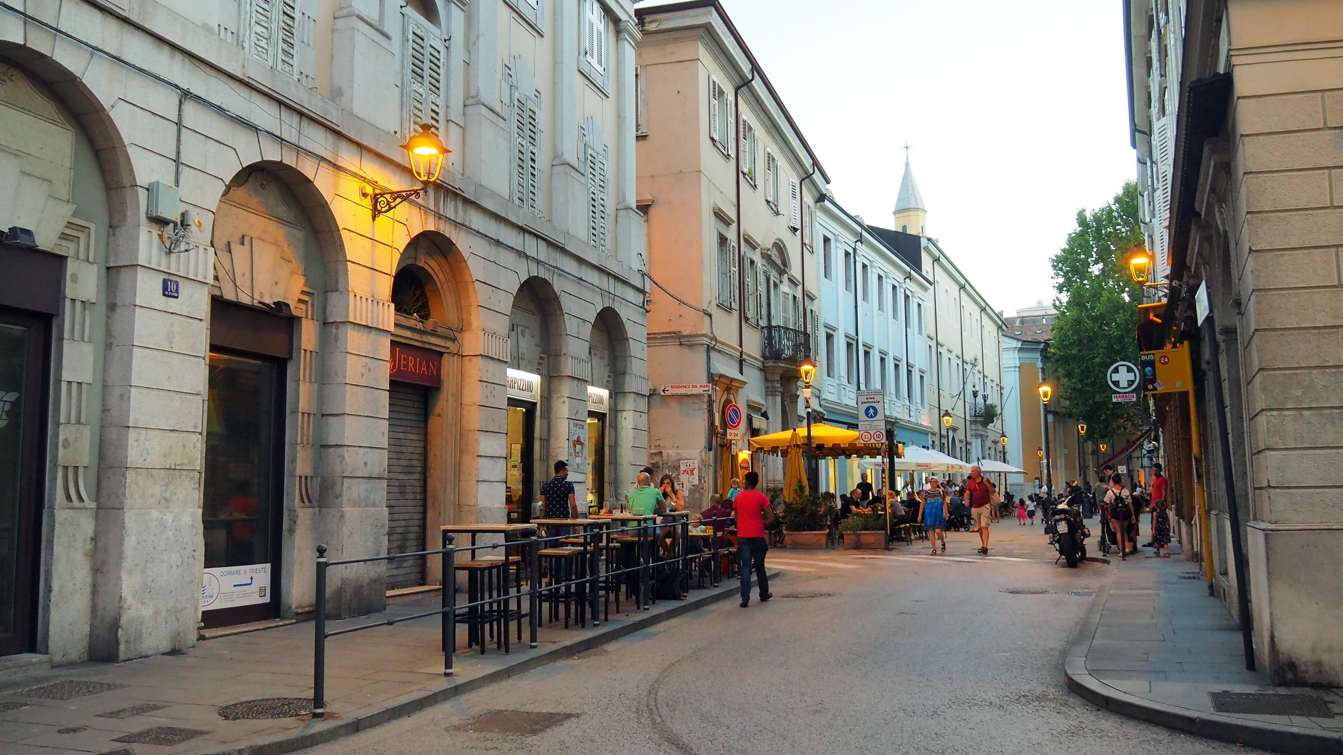 Das gesamte Gebiet gehörte bis zum Ende des Ersten Weltkrieges zu Österreich-Ungarn, bis dann 1918 das italienische Kriegsschiff „Audace“ kam und Triest eroberte. Auch Slowenien als Nation innerhalb Jugoslawiens entstand zu dieser Zeit. Es ist erst seit 1991 unabhängig und konnte sich nach nur 12 Tagen aus dem Jugoslawien-Krieg heraushalten. Je näher ich der Grenze kam, desto stärker ging es bergab, von 670 m auf 0 m. Eine lange, schnelle Abfahrt und plötzlich befand ich mich am Pier von Triest. Ich schob das Rad durch eine enge Gasse zu meinem 35 € Hotel in der „Via Felice Venetian“, der „Straße des glücklichen Venezianers“, stellte meine Sachen in einem muffigen Zimmer ab und machte einen Stadtspaziergang. Hier ist das Ergebnis des Tages. (Italienisch gehört übrigens zu jenen Sprachen von denen, die ich nie gelernt habe, die ich immer noch am besten verstehe. Und manchmal schaffe ich es, etwas auf Italienisch zu bestellen, ohne eine Antwort auf Englisch zu bekommen…)