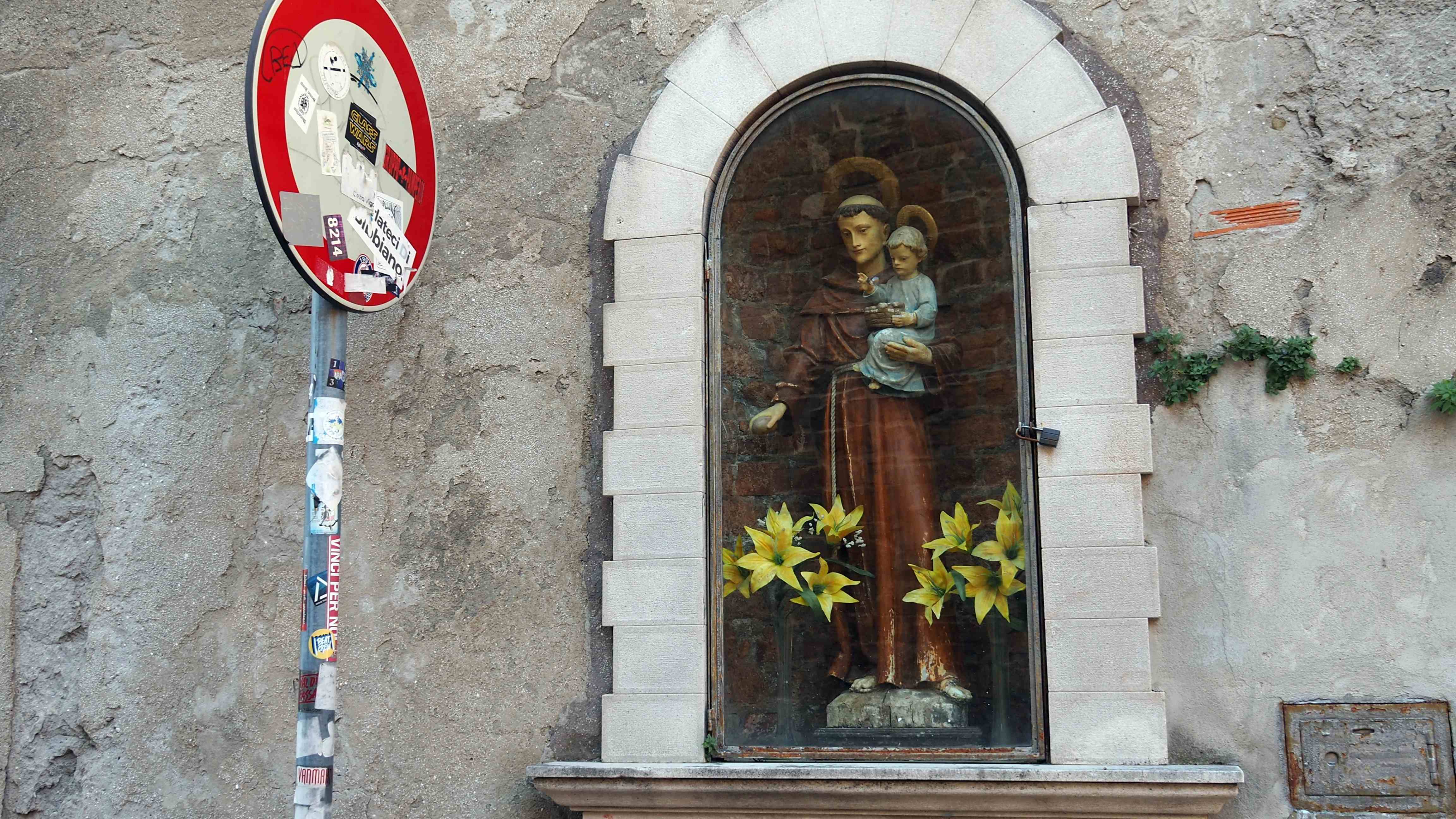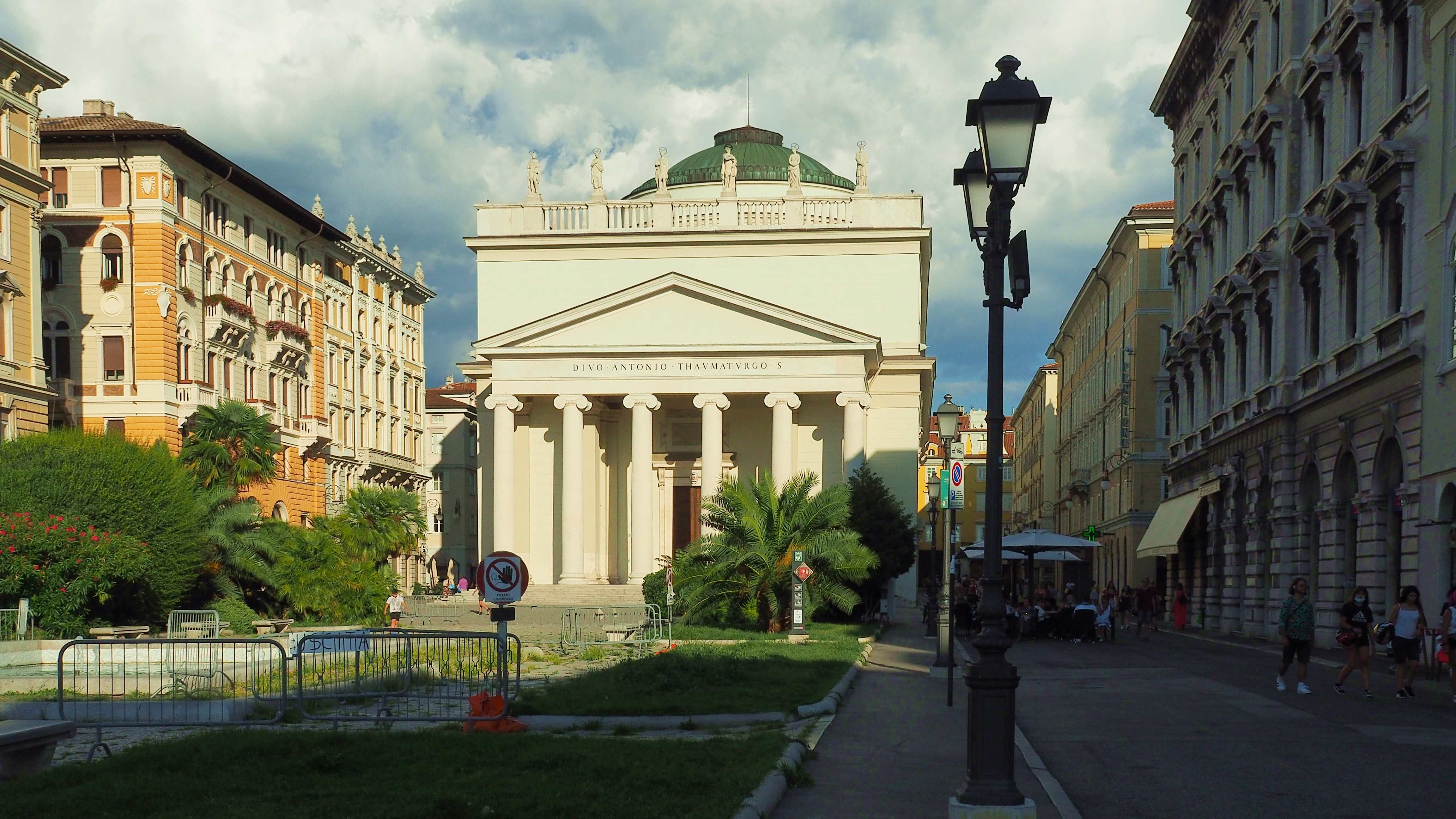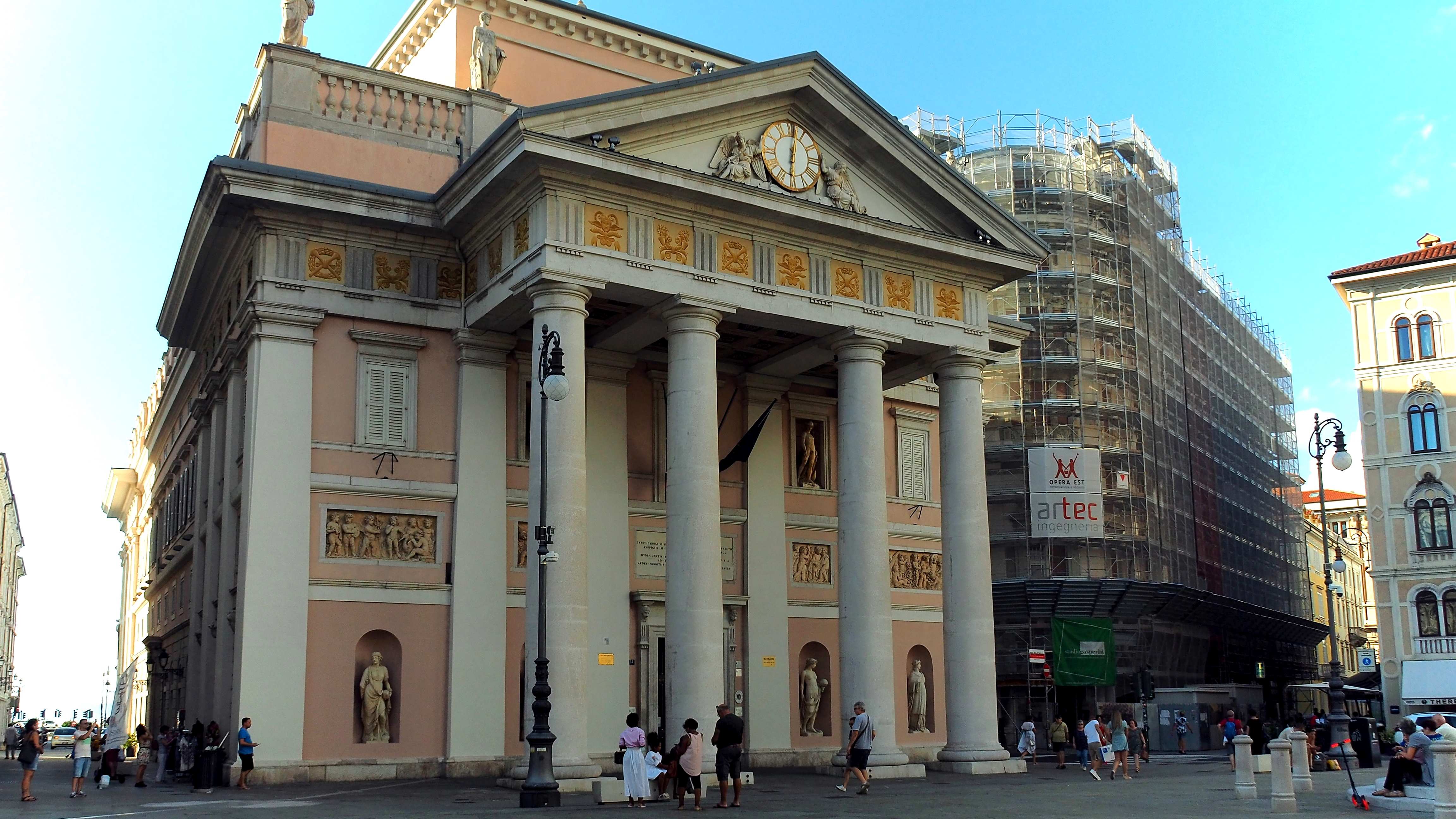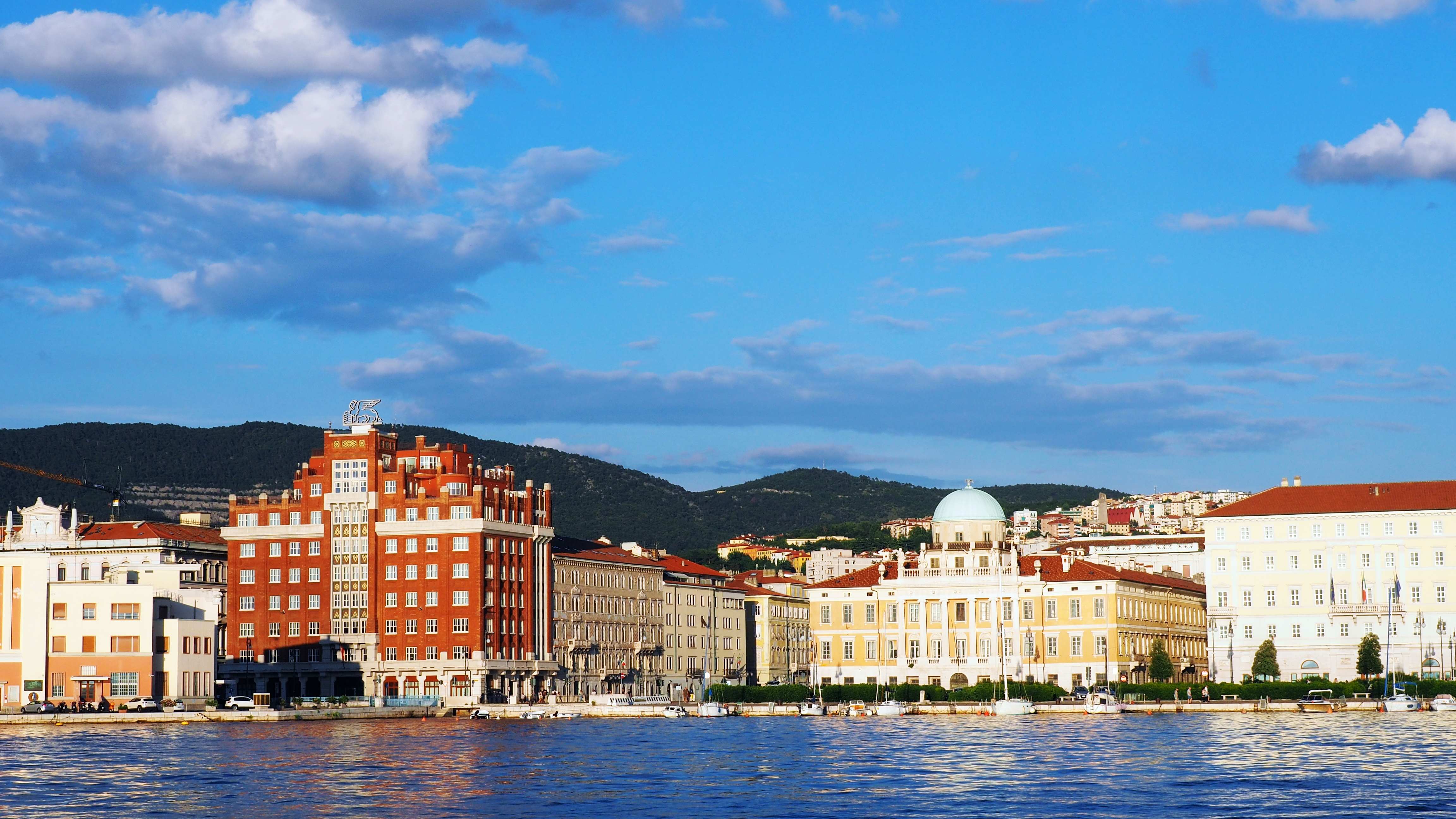 Das gesamte Gebiet gehörte bis zum Ende des Ersten Weltkrieges zu Österreich-Ungarn, bis dann 1918 das italienische Kriegsschiff „Audace“ kam und Triest eroberte. Auch Slowenien als Nation innerhalb Jugoslawiens entstand zu dieser Zeit. Es ist erst seit 1991 unabhängig und konnte sich nach nur 12 Tagen aus dem Jugoslawien-Krieg heraushalten. Je näher ich der Grenze kam, desto stärker ging es bergab, von 670 m auf 0 m. Eine lange, schnelle Abfahrt und plötzlich befand ich mich am Pier von Triest. Ich schob das Rad durch eine enge Gasse zu meinem 35 € Hotel in der „Via Felice Venetian“, der „Straße des glücklichen Venezianers“, stellte meine Sachen in einem muffigen Zimmer ab und machte einen Stadtspaziergang. Hier ist das Ergebnis des Tages. (Italienisch gehört übrigens zu jenen Sprachen von denen, die ich nie gelernt habe, die ich immer noch am besten verstehe. Und manchmal schaffe ich es, etwas auf Italienisch zu bestellen, ohne eine Antwort auf Englisch zu bekommen…)