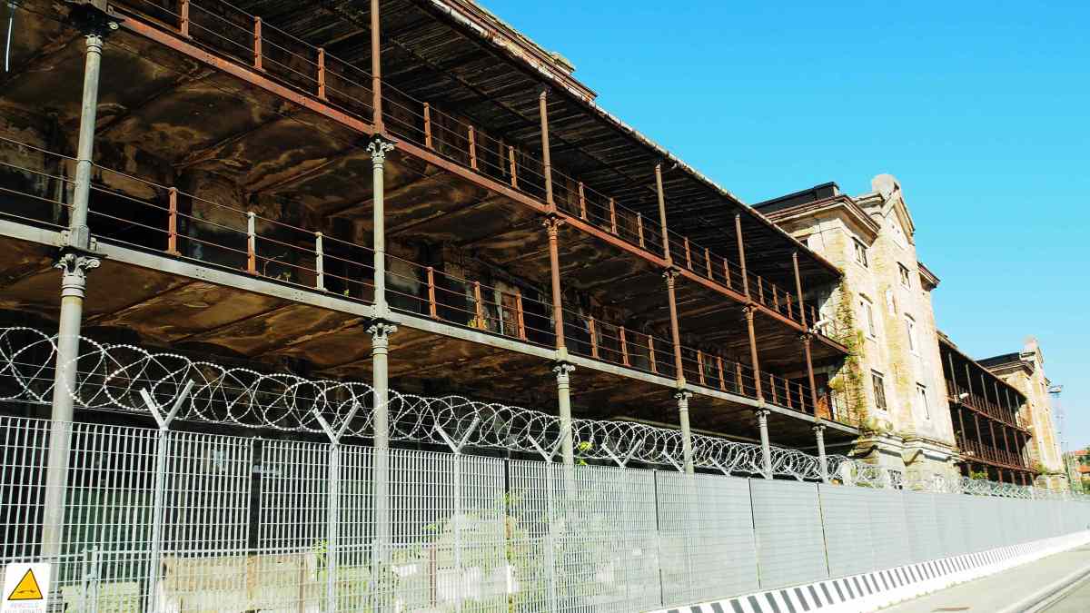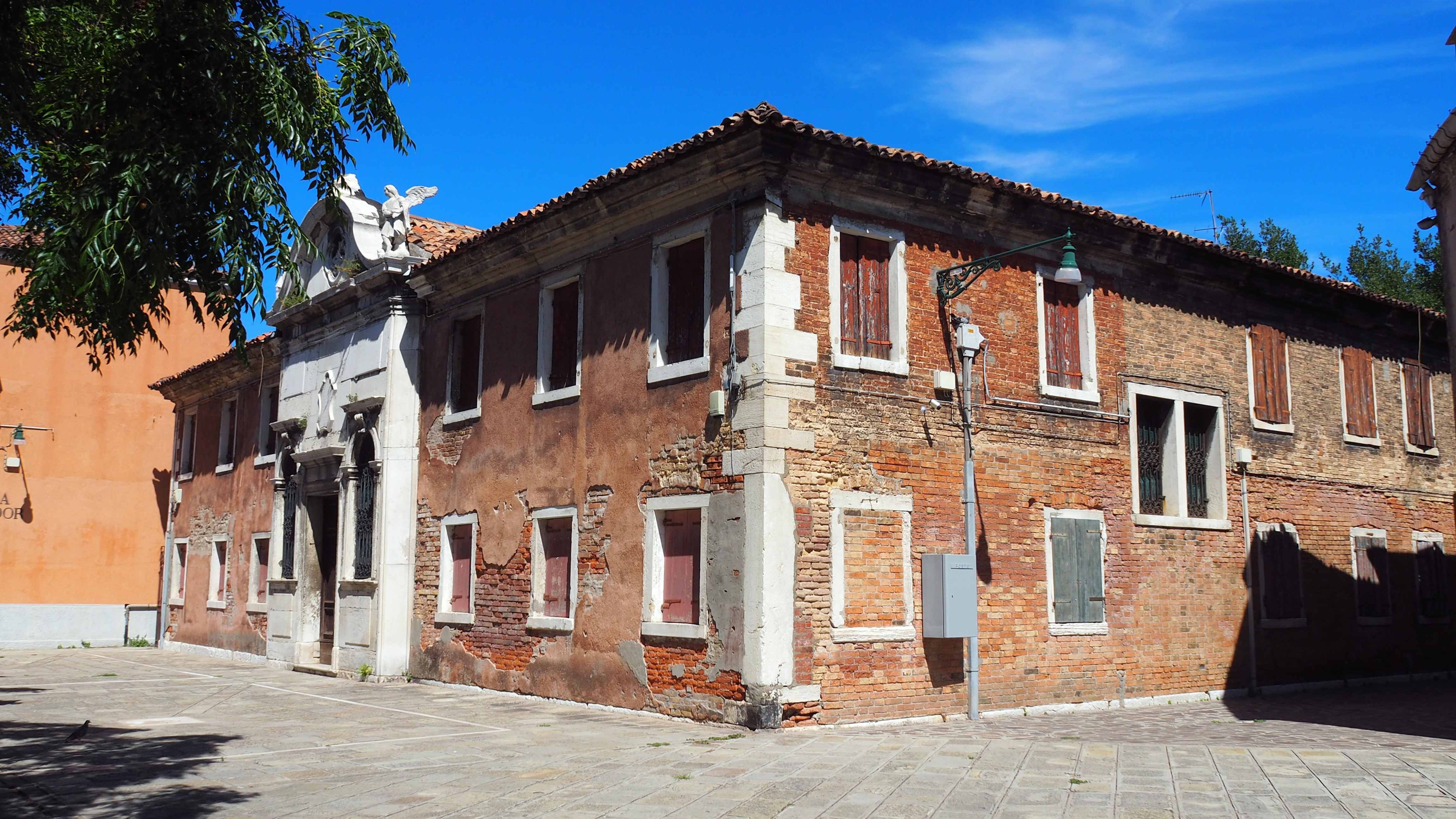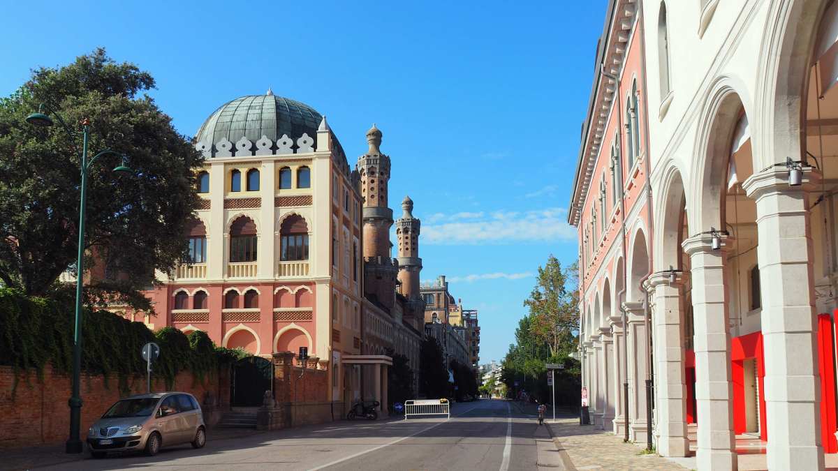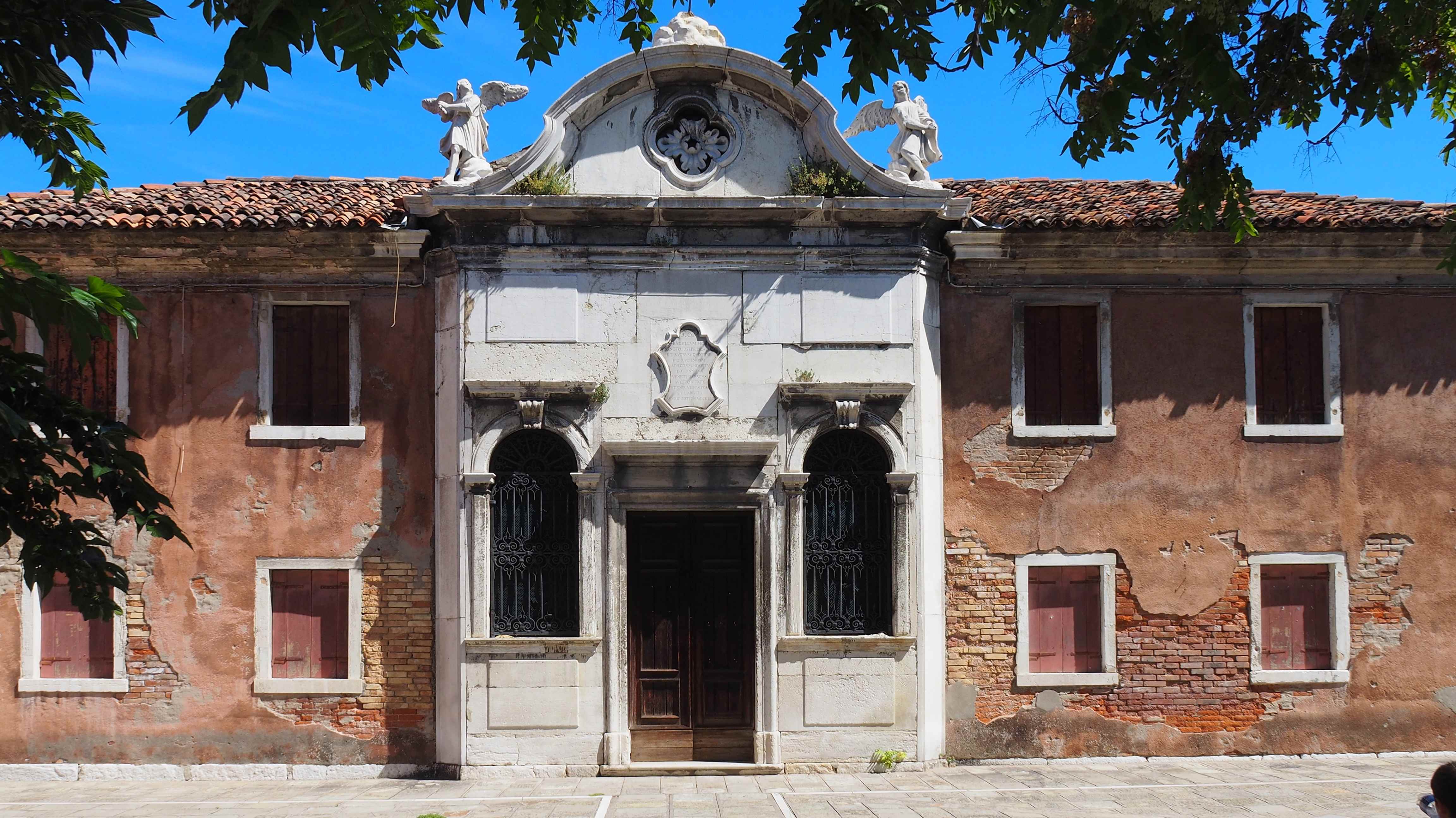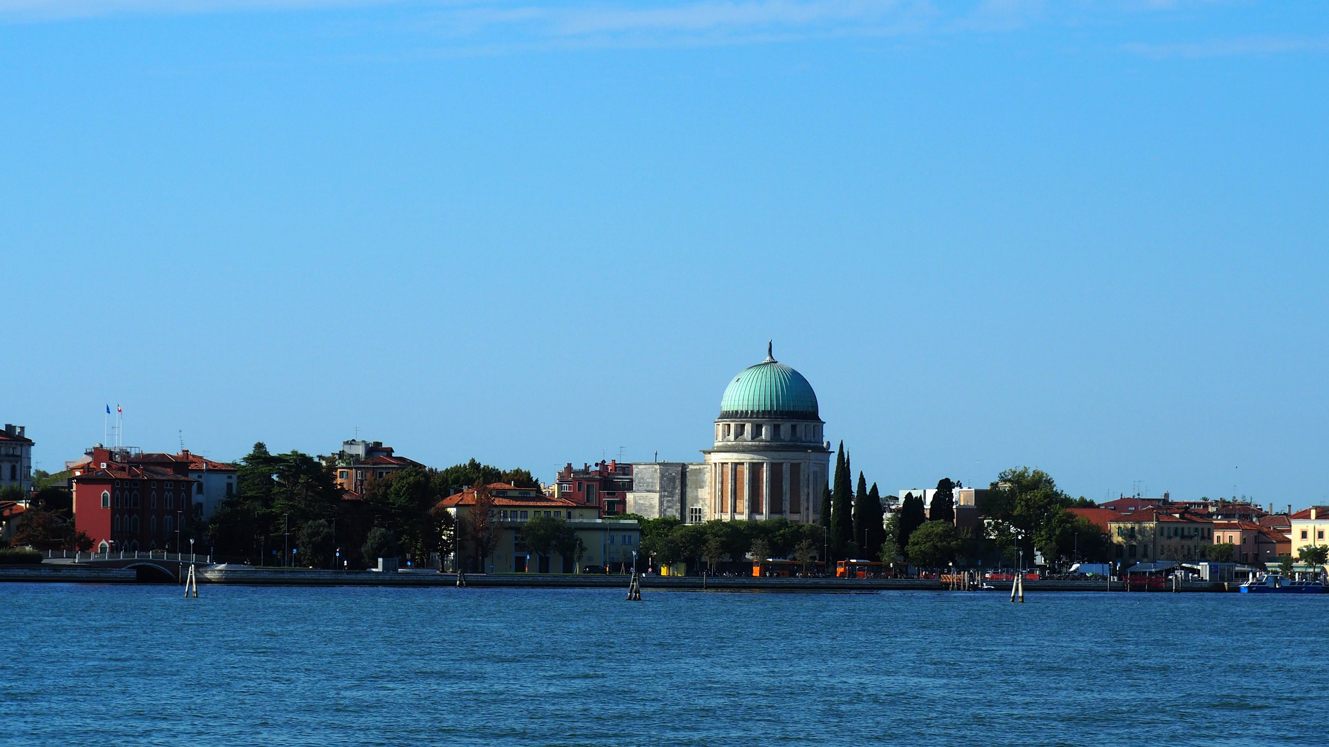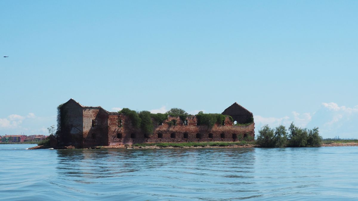 Erster Halt nach kurzer Fahrt auf der Insel Lido. Hier finden immer die berühmten Filmfestspiele der Biennale von Venedig statt, die als Treffpunkt für alle Arten von Prominenten gelten. Ich sah das Festival – Hotel und kam vorher auch am riesigen „Hotel de Bains“ vorbei, das seit Jahren geschlossen ist und keinen Investor findet. Ich konnte einige Fotos machen, was nicht einfach ist, weil der Blick darauf schon etwas zugewachsen ist …