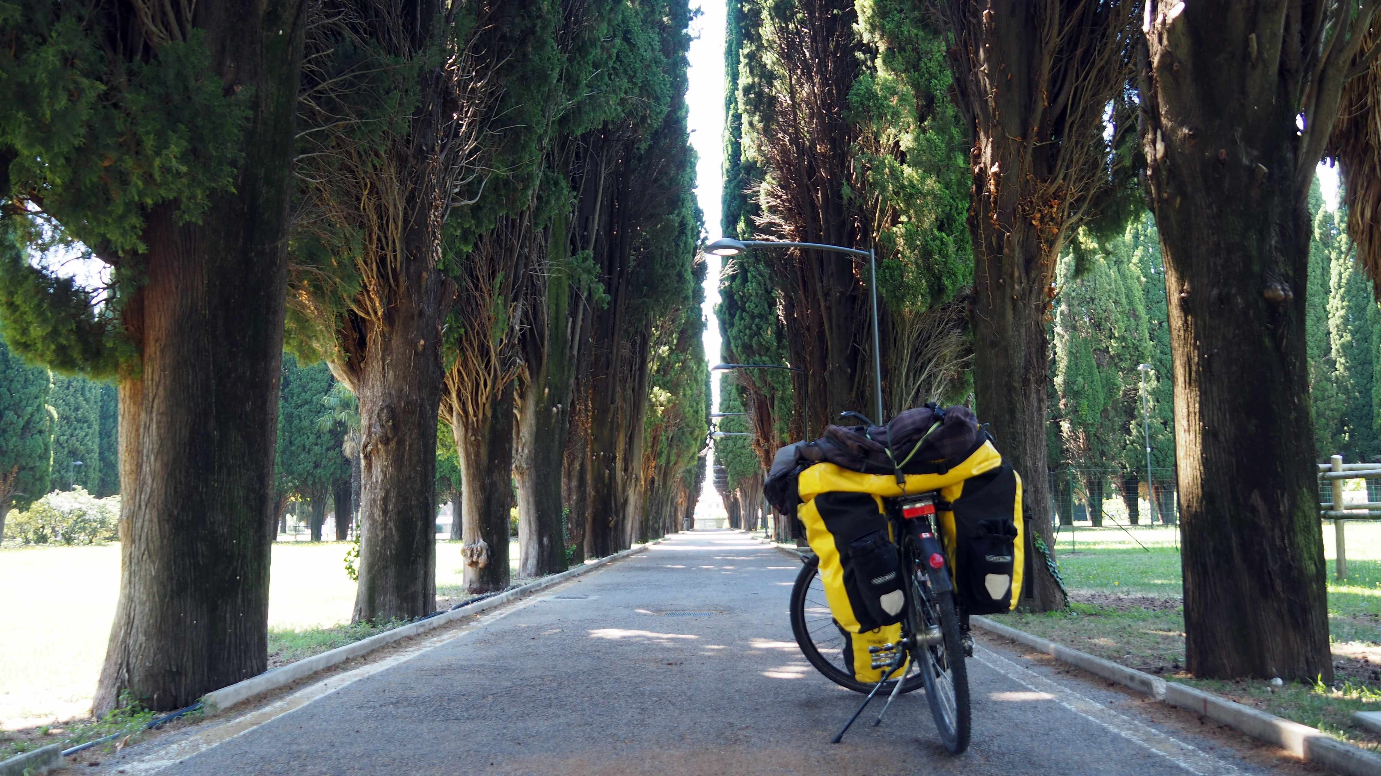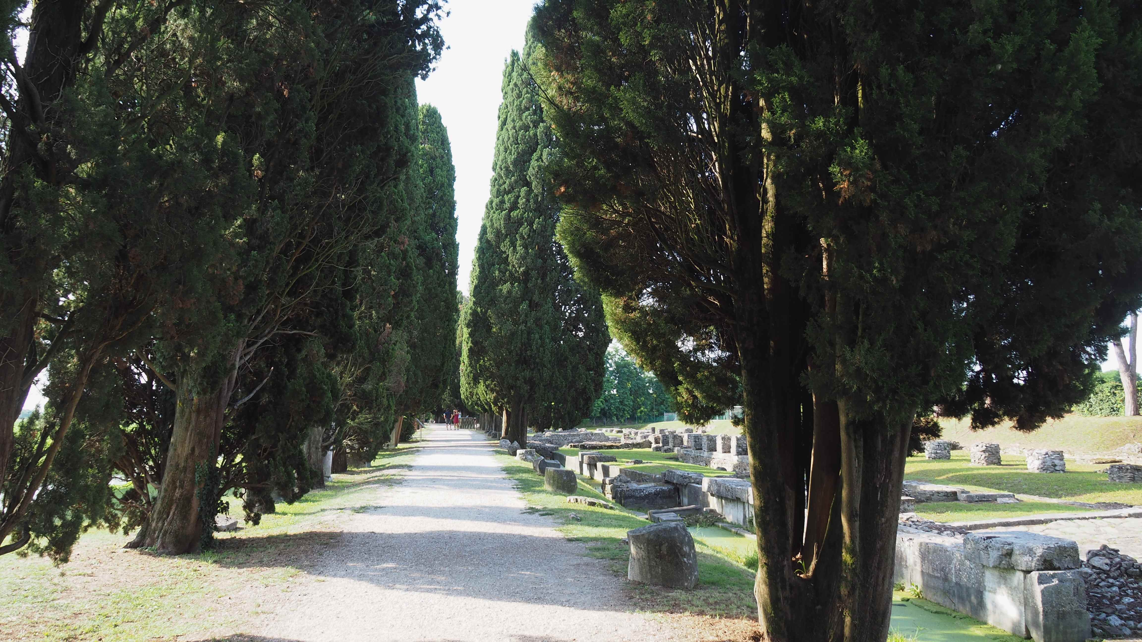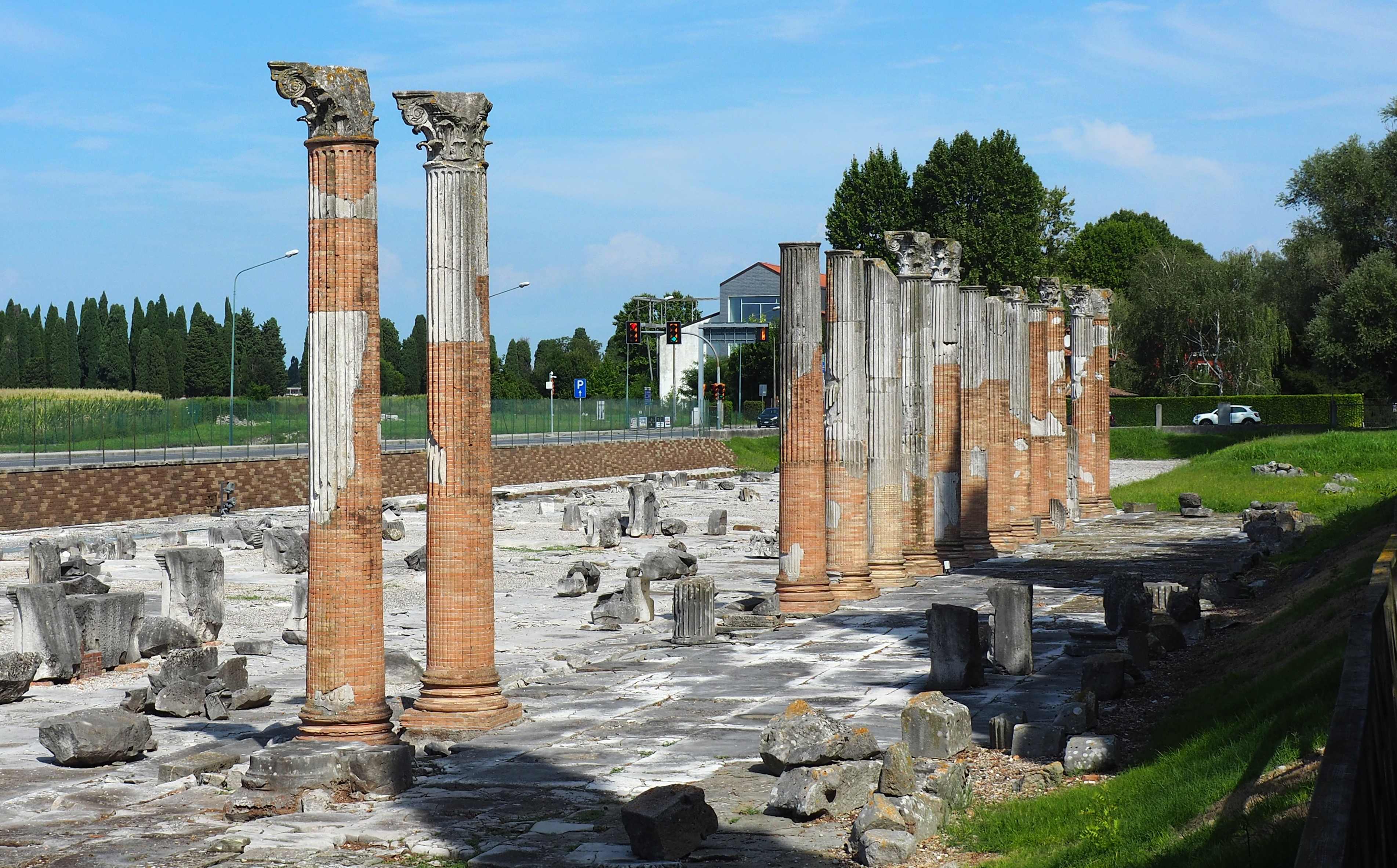 Tag 15 (Etappe 12). Heute Morgen besuchte ich als erstes die antiken und frühchristlichen Stätten von Aquileia. Ich war erstaunt zu erfahren, dass der Evangelist Markus hier wirkte. Es gibt umfangreiche Ausgrabungen und eine wunderschöne Basilika mit beeindruckenden Mosaiken aus dem 4. Jahrhundert, die man ab 10 Uhr besuchen kann (leider nicht früher). Dies verzögerte meine Weiterfahrt dann erheblich, wenn auch aus gutem Grund.