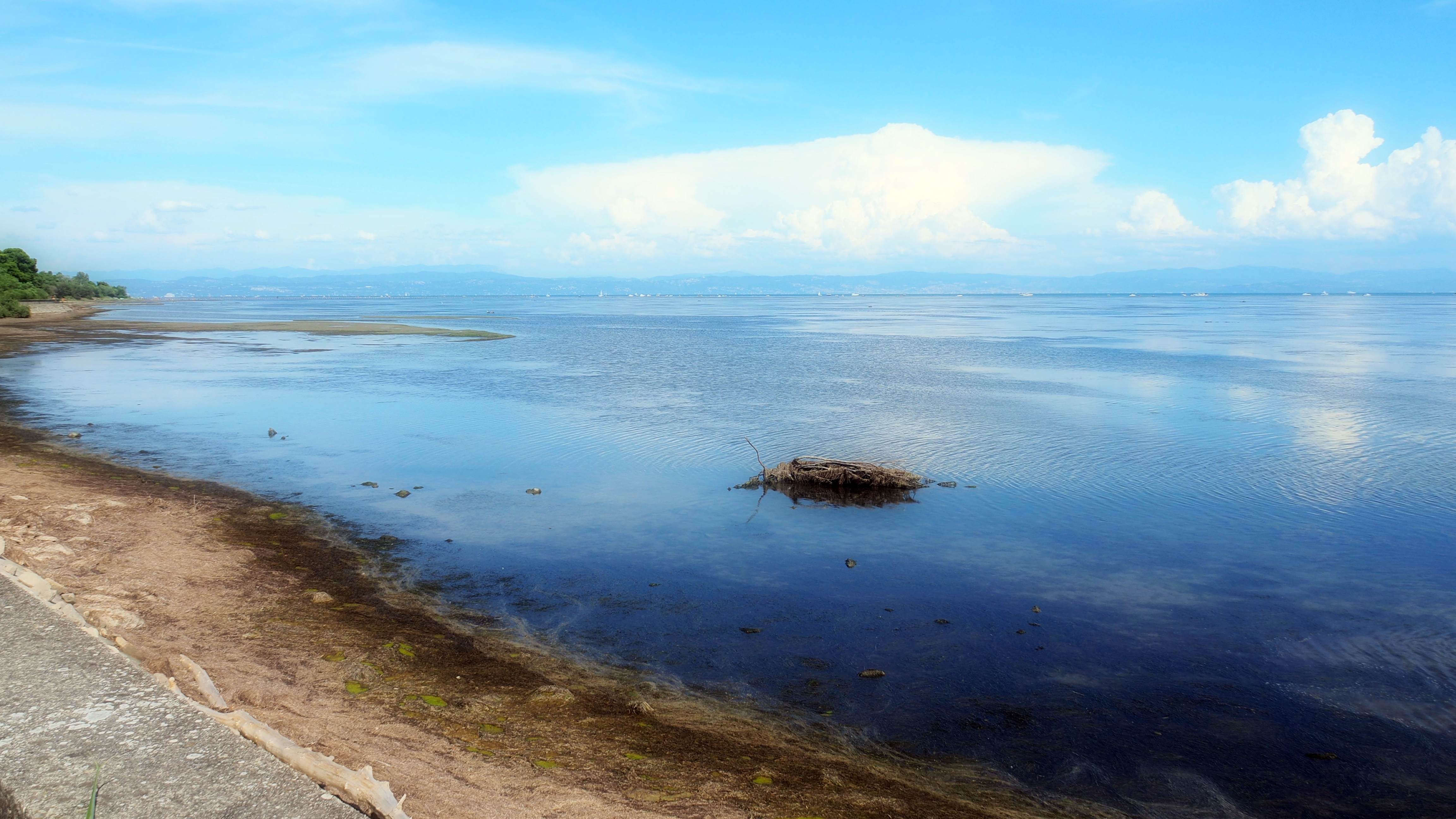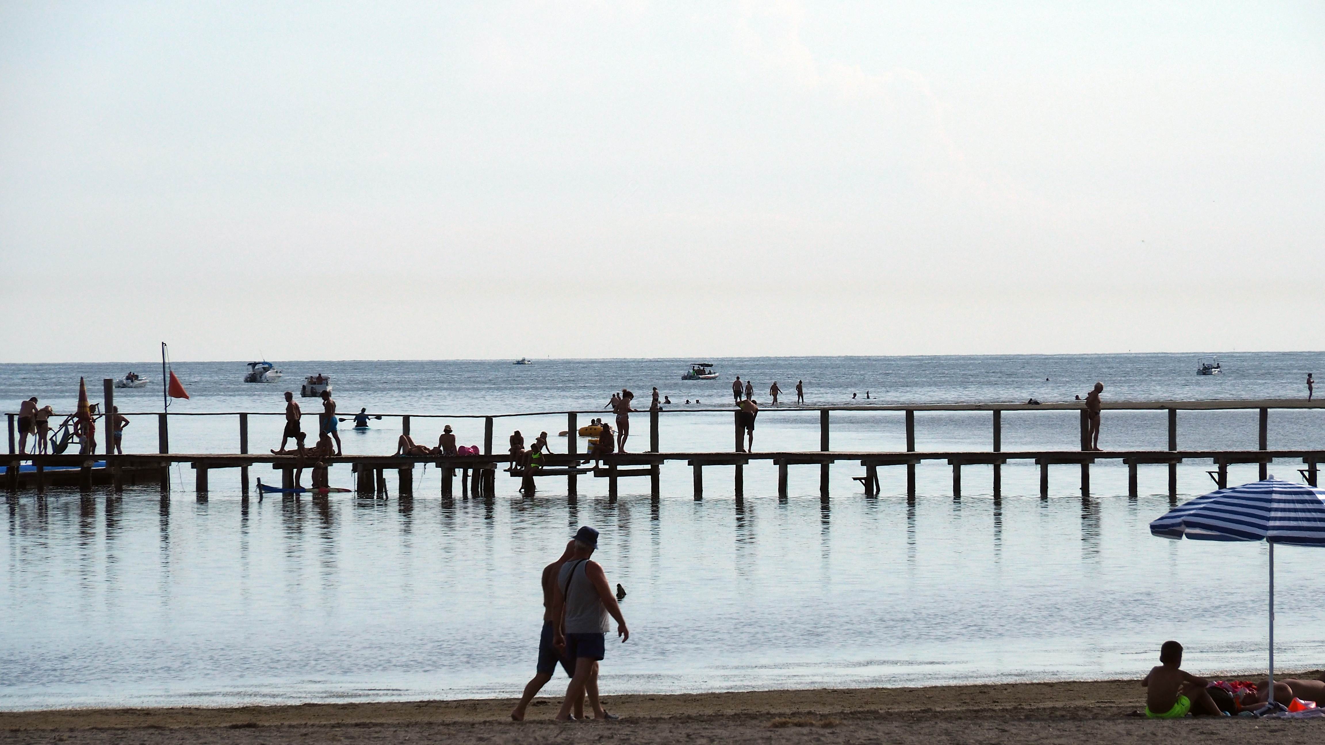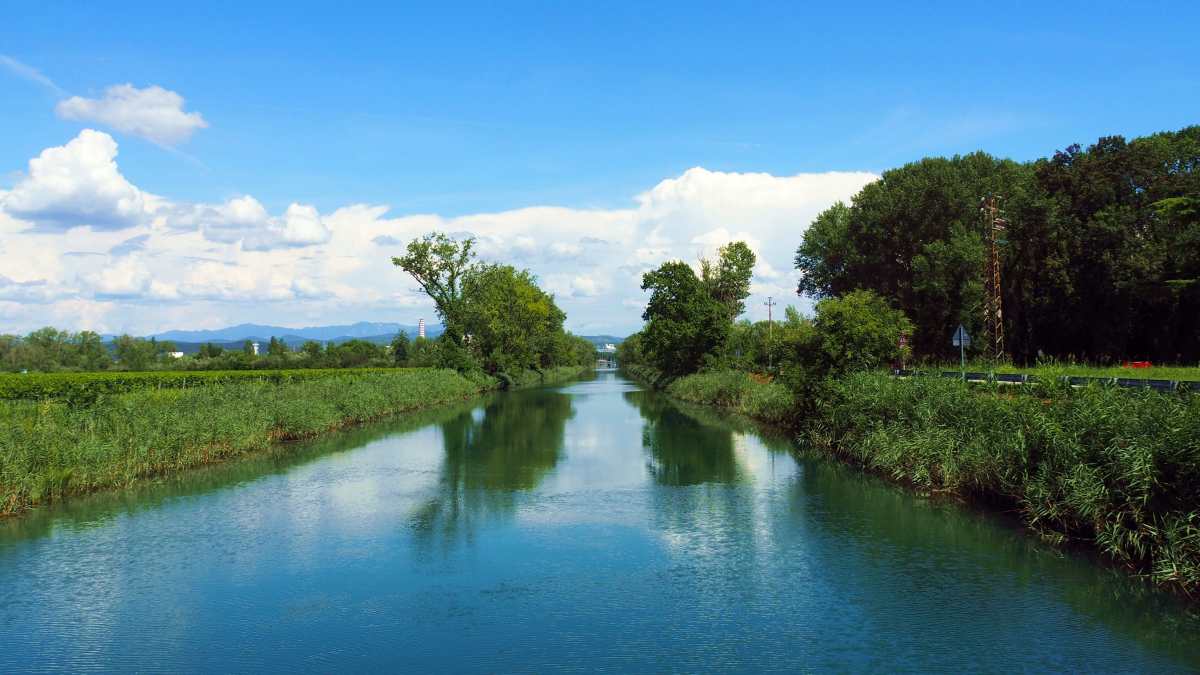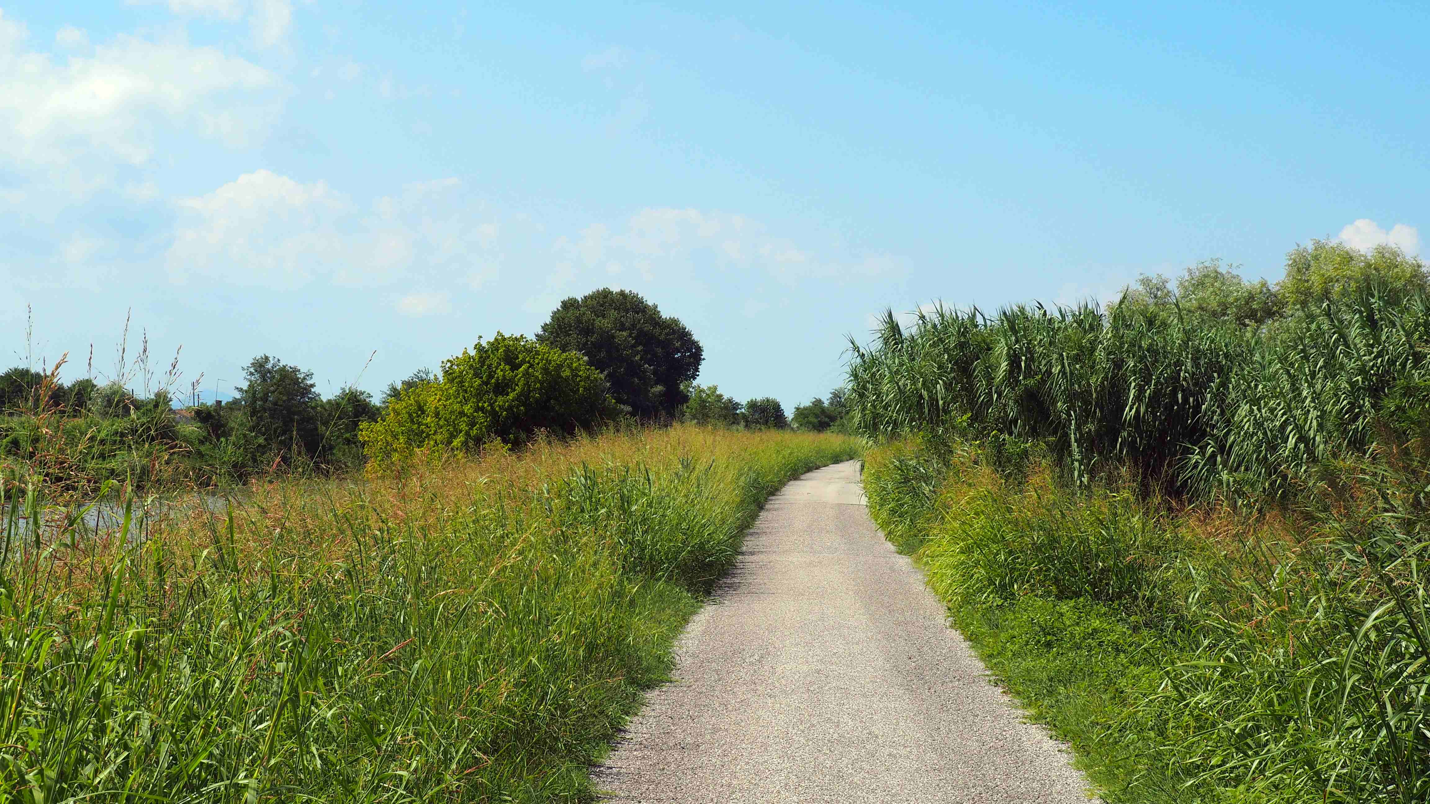 Hinter Montefalcone fuhr ich dann nach einem Mittagessen (mit langer Wartezeit auf einen Teller Nudeln) über einsame Nebenstraßen durch eine Landschaft von Kanälen und Lagunen. Das ist das „Riserva Naturale Regionale della Foce dell’Isonzo Isola della Cona“. Es gibt Fahrradrouten bis nach Grado, einem touristischen Hotspot. Hier konnte ich endlich ins Meer springen oder besser waten. Leider war es kein besonderes Vergnügen an einem überfüllten Strand mit badewannenwarmem Wasser schwimmen zu gehen. Deshalb fuhr ich weiter bis nach Aquileia und werde morgen früh römische Geschichte studieren!