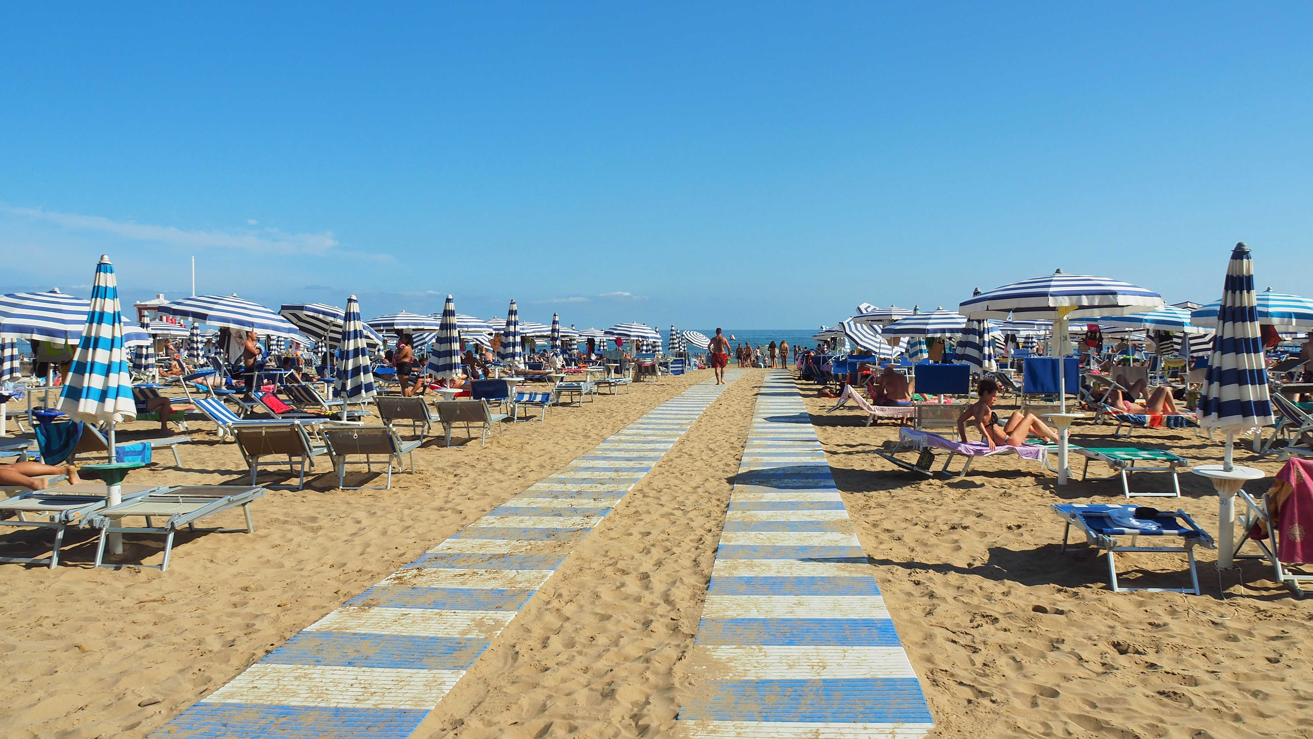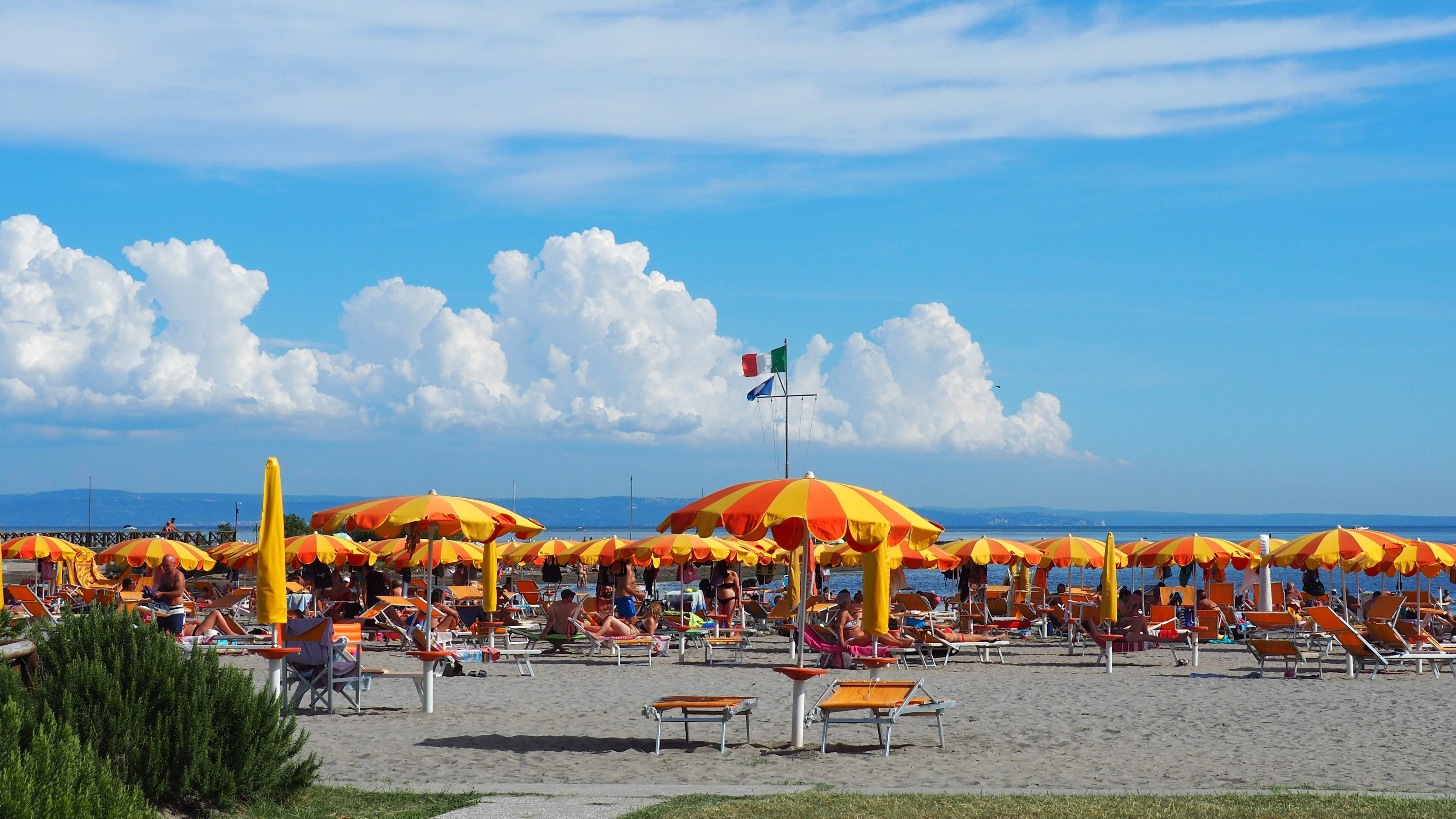 Schließlich gab es wenig später einen gut ausgebauten Radweg, der entlang der Küste durch Lido di Jesolo und auf die Insel Cavallino – Treporti führt. Das ganze Gebiet hier ist eine Urlaubslandschaft für Pauschalreisende oder Italiener, denen nichts Besseres einfällt. Lange Hotelstrände mit Sonnenschirmplantagen….