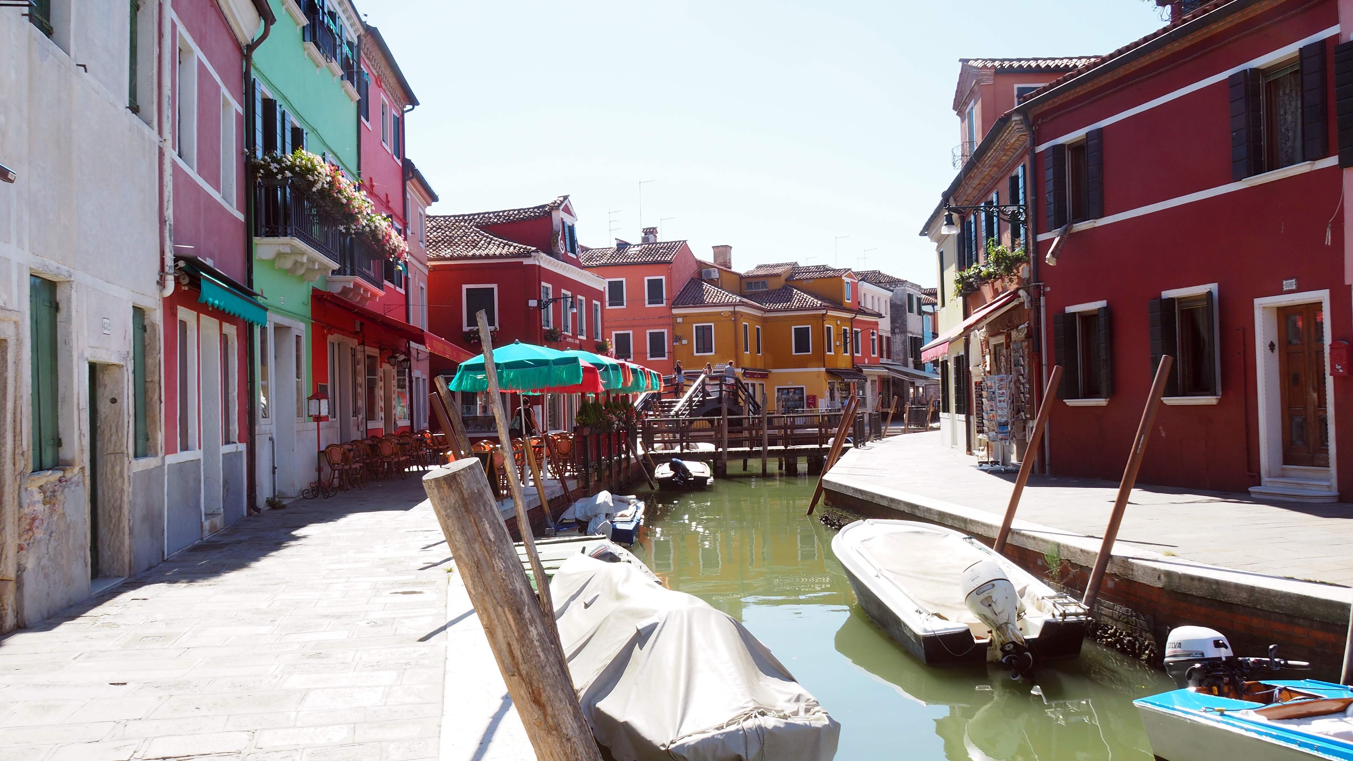 Burano und Murano sind zwei malerische Inseln vor Venedig, die einen Besuch wert sind. Beide haben einen unterschiedlichen Charakter. Burano ist kleiner und die „Insel der bunt bemalten Häuser“ und der Spitzenstickerei, während Murano als Insel der Glasbläser ein bisschen morbider und vom Stil her mehr wie Venedig wirkt … Als ich mir dann beide Inseln angesehen hatte, spürte ich, dass es mir für heute reichte. Ich hatte in der Nacht schlecht geschlafen, weil es plötzlich stark auf mein Zeltdach regnete. Aber am Morgen schien die Sonne wieder. Auf Venedig selbst verzichtete ich angesichts der Hitze und Touristenfülle lieber. Ich war ja schon einmal mit meinem Vater dort, der unbedingt in seinem Leben noch eine Kreuzfahrt machen wollte, die in Venedig begann.