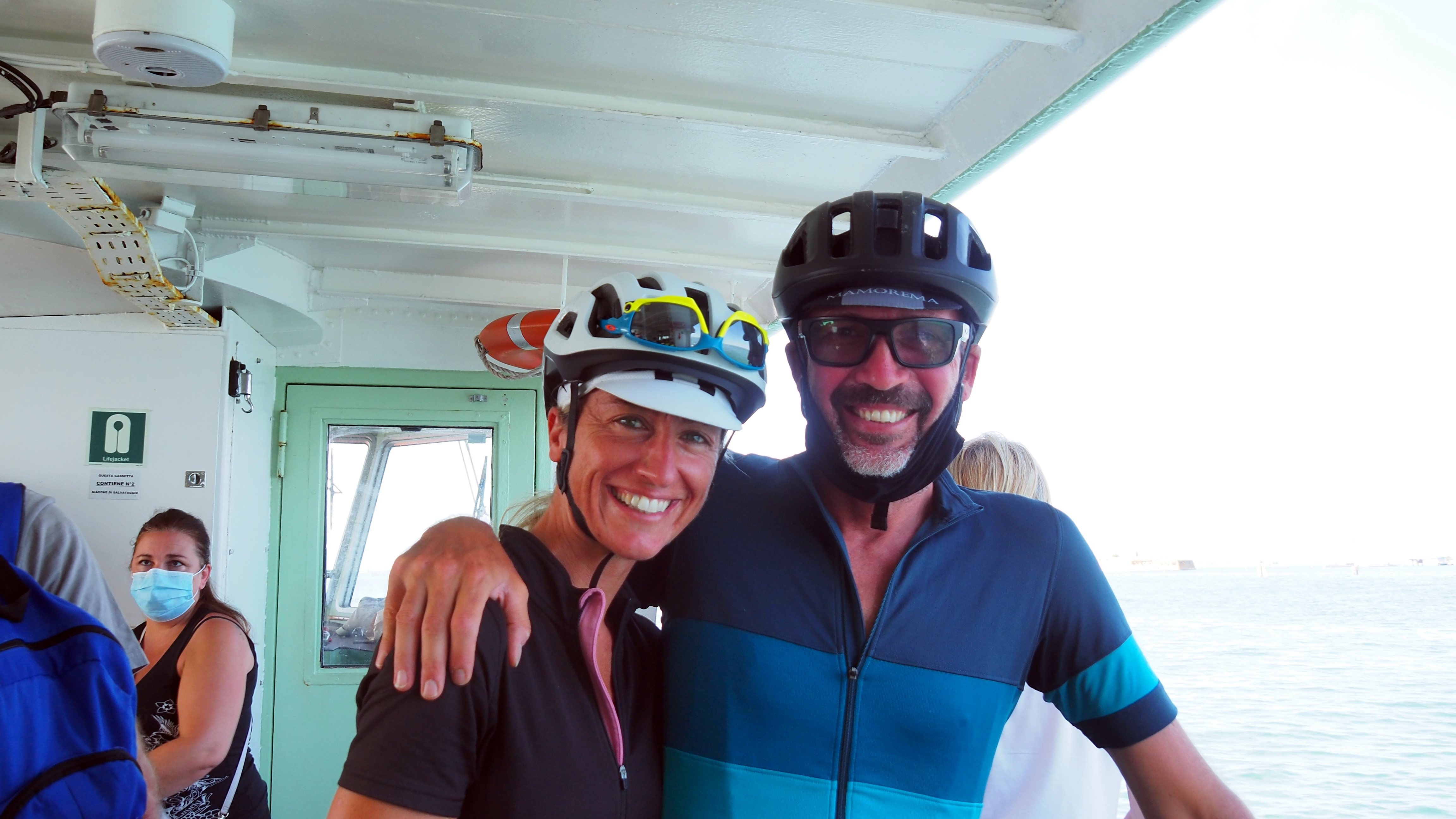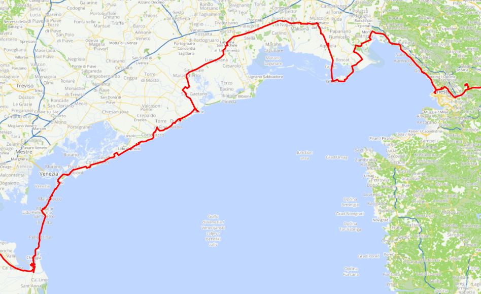 Aber ich schaffte es rechtzeitig und kam auf der nächsten Fähre mit dem Triathleten Michele Spiller ins Gespräch, der mit seiner Frau eine Bikepacking-Tour machte und nach einer Alpentour jetzt auf dem Weg zu seiner Familie nach Padua war.