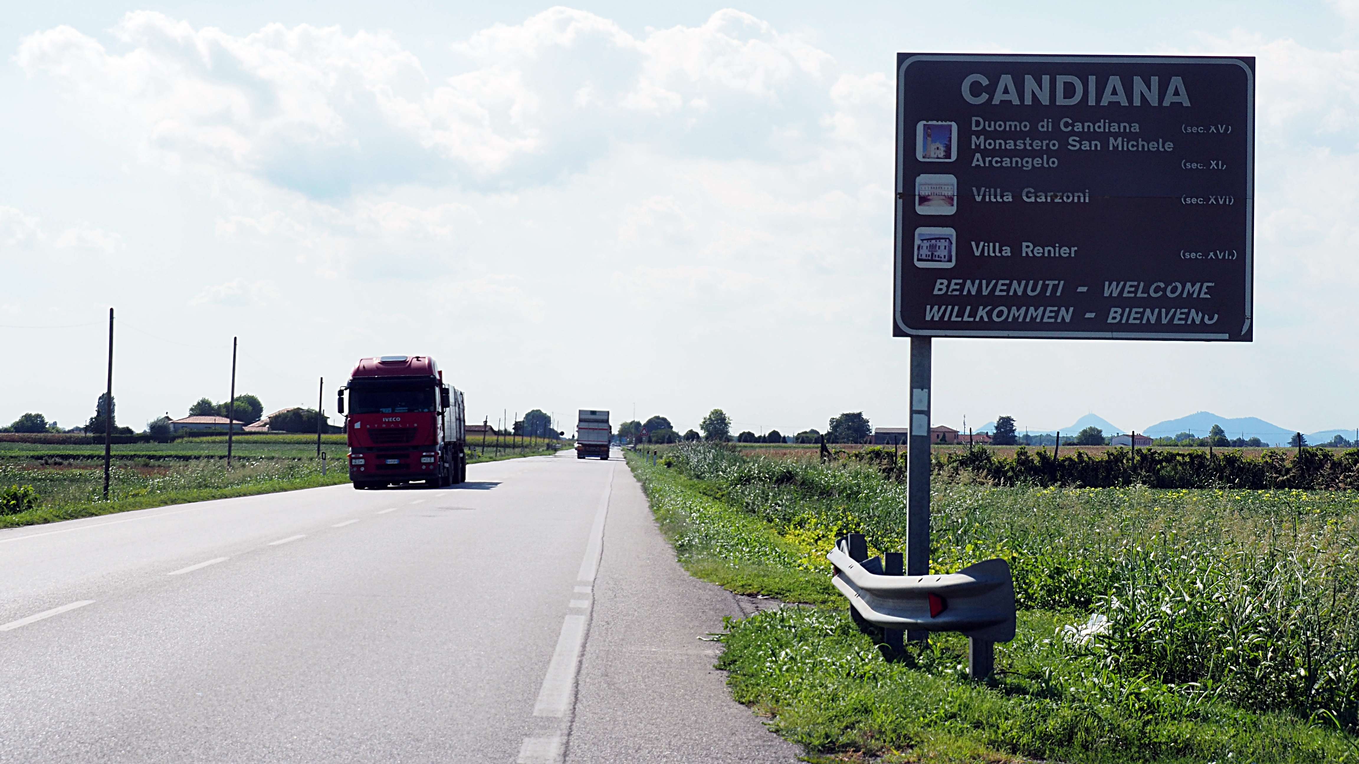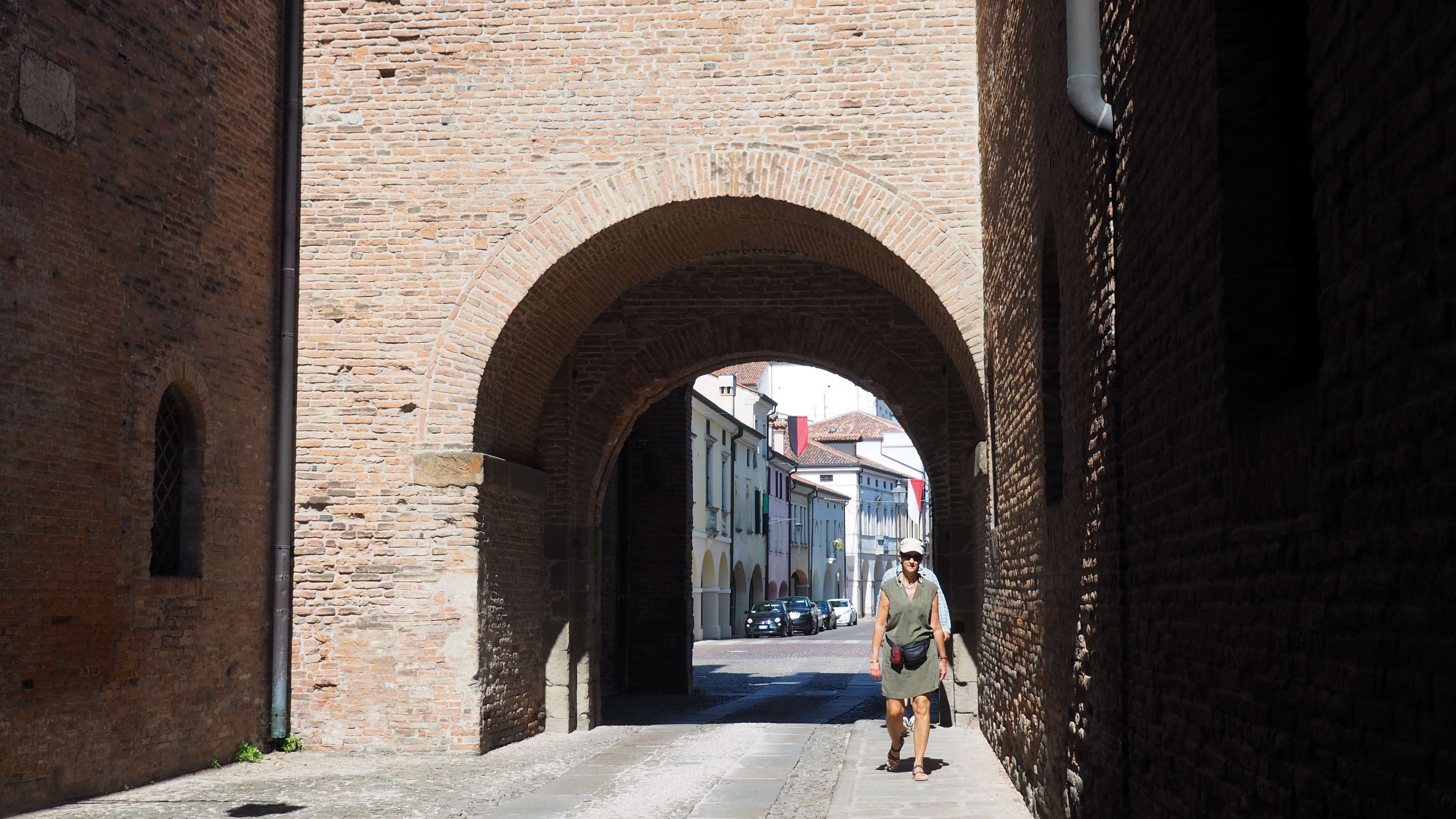 Tag 19 und 20 (Etappen 15 und 16). Gestern, nach 92 km in der Hitze von über 35 ° C, war ich einfach zu müde, um etwas Sinnvolles zu schreiben. Die Etappe war eher flach und es gab nur wenige kleine Highlights in Form von interessanten Kleinstädten, wie das von einer gewaltigen Stadtmauer umgebene bemerkenswerte Montagnana, das leider oder zum Glück im touristischen Schatten größerer Städte liegt.