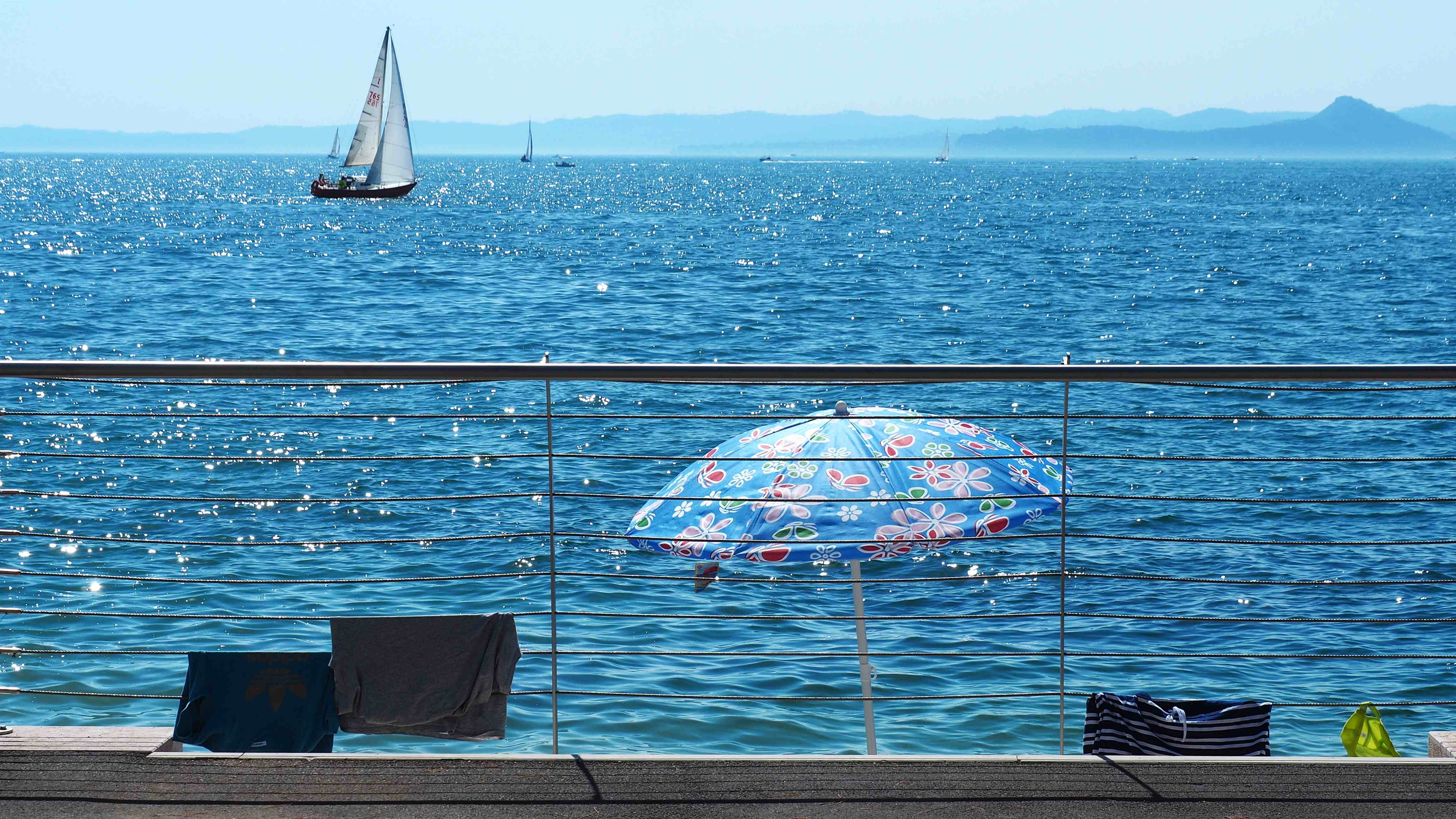 Heute Morgen bin ich dann früh losgefahren, weil es wieder so heiß werden sollte wie gestern. Also bin ich schon mittags am Gardasee angekommen. Sofort sprang ich ins Wasser! Es war wieder karibisch warm und nur mäßig erfrischend, aber das musste jetzt sein!
